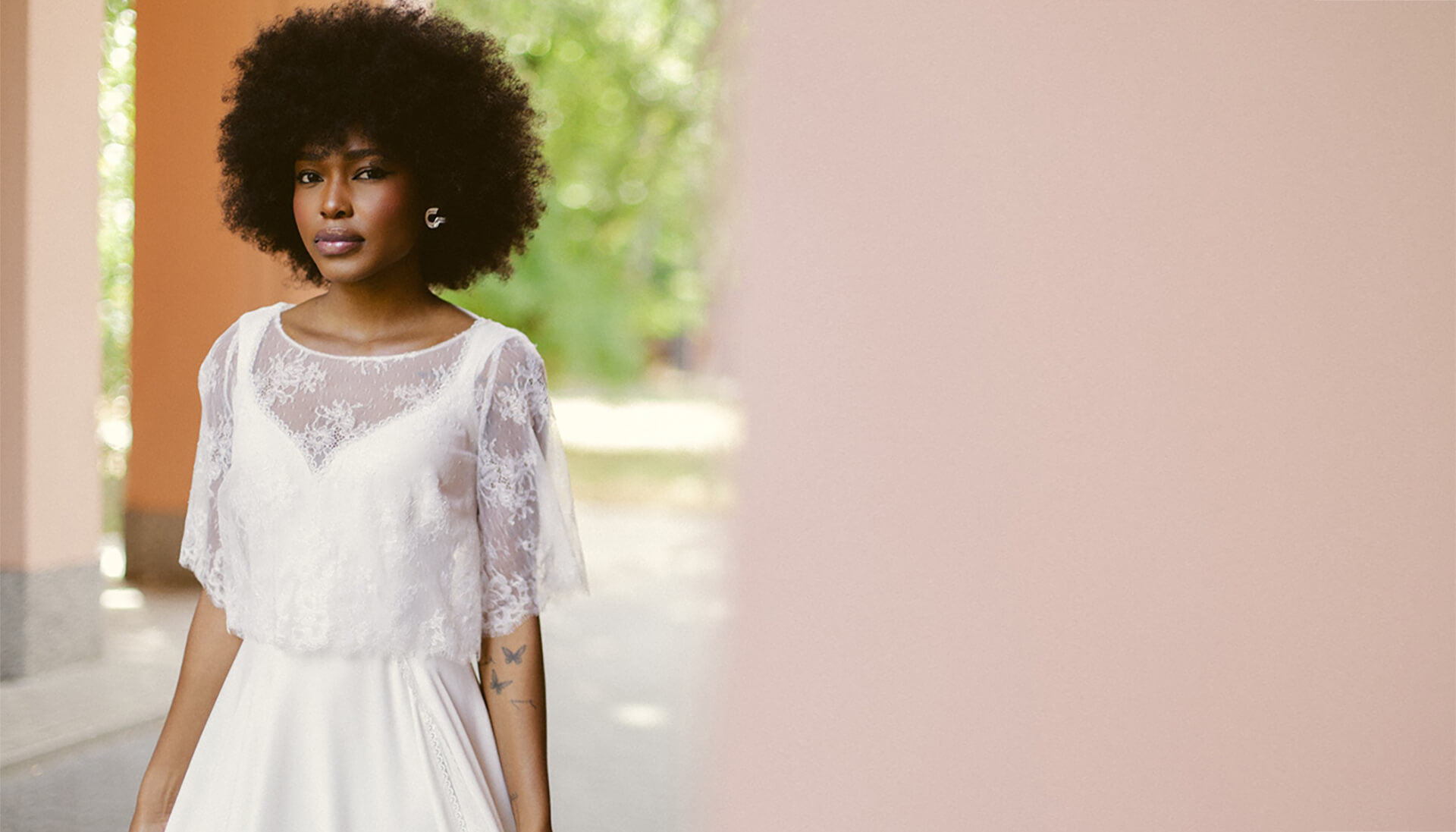 Od jakiegoś czasu (tak, tak, nie od zawsze!) panuje moda na białe suknie ślubne. Jednak odcieni bieli jest wiele, tak jak wiele jest typów urody. Każda z Was powinna znaleźć swój odcień nie sugerując się trendami czy zdaniem osób trzecich. Większości kobiet pasują odcienie écru, rzadziej śnieżna biel, która podkreśla niedoskonałości skóry czy sińce pod oczami. Pamiętajcie, że nie sam odcień koronki się liczy, ale także kolor podszewki – może być biała, écru, cielista czy toffi. Cielista podszewka pięknie podkreśli fakturę koronki i da efekt lekkości całej sukni. Biała podszewka zleje się z koronką i spłyci wizualnie wzór, który się na niej rysuje. Tym samym sprawi, że nasza sylwetka będzie wyglądała bardziej „kolumnowo” a z większej odległości, czy na zdjęciach, stanie się po prostu białą bryłą.