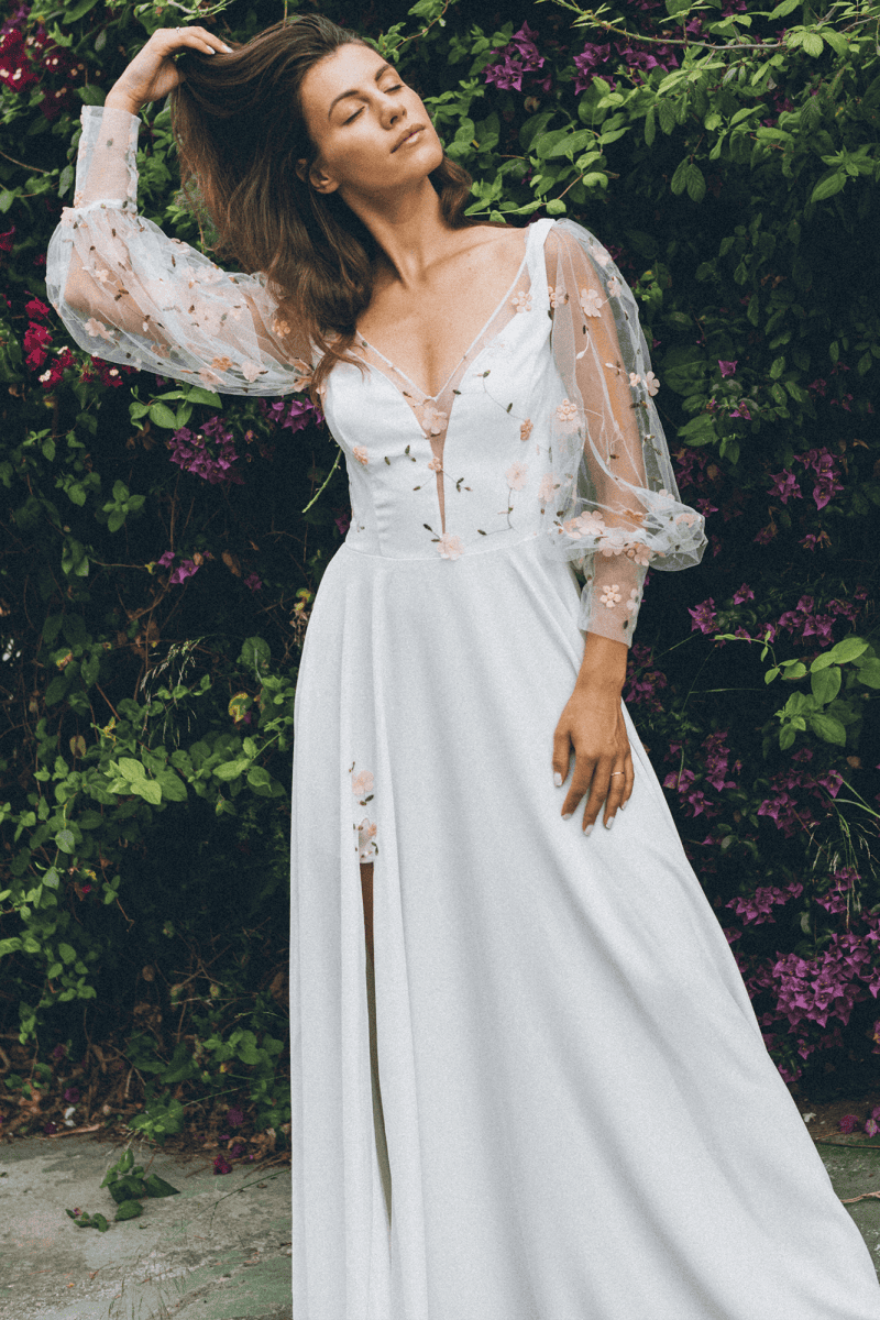 Twoja suknia zostanie uszyta z niesamowicie miękkiego, lekkiego i lejącego szyfonu, który będzie się poruszał nawet przy lekkim ruchu powietrza. Jeśli marzysz o klasycznej sukni ślubnej, ale przeraża Cię jej ciężar lub niewygodny gorset to jest to idealne rozwiązanie dla Ciebie! Ta suknia jest tak lekka, że możesz zapomnieć ją założyć! A podszewka tak elastyczna, że nie będziesz chciała jej zdjąć! Diabeł tkwi w szczegółach - zobacz subtelne wykończenia.