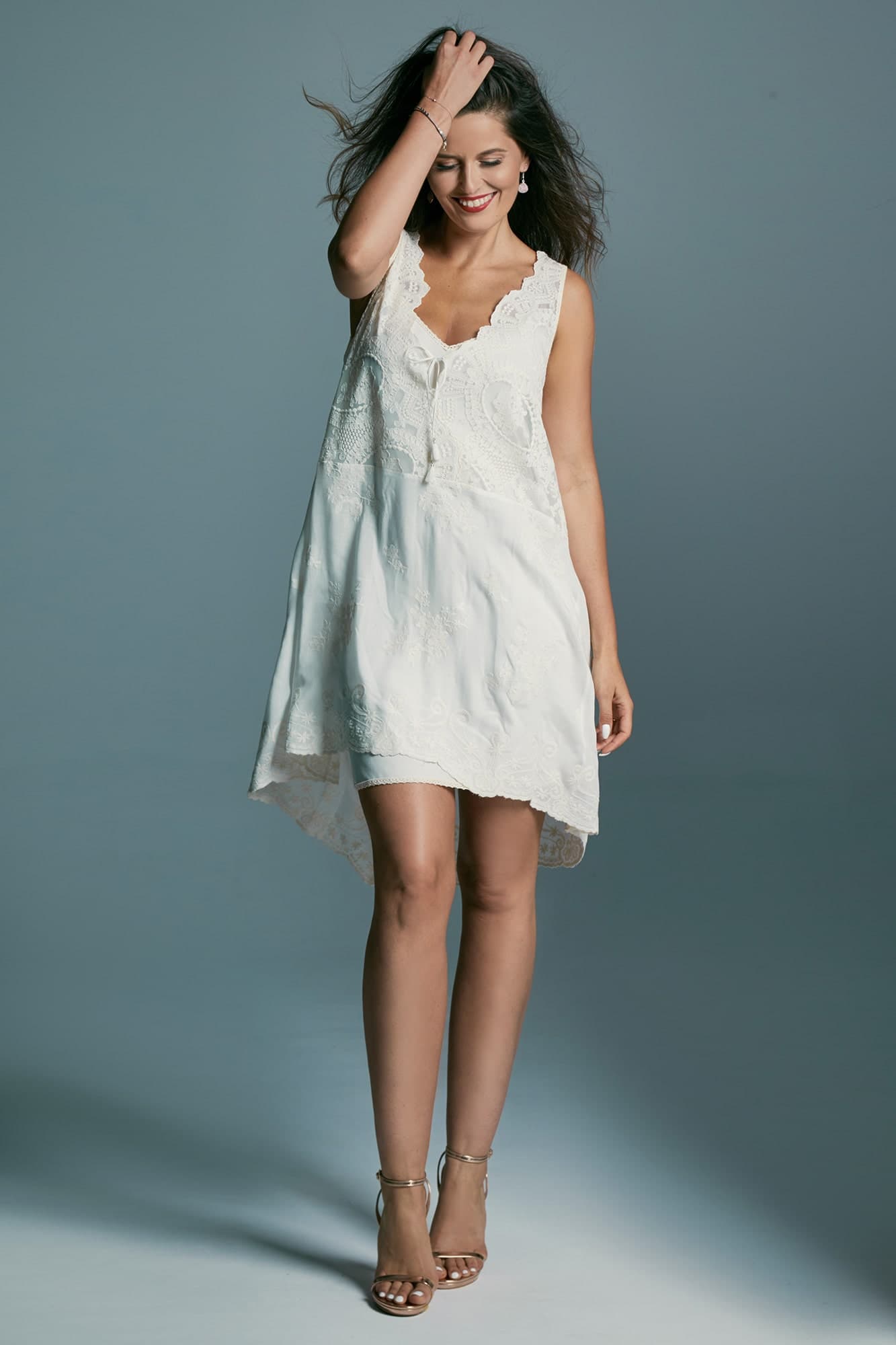Jeśli kochasz styl boho to krótka sukienka wizytowa wykonana właśnie w tym stylu z pewnością skradnie Twoje serce. Uszyta z wyjątkowo miękkiej i przewiewnej bawełny jest idealną propozycją na skromny ślub w plenerze lub poprawiny. Poznaj propozycję, która jest subtelna i romantyczna, a jednocześnie zmysłowa i seksowna.