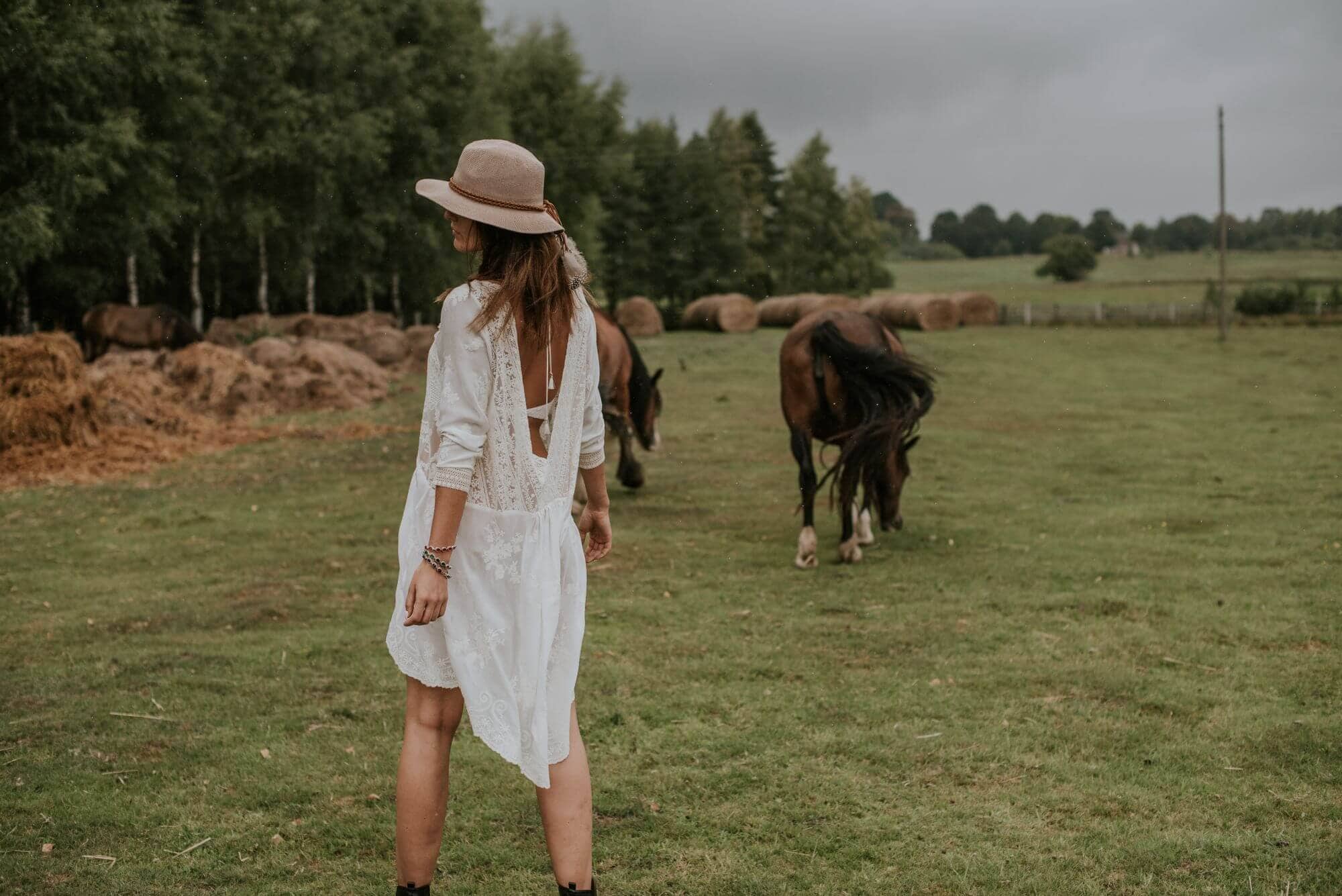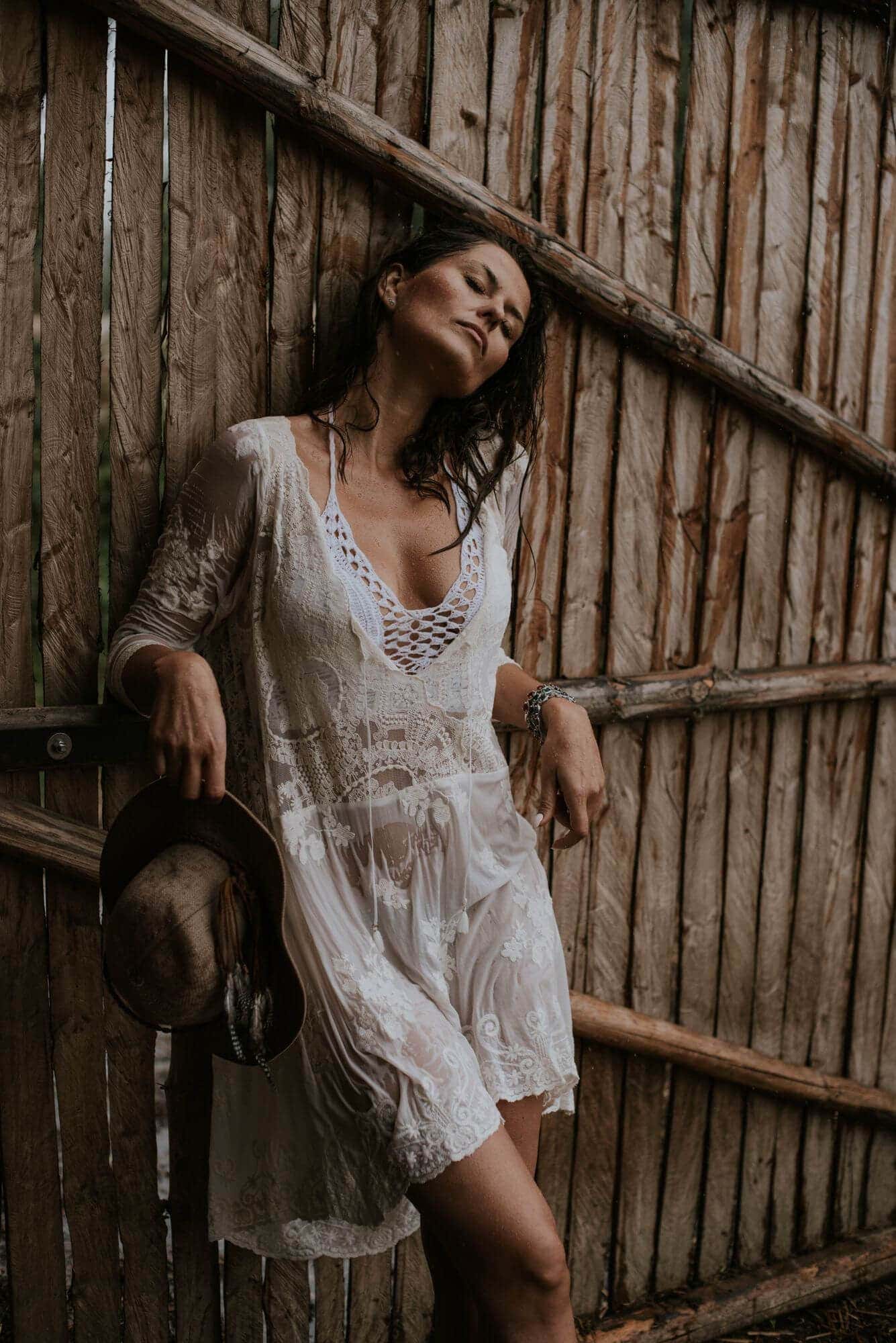 Plenerowe wesele na plaży ze stopami zanurzonymi w ciepłym piasku i uspokajającym szumem fal jako muzycznym tłem całej ceremonii? A może odosobniona polana i unoszący się w powietrzu zapach świeżo skoszonego siana? To brzmi jak bajka! Trudno się dziwić, że plenerowe śluby mają tyle zwolenniczek! Jeśli jesteś jedną z nich i poszukujesz czegoś pasującego do tych okoliczności, ta propozycja powinna Cię zainteresować. Krótkie sukienki ślubne to rozwiązanie dla Panien Młodych ceniących nieszablonowe rozwiązania w modzie ślubnej oraz pragnących wyeksponować nogi. Ta krótka suknia z długim rękawem została uszyta z bawełnianej tkaniny z bogatymi koronkowymi haftami w odcieniu beżu. Jest wyważona oraz delikatna – idealnie sprawdzi się jako sukienka na poprawiny lub właśnie na skromny ślub w plenerze, odbywający się w bliskim otoczeniu natury. Koronki pokrywające suknię subtelnie odsłaniają ciało, a wiązanie na karku stanowi piękne zwieńczenie całości i dodaje jej delikatności. Zwróć też uwagę na kwiatowe wzory, w jakie układają się pokrywające tkaninę koronki oraz na wyjątkowo dopracowany detal – elegancko wykończone rękawy. To idealna sukienka na poprawiny czy ślub, ale także na wiele innych okazji. Głęboki dekolt z przodu i seksowne wycięcie na plecach przez całą długość sprawi, że ta sukienka świetnie sprawdzi się na wieczór, zaś jej zwiewność pozwala na założenie jej też na mniej zobowiązujące wyjścia – tak naprawdę wszystko zależy od dodatków! Gdy dobierzesz do niej sandałki czy trampki to latem sprawdzi się świetnie także na co dzień. Gdy zestawisz ją z ulubionymi szpilkami, stanie się idealną propozycją na wyjątkowe wyjścia, a jeśli założysz do niej halkę lub top i połączysz z botkami i kapeluszem, zyskasz stylizację doskonale wpisującą się w styl boho. Dodatkowym atutem cechującym krótkie, bawełniane sukienki ślubne z kolekcji Barcelona jest możliwość zafarbowania koronek na dowolny kolor. Ciekawy efekt cieniowania występujący podczas tego procesu nadaje każdej sukni indywidualny charakter.