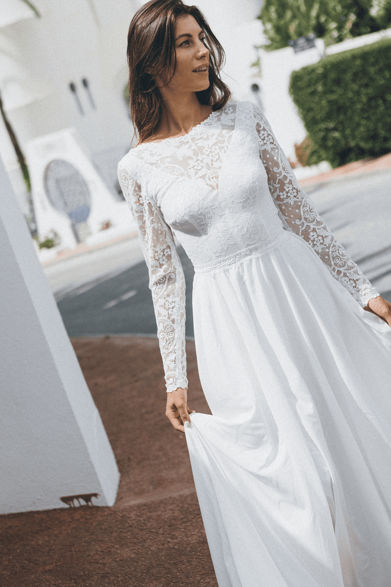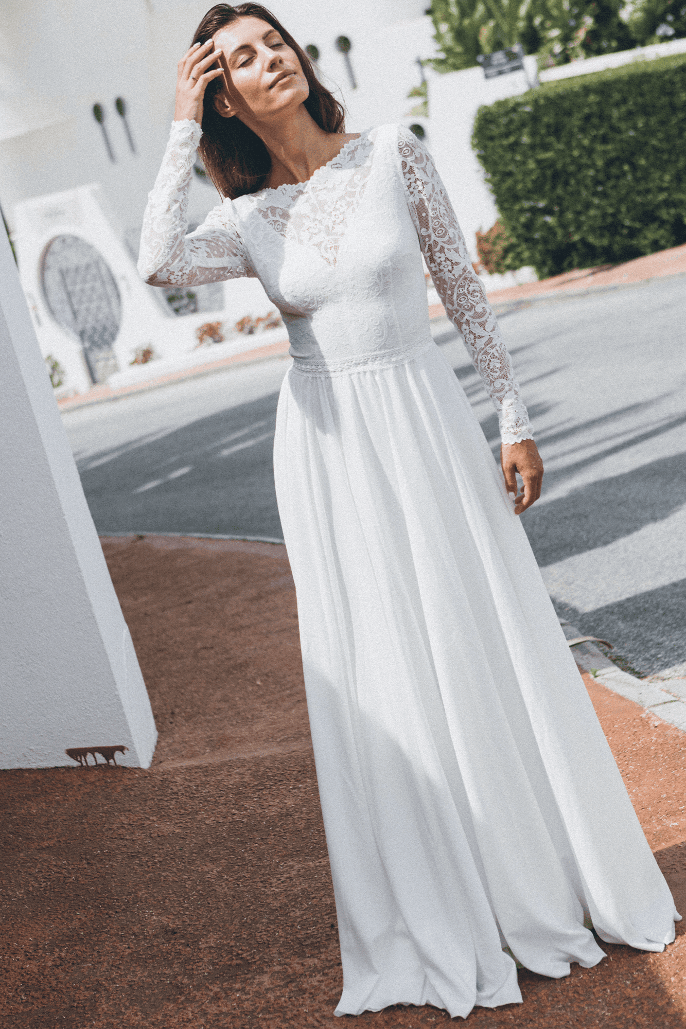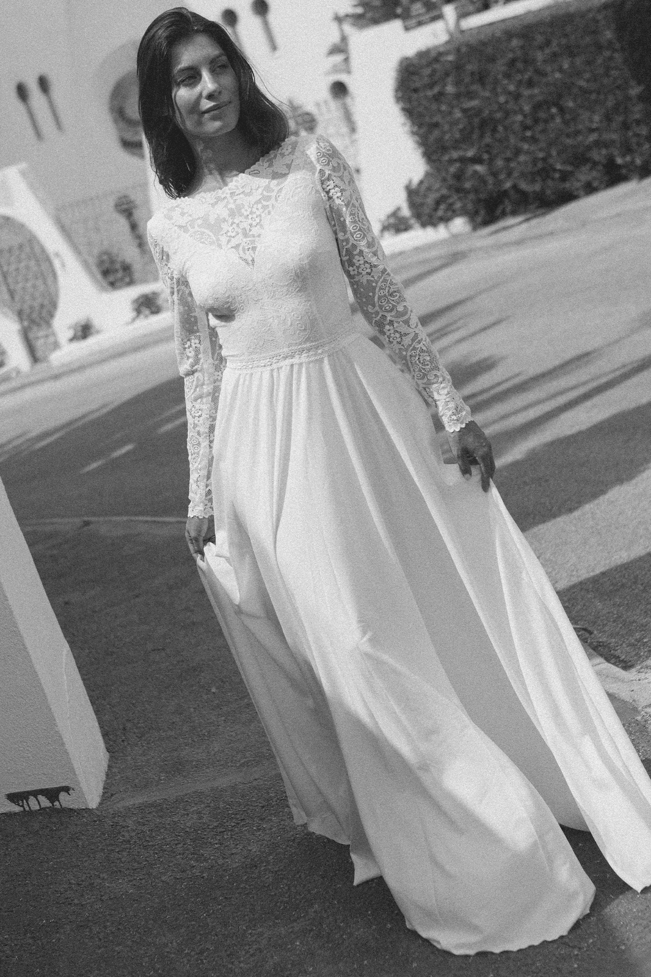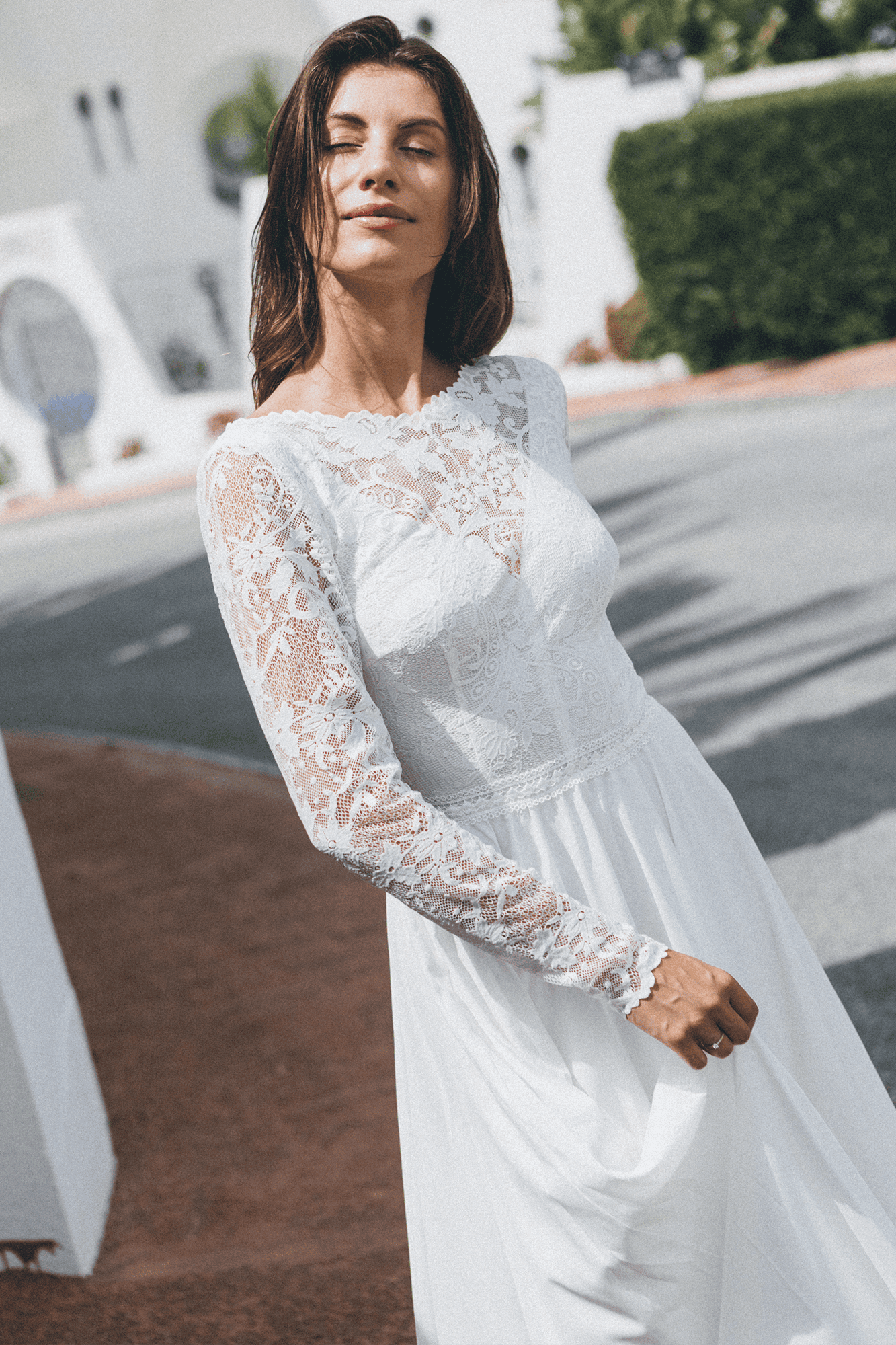 Twoja suknia zostanie uszyta z niesamowicie miękkiego, lekkiego i lejącego szyfonu, który będzie się poruszał nawet przy lekkim ruchu powietrza. Jeśli marzysz o klasycznej sukni ślubnej, ale przeraża Cię jej ciężar lub niewygodny gorset to jest to idealne rozwiązanie dla Ciebie! Ta suknia jest tak lekka, że możesz zapomnieć ją założyć! A podszewka tak elastyczna, że nie będziesz chciała jej zdjąć! Diabeł tkwi w szczegółach - zobacz subtelne wykończenia.