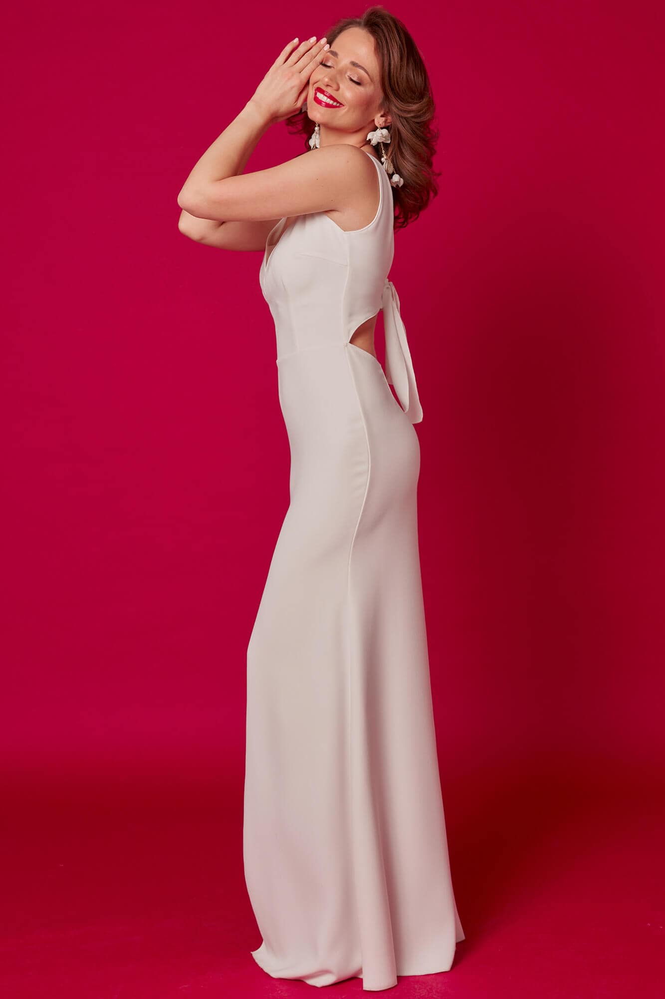 Twoja suknia zostanie uszyta z niesamowicie miękkiego, lekkiego i lejącego szyfonu, który będzie się poruszał nawet przy lekkim ruchu powietrza. Jeśli marzysz o klasycznej sukni ślubnej, ale przeraża Cię jej ciężar lub niewygodny gorset to jest to idealne rozwiązanie dla Ciebie! Ta suknia jest tak lekka, że możesz zapomnieć ją założyć! A podszewka tak elastyczna, że nie będziesz chciała jej zdjąć! Diabeł tkwi w szczegółach - zobacz subtelne wykończenia.
