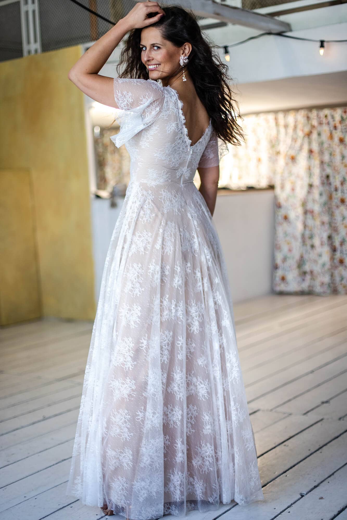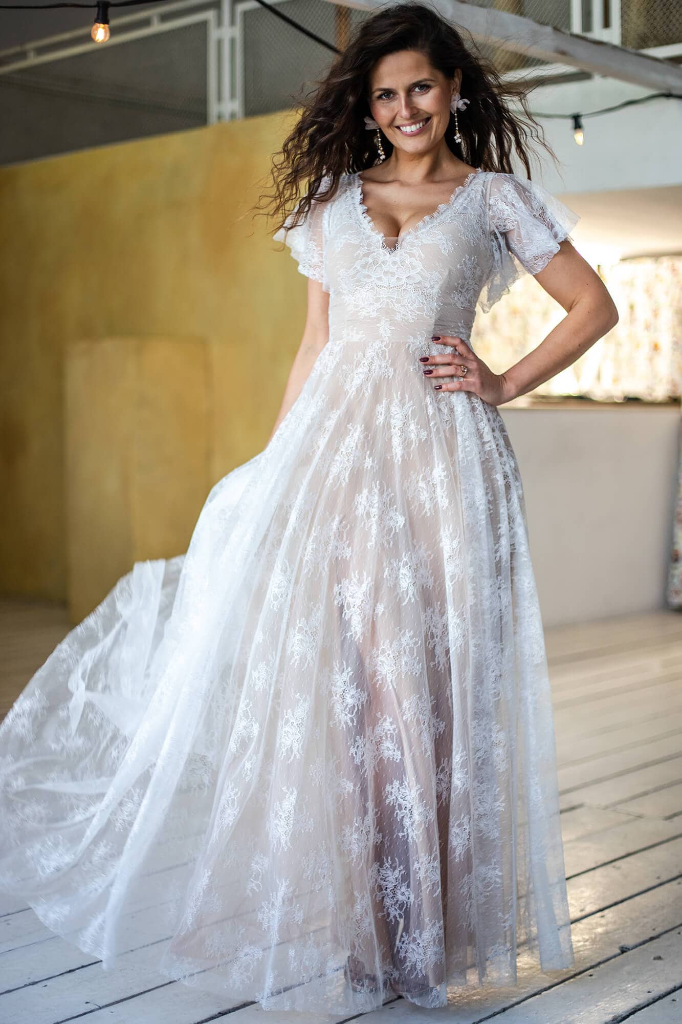 Uszyta ze sprawdzonych i przetestowanych przez nas materiałów. Używane przez nas koronki są mięciutkie, a dzięki swej lekkości cudownie układają się na sylwetce i pięknie wirują w tańcu. Ich elastyczność sprawia, że pracują z Twoim ciałem. Zapewniają komfort rosnącemu ciążowemu brzuszkowi. Praktycznie wszystkie nasze koronki są łatwe do prania w domowej pralce i niegniotące, dzięki czemu swoją suknię spokojnie możesz spakować do walizki i zabrać na romantyczną sesję poślubną.