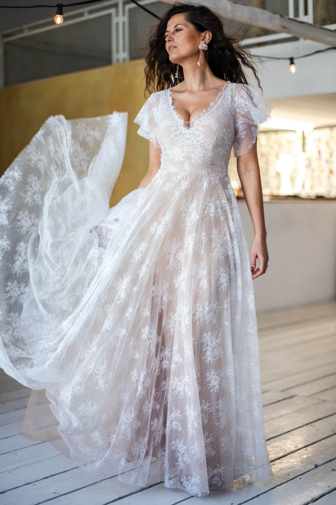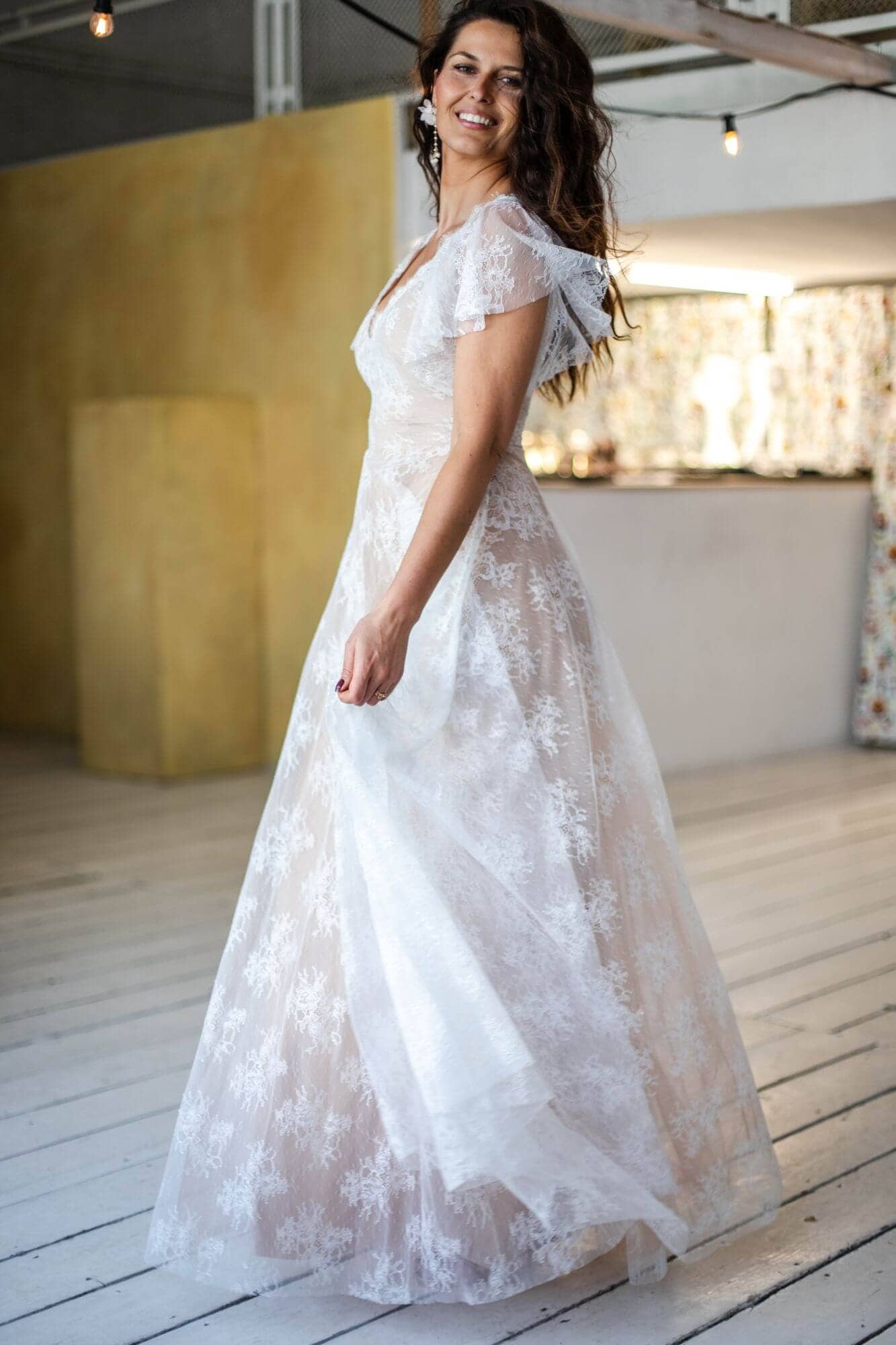 Twoja suknia zostanie uszyta z niesamowicie miękkiego, lekkiego i lejącego szyfonu, który będzie się poruszał nawet przy lekkim ruchu powietrza. Jeśli marzysz o klasycznej sukni ślubnej, ale przeraża Cię jej ciężar lub niewygodny gorset to jest to idealne rozwiązanie dla Ciebie! Ta suknia jest tak lekka, że możesz zapomnieć ją założyć! A podszewka tak elastyczna, że nie będziesz chciała jej zdjąć! Diabeł tkwi w szczegółach - zobacz subtelne wykończenia.