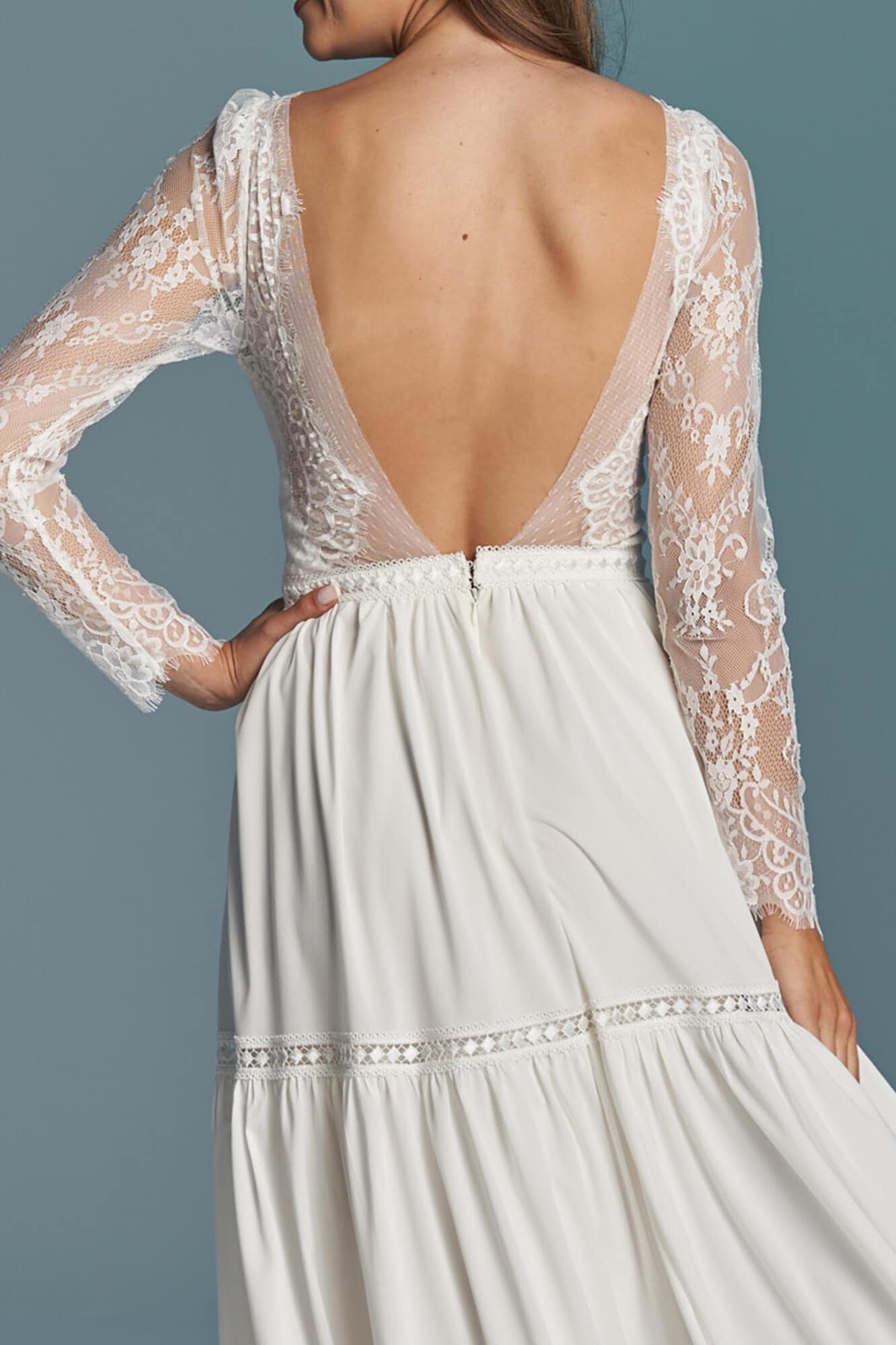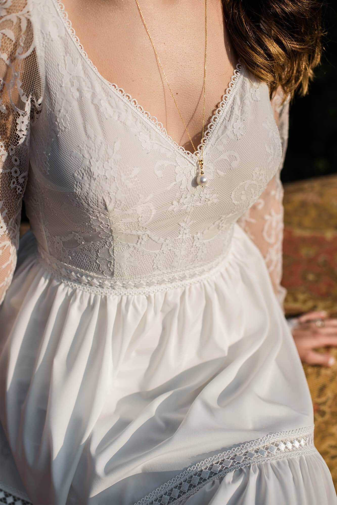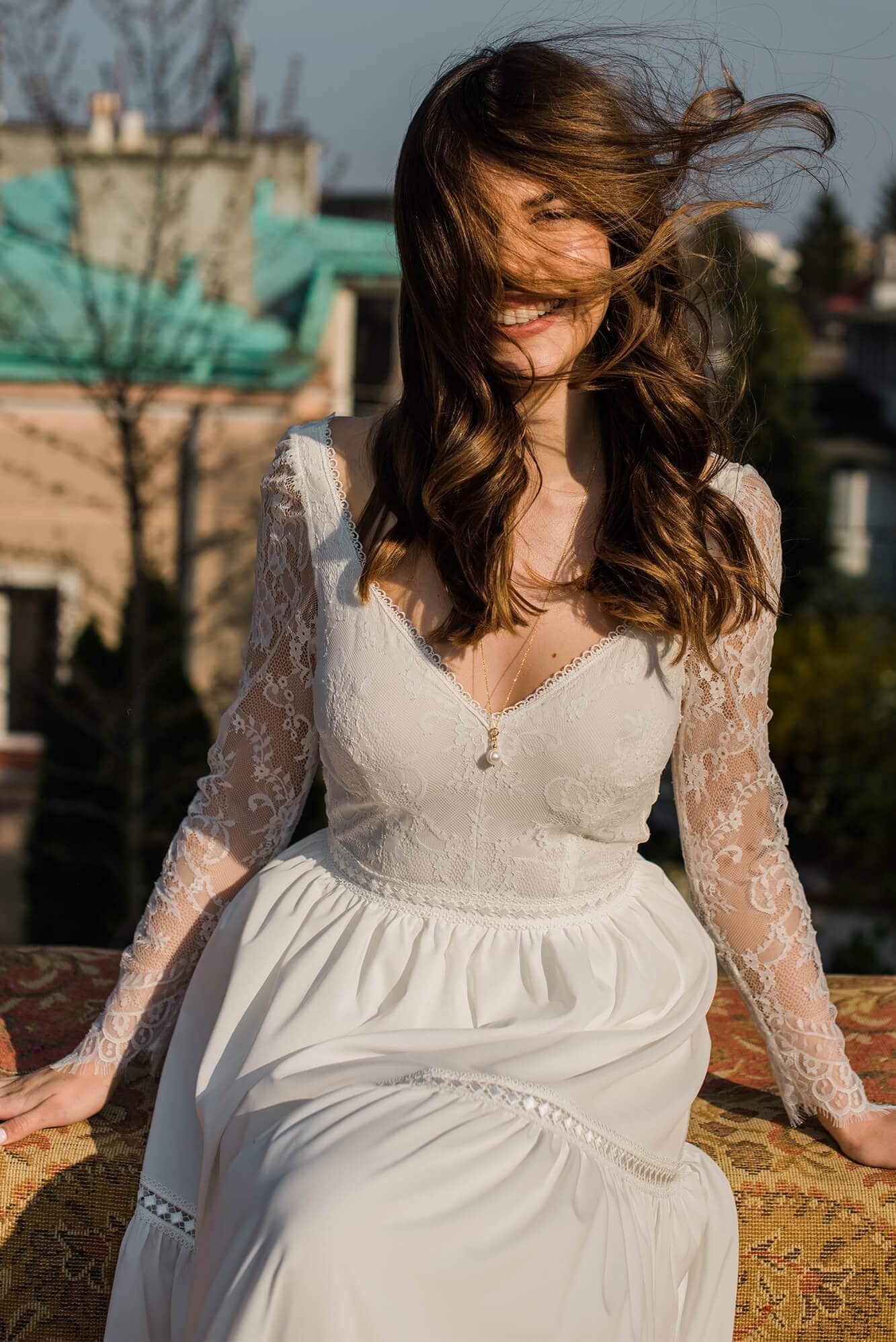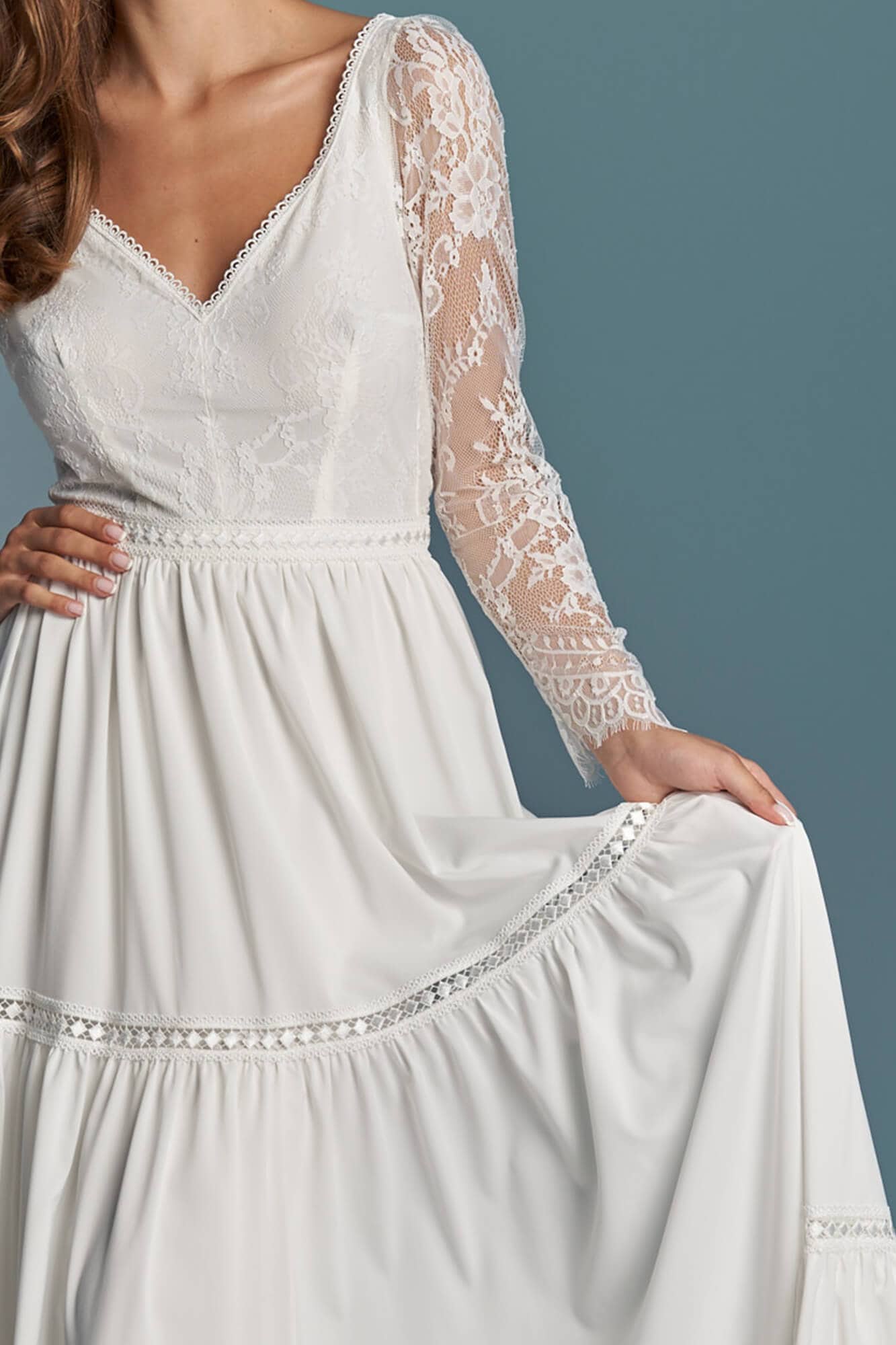 Twoja suknia zostanie uszyta z niesamowicie miękkiego, lekkiego i lejącego szyfonu, który będzie się poruszał nawet przy lekkim ruchu powietrza. Jeśli marzysz o klasycznej sukni ślubnej, ale przeraża Cię jej ciężar lub niewygodny gorset to jest to idealne rozwiązanie dla Ciebie! Ta suknia jest tak lekka, że możesz zapomnieć ją założyć! A podszewka tak elastyczna, że nie będziesz chciała jej zdjąć! Diabeł tkwi w szczegółach - zobacz subtelne wykończenia.