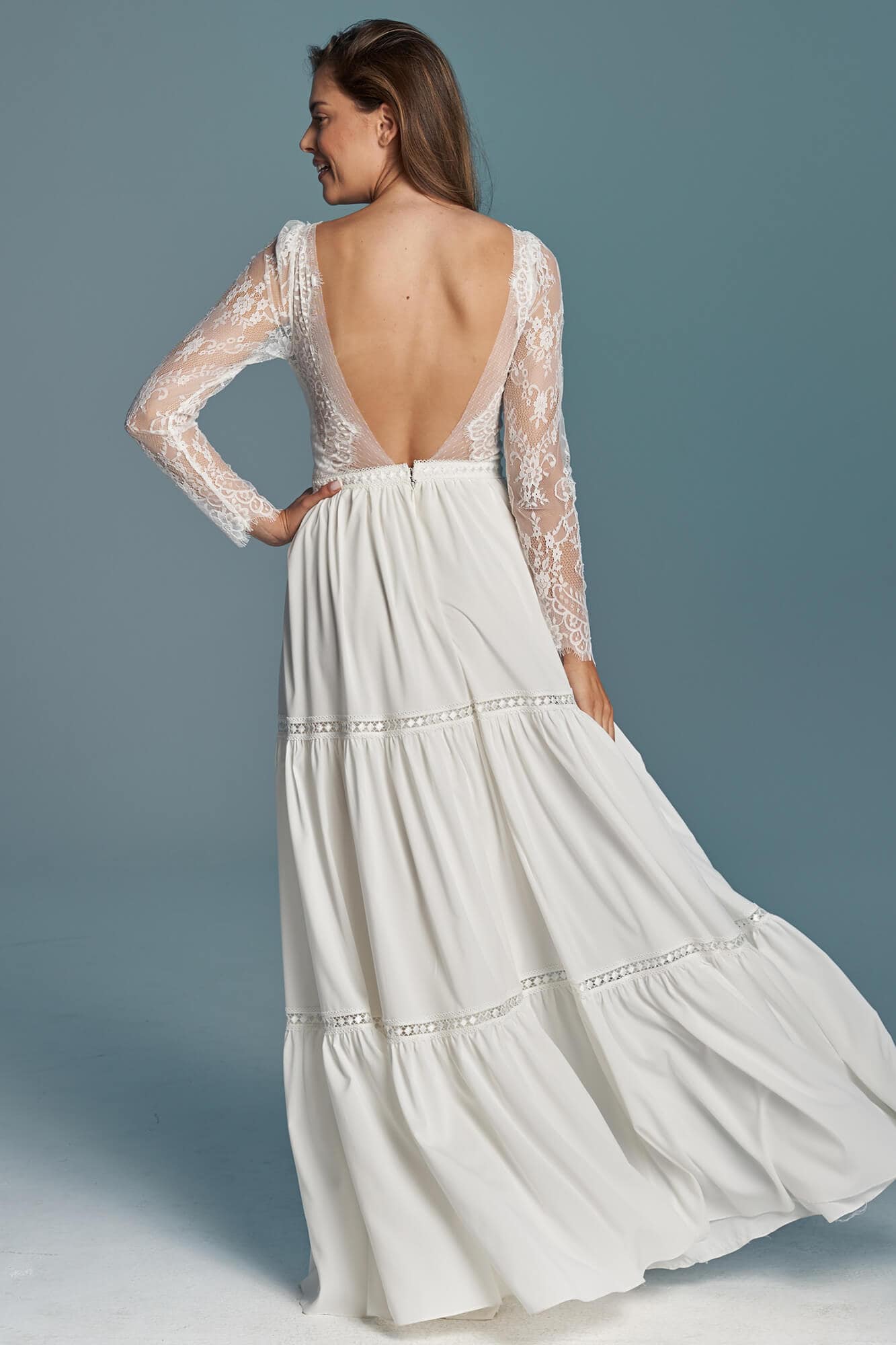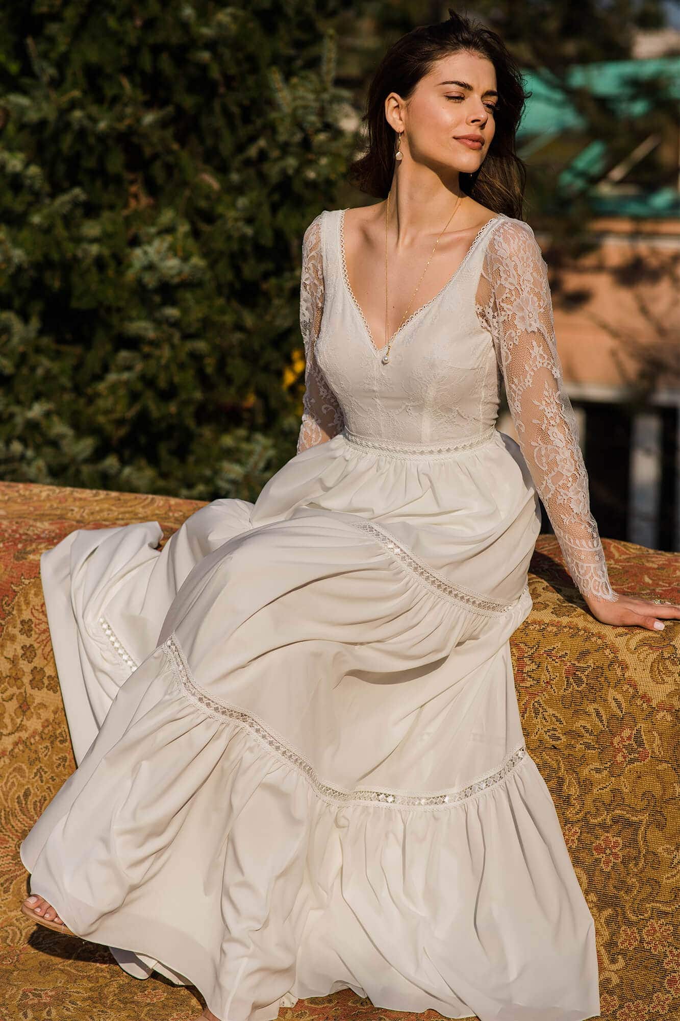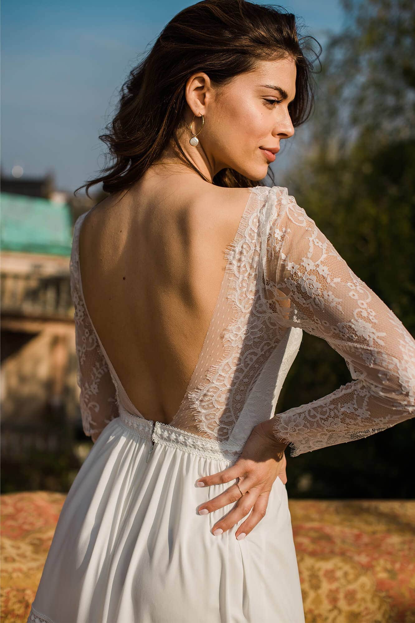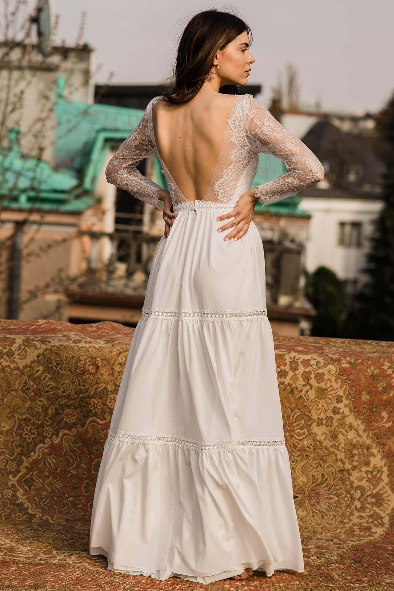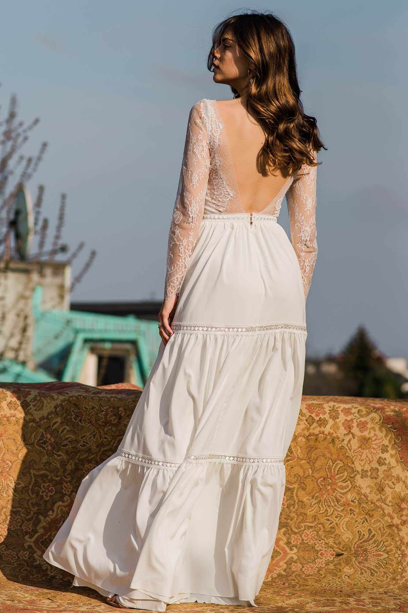 Twoja suknia zostanie uszyta z niesamowicie miękkiego, lekkiego i lejącego szyfonu, który będzie się poruszał nawet przy lekkim ruchu powietrza. Jeśli marzysz o klasycznej sukni ślubnej, ale przeraża Cię jej ciężar lub niewygodny gorset to jest to idealne rozwiązanie dla Ciebie! Ta suknia jest tak lekka, że możesz zapomnieć ją założyć! A podszewka tak elastyczna, że nie będziesz chciała jej zdjąć! Diabeł tkwi w szczegółach - zobacz subtelne wykończenia.