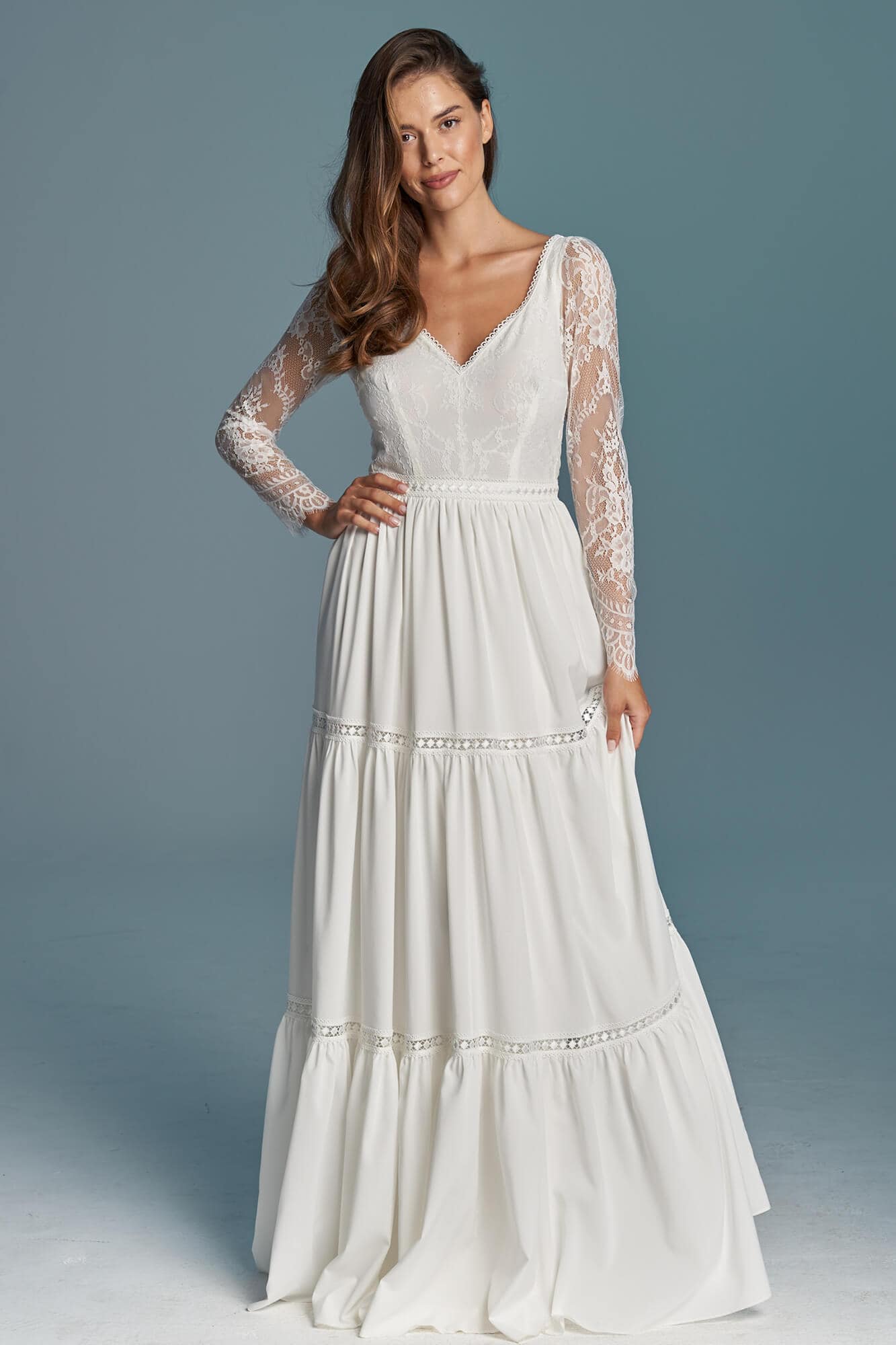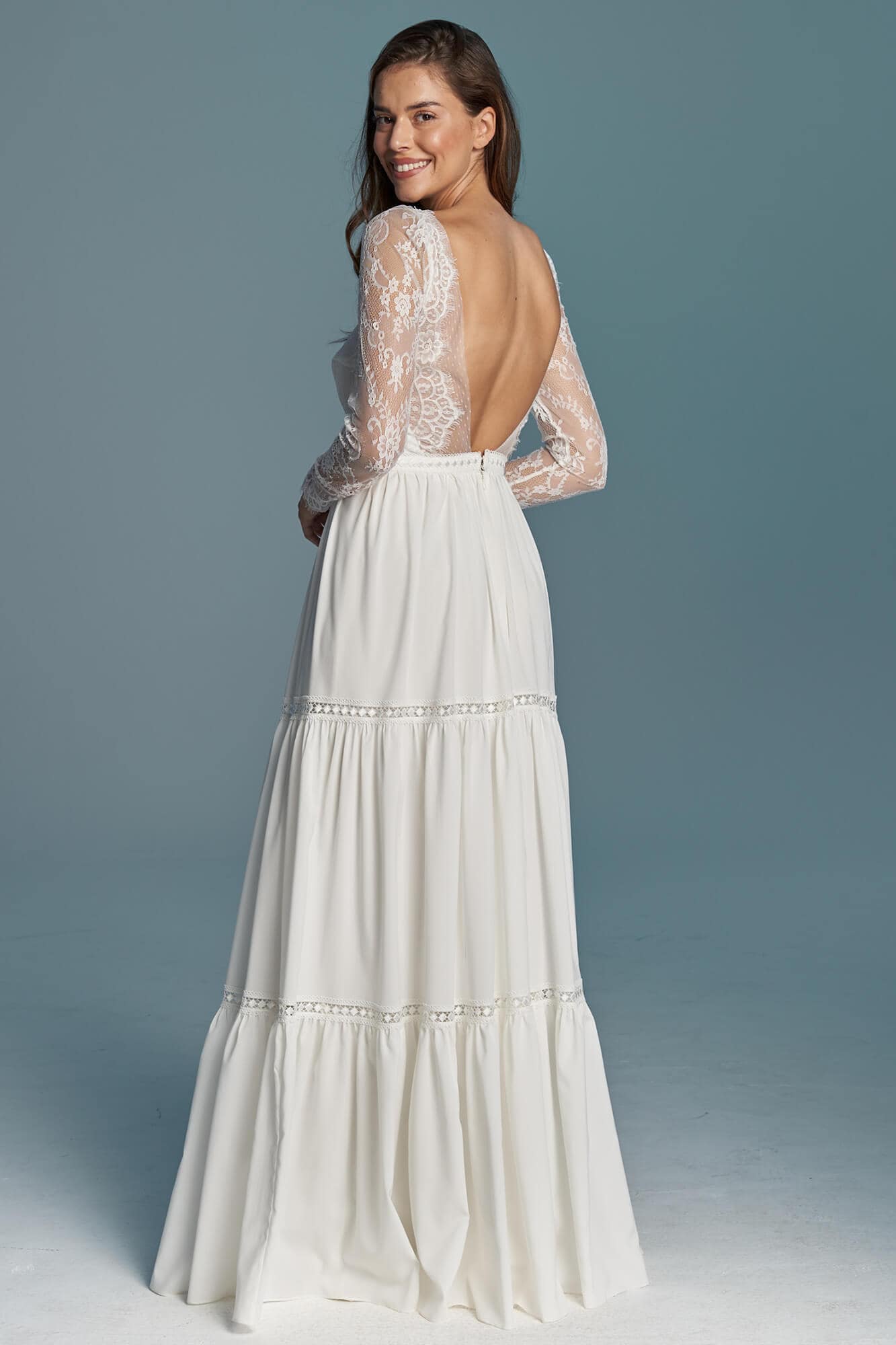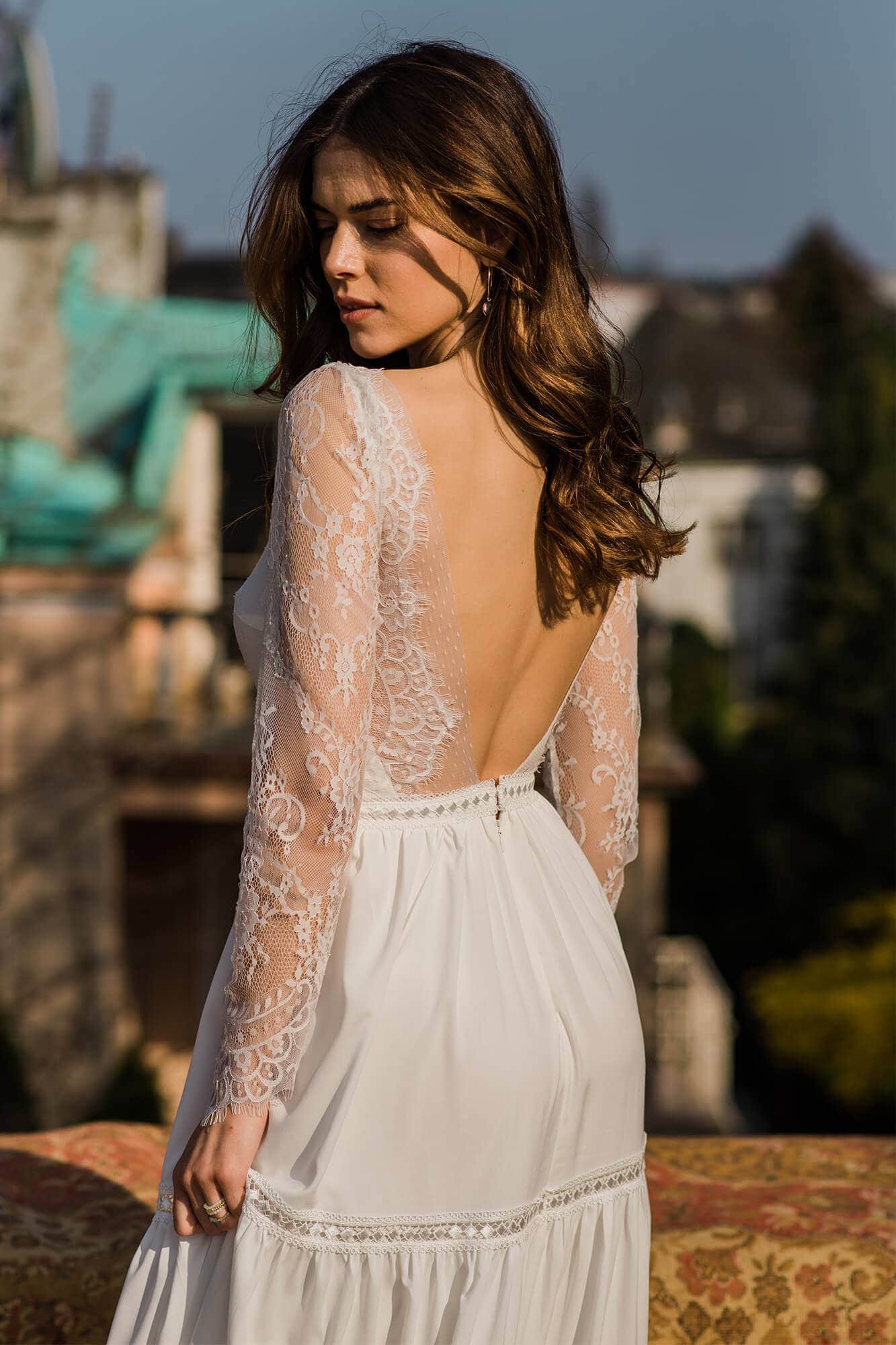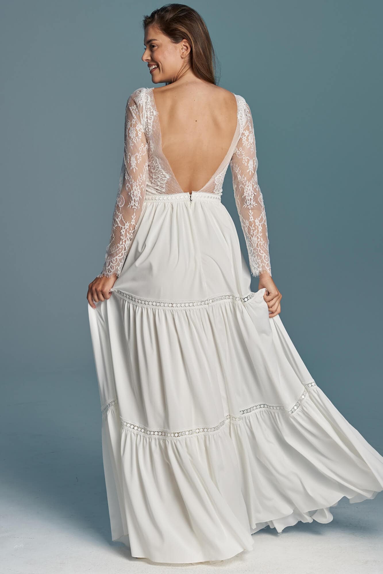 Twoja suknia zostanie uszyta z niesamowicie miękkiego, lekkiego i lejącego szyfonu, który będzie się poruszał nawet przy lekkim ruchu powietrza. Jeśli marzysz o klasycznej sukni ślubnej, ale przeraża Cię jej ciężar lub niewygodny gorset to jest to idealne rozwiązanie dla Ciebie! Ta suknia jest tak lekka, że możesz zapomnieć ją założyć! A podszewka tak elastyczna, że nie będziesz chciała jej zdjąć! Diabeł tkwi w szczegółach - zobacz subtelne wykończenia.