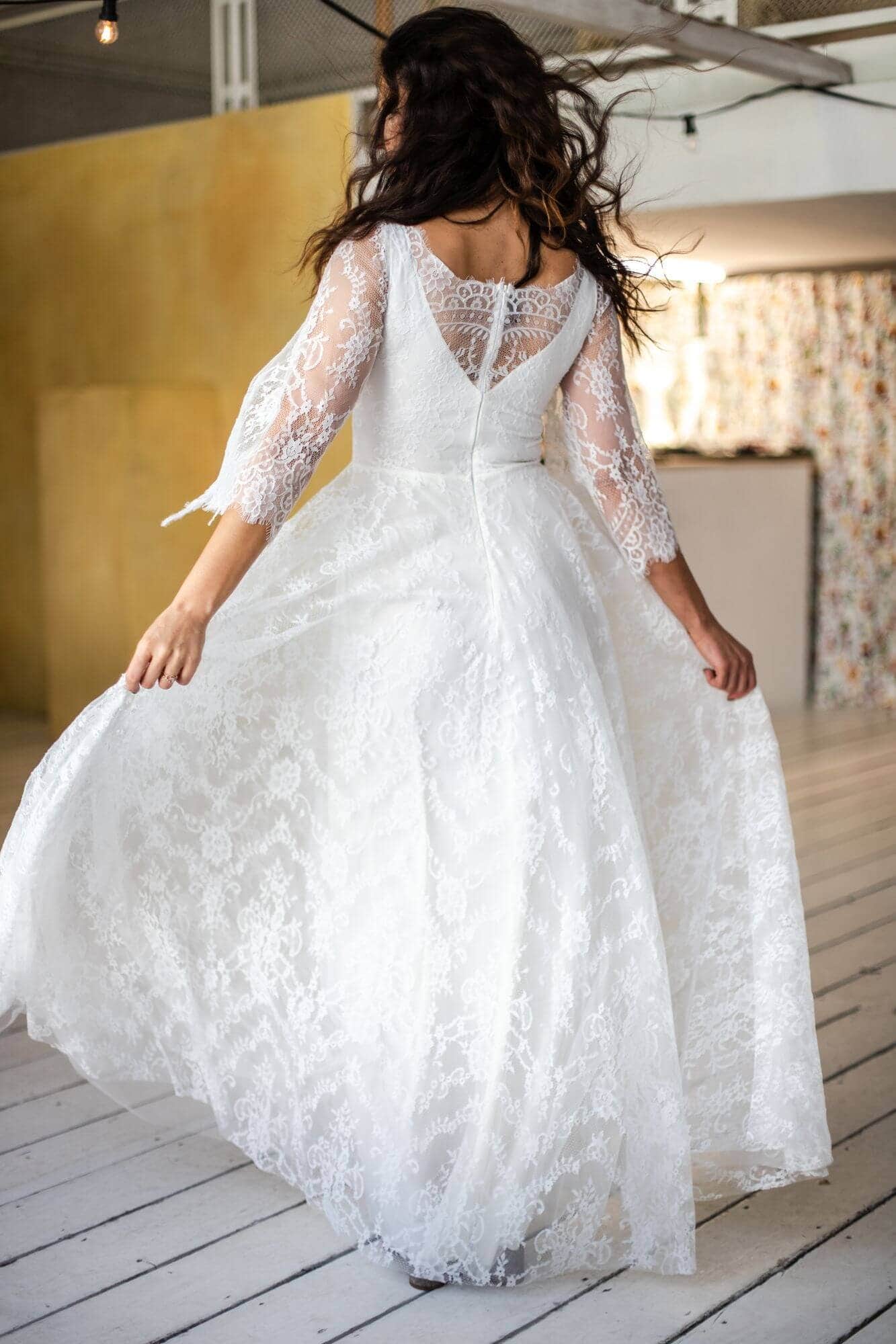 Twoja suknia zostanie uszyta z niesamowicie miękkiego, lekkiego i lejącego szyfonu, który będzie się poruszał nawet przy lekkim ruchu powietrza. Jeśli marzysz o klasycznej sukni ślubnej, ale przeraża Cię jej ciężar lub niewygodny gorset to jest to idealne rozwiązanie dla Ciebie! Ta suknia jest tak lekka, że możesz zapomnieć ją założyć! A podszewka tak elastyczna, że nie będziesz chciała jej zdjąć! Diabeł tkwi w szczegółach - zobacz subtelne wykończenia.