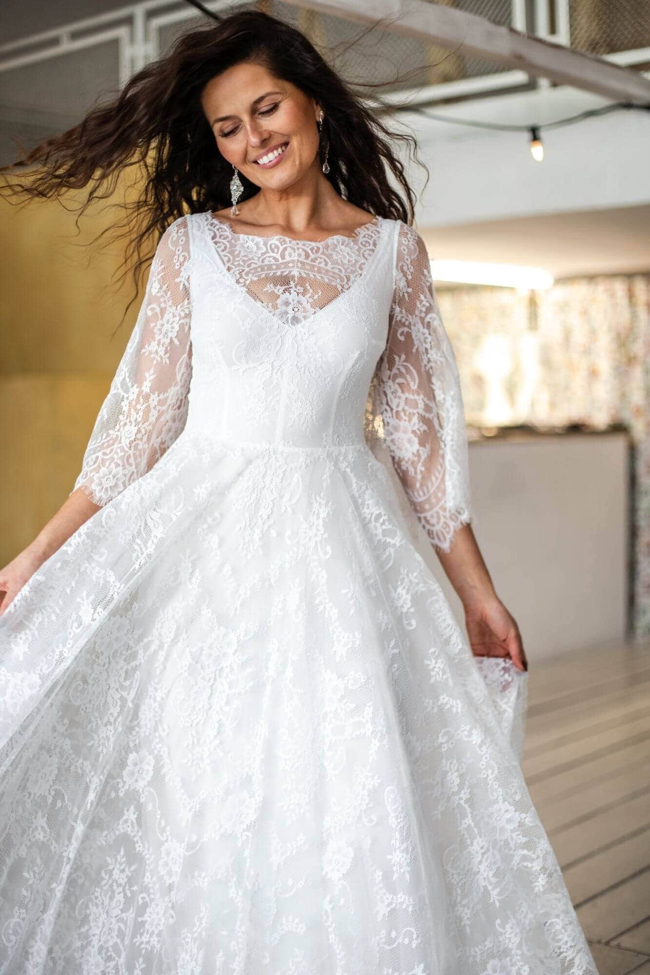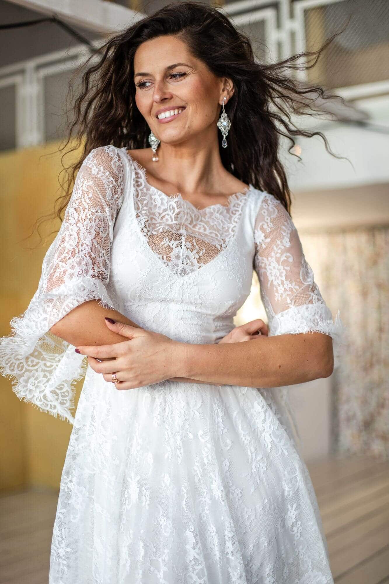 Twoją wymarzoną suknię uszyjemy w jeden dzień – rano mierzymy i dobieramy fason, kolor i wykończenia, po południu masz krótką przymiarkę techniczną (łączymy na Tobie elementy), a na koniec skracamy suknię i odbierasz gotową kreację tego samego dnia! Dla nas każda sylwetka jest „łatwa” – czy jesteś wysoka, czy niska, drobna czy masz pełne kształty, masz obfity biust czy ledwie widoczny, asymetrię ciała czy niepełnosprawności – uszyjemy suknię na Twoją figurę i na Twoją miarę!