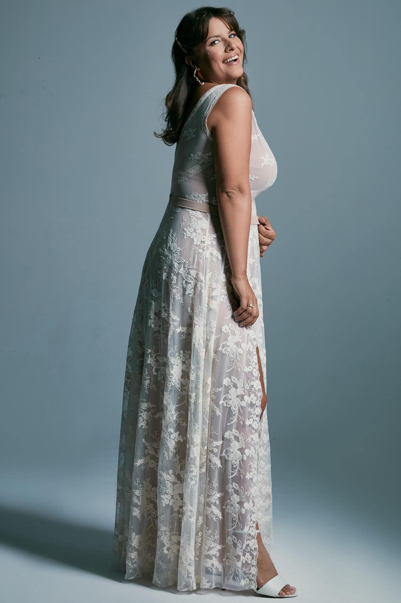 Uszyta ze sprawdzonych i przetestowanych przez nas materiałów. Używane przez nas koronki są mięciutkie, a dzięki swej lekkości cudownie układają się na sylwetce i pięknie wirują w tańcu. Ich elastyczność sprawia, że pracują z Twoim ciałem. Zapewniają komfort rosnącemu ciążowemu brzuszkowi. Praktycznie wszystkie nasze koronki są łatwe do prania w domowej pralce i niegniotące, dzięki czemu swoją suknię spokojnie możesz spakować do walizki i zabrać na romantyczną sesję poślubną.