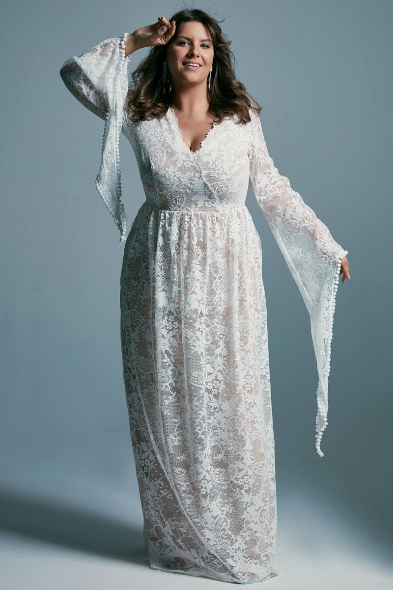 Ta suknia to model wyjściowy - możemy w niej zmienić praktycznie wszystko! Pogłębić lub spłycić dekolt, zmienić jego wykończenie, kształt, dodać lub odjąć falbankę czy frędzle. Rękawy mogą być dłuższe lub krótsze, mieć inny kształt niż te na zdjęciu. Może też nie być ich wcale. Tiul w spódnicy można dodać (lub odjąć) na wierzchu, albo pod spodem. Podszewka może być długa lub krótka w odcieniach bieli i beżu. Rozcięcie na nogę i tren można dodać lub usunąć praktycznie w każdym modelu.