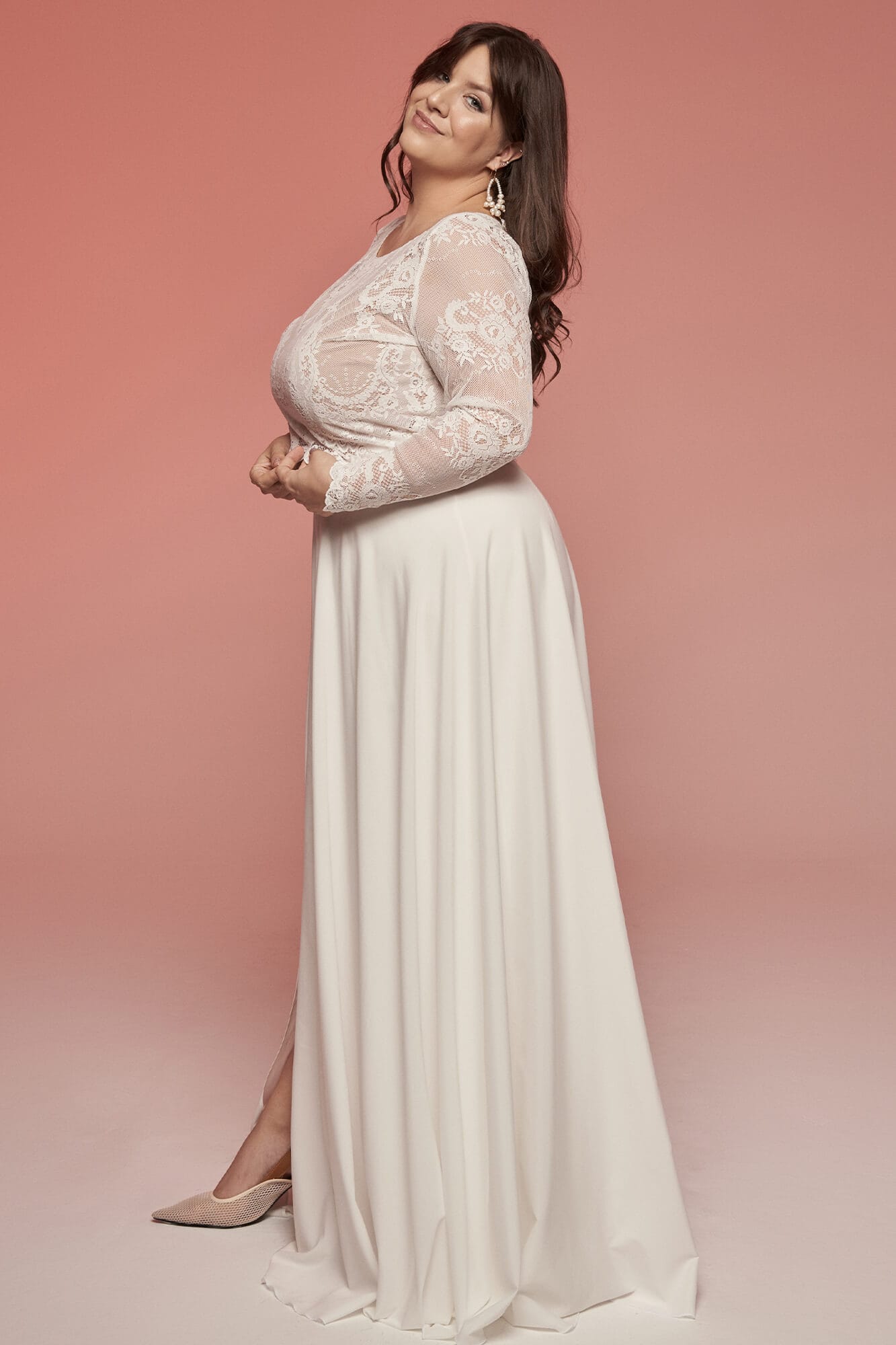 Uszyta ze sprawdzonych i przetestowanych przez nas materiałów. Używane przez nas koronki są mięciutkie, a dzięki swej lekkości cudownie układają się na sylwetce i pięknie wirują w tańcu. Ich elastyczność sprawia, że pracują z Twoim ciałem. Zapewniają komfort rosnącemu ciążowemu brzuszkowi. Praktycznie wszystkie nasze koronki są łatwe do prania w domowej pralce i niegniotące, dzięki czemu swoją suknię spokojnie możesz spakować do walizki i zabrać na romantyczną sesję poślubną.