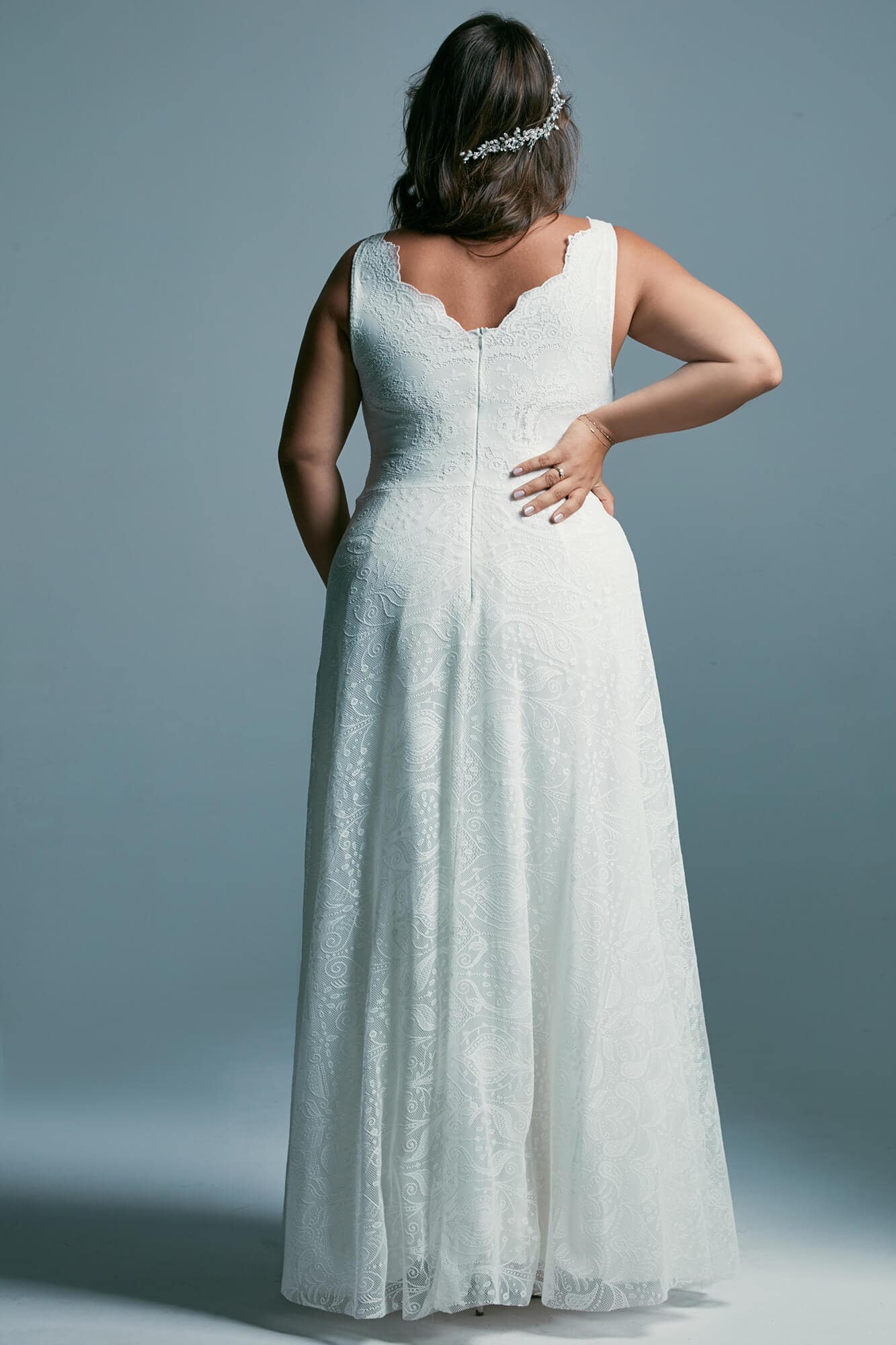Uszyta ze sprawdzonych i przetestowanych przez nas materiałów. Używane przez nas koronki są mięciutkie, a dzięki swej lekkości cudownie układają się na sylwetce i pięknie wirują w tańcu. Ich elastyczność sprawia, że pracują z Twoim ciałem. Zapewniają komfort rosnącemu ciążowemu brzuszkowi. Praktycznie wszystkie nasze koronki są łatwe do prania w domowej pralce i niegniotące, dzięki czemu swoją suknię spokojnie możesz spakować do walizki i zabrać na romantyczną sesję poślubną.
