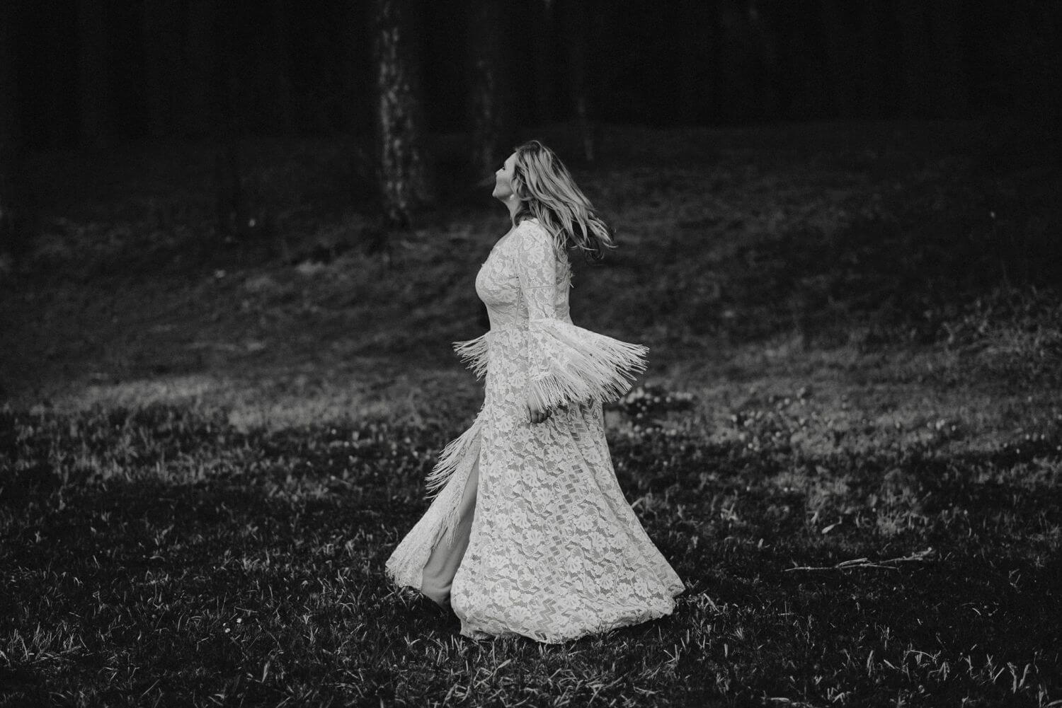 Uszyta ze sprawdzonych i przetestowanych przez nas materiałów. Używane przez nas koronki są mięciutkie, a dzięki swej lekkości cudownie układają się na sylwetce i pięknie wirują w tańcu. Ich elastyczność sprawia, że pracują z Twoim ciałem. Zapewniają komfort rosnącemu ciążowemu brzuszkowi. Praktycznie wszystkie nasze koronki są łatwe do prania w domowej pralce i niegniotące, dzięki czemu swoją suknię spokojnie możesz spakować do walizki i zabrać na romantyczną sesję poślubną.