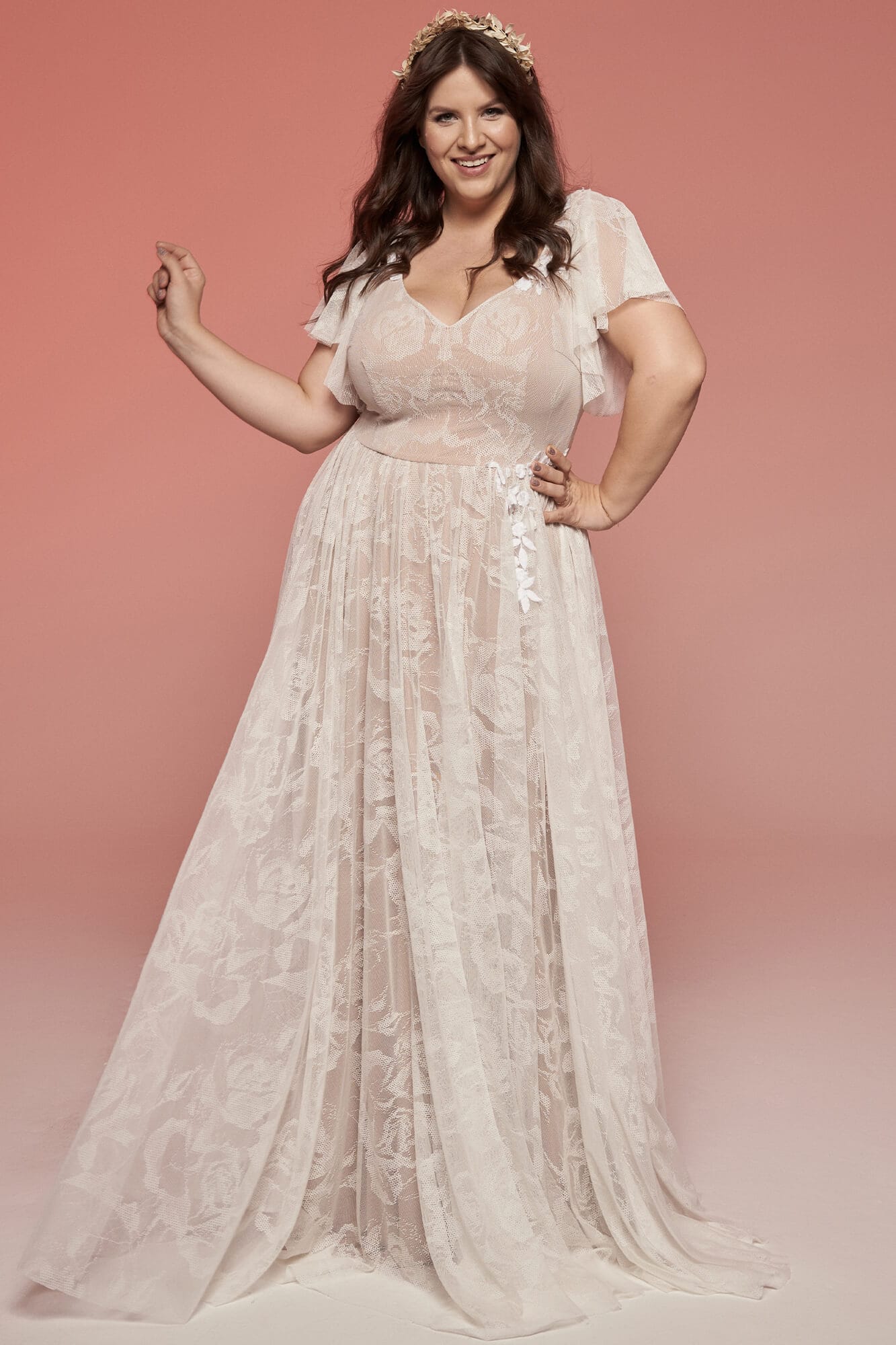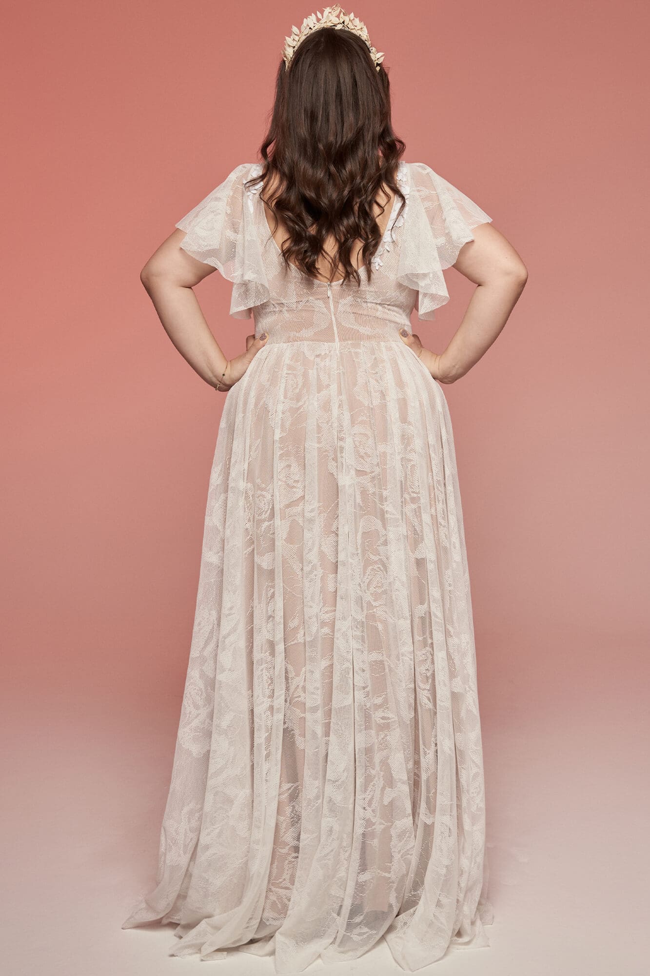 Uszyta ze sprawdzonych i przetestowanych przez nas materiałów. Używane przez nas koronki są mięciutkie, a dzięki swej lekkości cudownie układają się na sylwetce i pięknie wirują w tańcu. Ich elastyczność sprawia, że pracują z Twoim ciałem. Zapewniają komfort rosnącemu ciążowemu brzuszkowi. Praktycznie wszystkie nasze koronki są łatwe do prania w domowej pralce i niegniotące, dzięki czemu swoją suknię spokojnie możesz spakować do walizki i zabrać na romantyczną sesję poślubną.