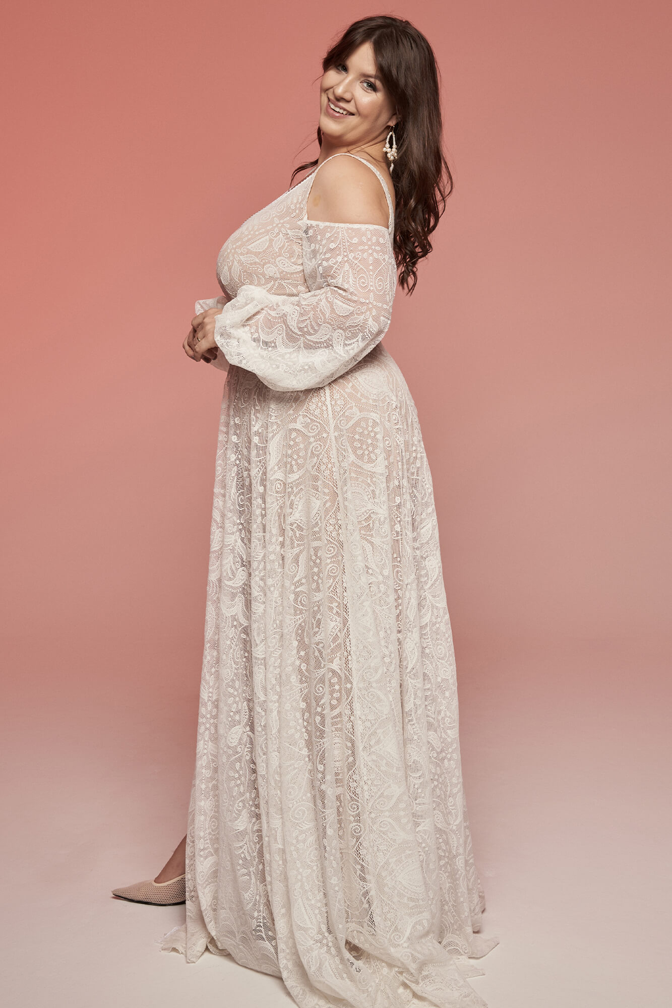 Uszyta ze sprawdzonych i przetestowanych przez nas materiałów. Używane przez nas koronki są mięciutkie, a dzięki swej lekkości cudownie układają się na sylwetce i pięknie wirują w tańcu. Ich elastyczność sprawia, że pracują z Twoim ciałem. Zapewniają komfort rosnącemu ciążowemu brzuszkowi. Praktycznie wszystkie nasze koronki są łatwe do prania w domowej pralce i niegniotące, dzięki czemu swoją suknię spokojnie możesz spakować do walizki i zabrać na romantyczną sesję poślubną.