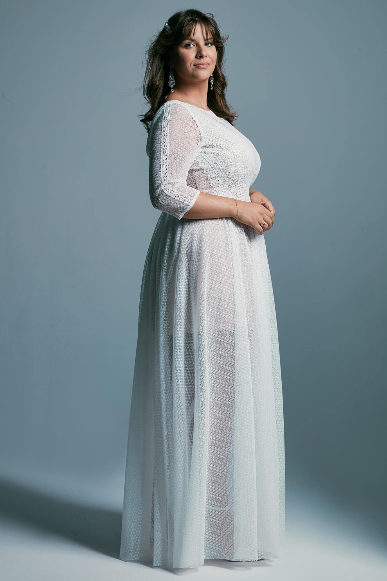 Uszyta ze sprawdzonych i przetestowanych przez nas materiałów. Używane przez nas koronki są mięciutkie, a dzięki swej lekkości cudownie układają się na sylwetce i pięknie wirują w tańcu. Ich elastyczność sprawia, że pracują z Twoim ciałem. Zapewniają komfort rosnącemu ciążowemu brzuszkowi. Praktycznie wszystkie nasze koronki są łatwe do prania w domowej pralce i niegniotące, dzięki czemu swoją suknię spokojnie możesz spakować do walizki i zabrać na romantyczną sesję poślubną.