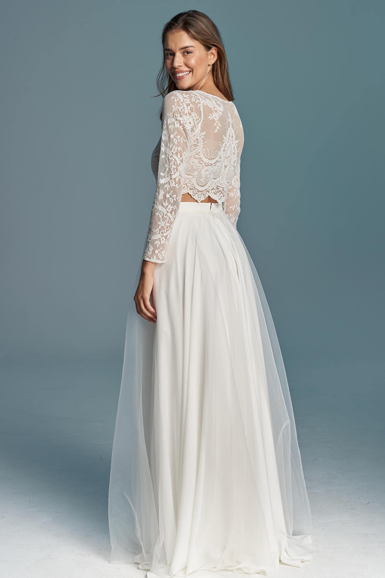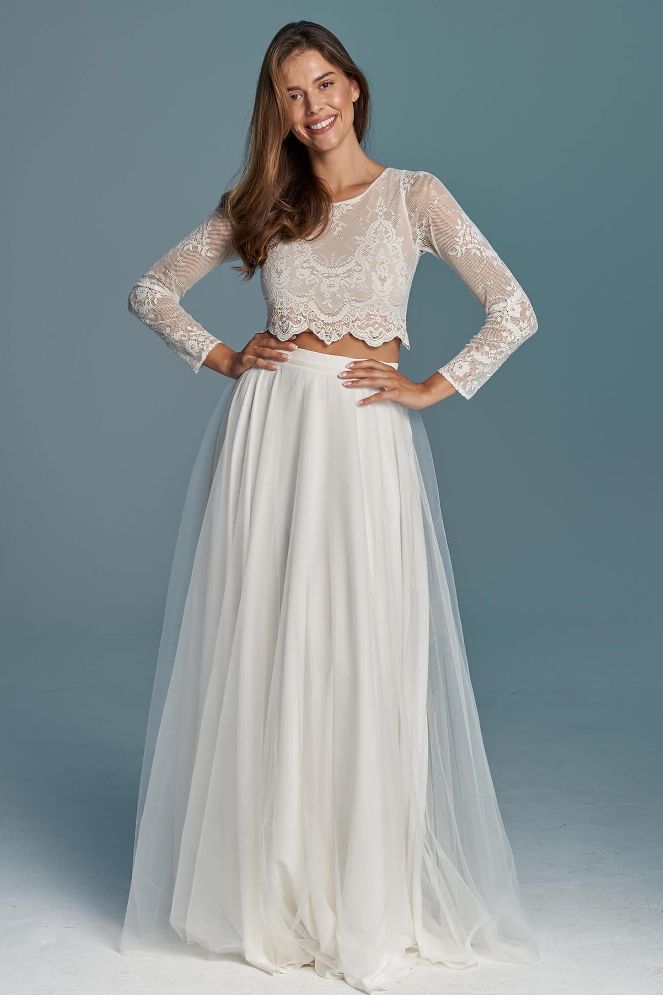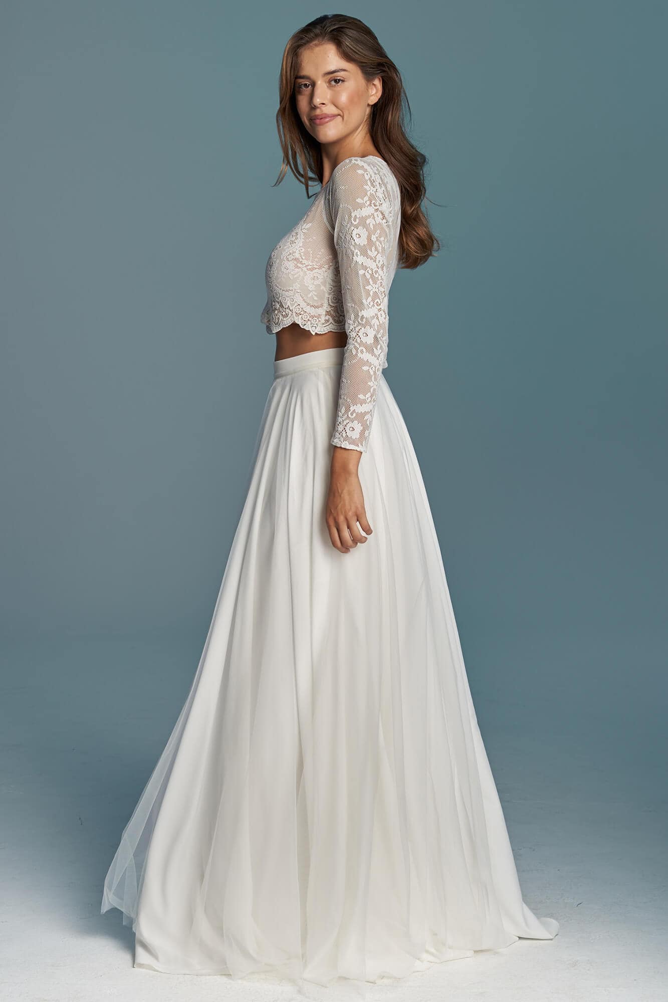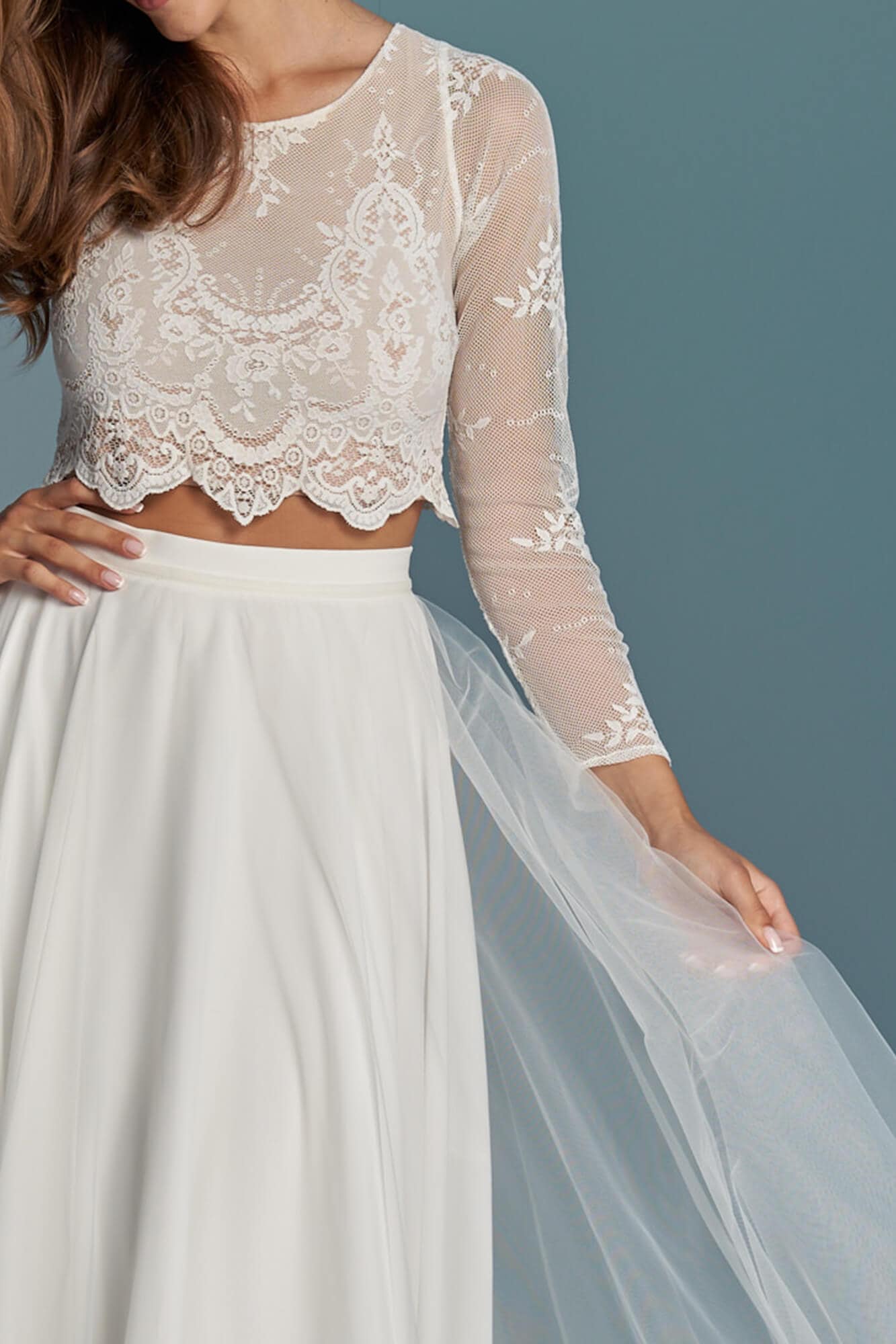 Uszyta ze sprawdzonych i przetestowanych przez nas materiałów. Używane przez nas koronki są mięciutkie, a dzięki swej lekkości cudownie układają się na sylwetce i pięknie wirują w tańcu. Ich elastyczność sprawia, że pracują z Twoim ciałem. Zapewniają komfort rosnącemu ciążowemu brzuszkowi. Praktycznie wszystkie nasze koronki są łatwe do prania w domowej pralce i niegniotące, dzięki czemu swoją suknię spokojnie możesz spakować do walizki i zabrać na romantyczną sesję poślubną.