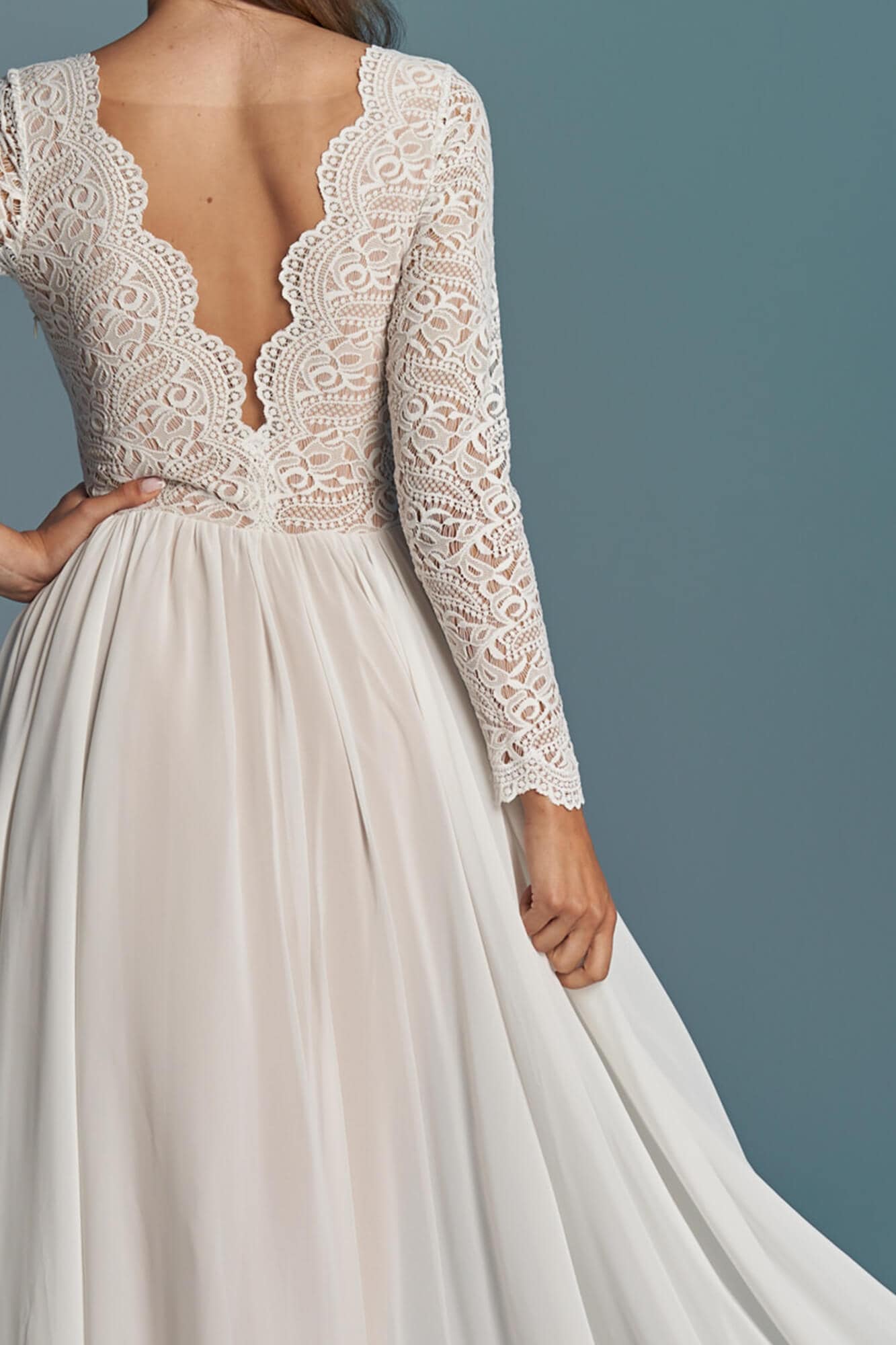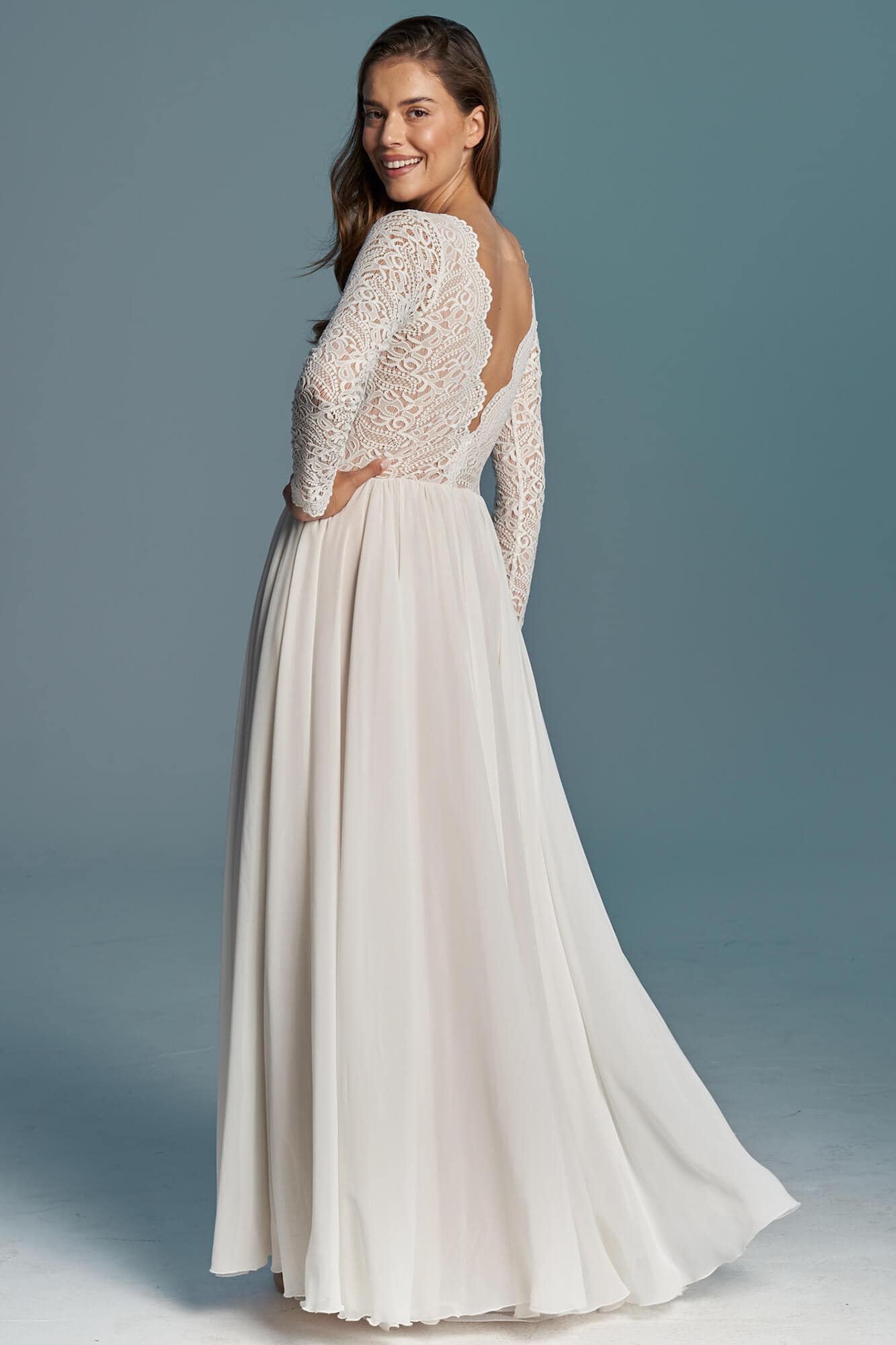 Uszyta ze sprawdzonych i przetestowanych przez nas materiałów. Używane przez nas koronki są mięciutkie, a dzięki swej lekkości cudownie układają się na sylwetce i pięknie wirują w tańcu. Ich elastyczność sprawia, że pracują z Twoim ciałem. Zapewniają komfort rosnącemu ciążowemu brzuszkowi. Praktycznie wszystkie nasze koronki są łatwe do prania w domowej pralce i niegniotące, dzięki czemu swoją suknię spokojnie możesz spakować do walizki i zabrać na romantyczną sesję poślubną.