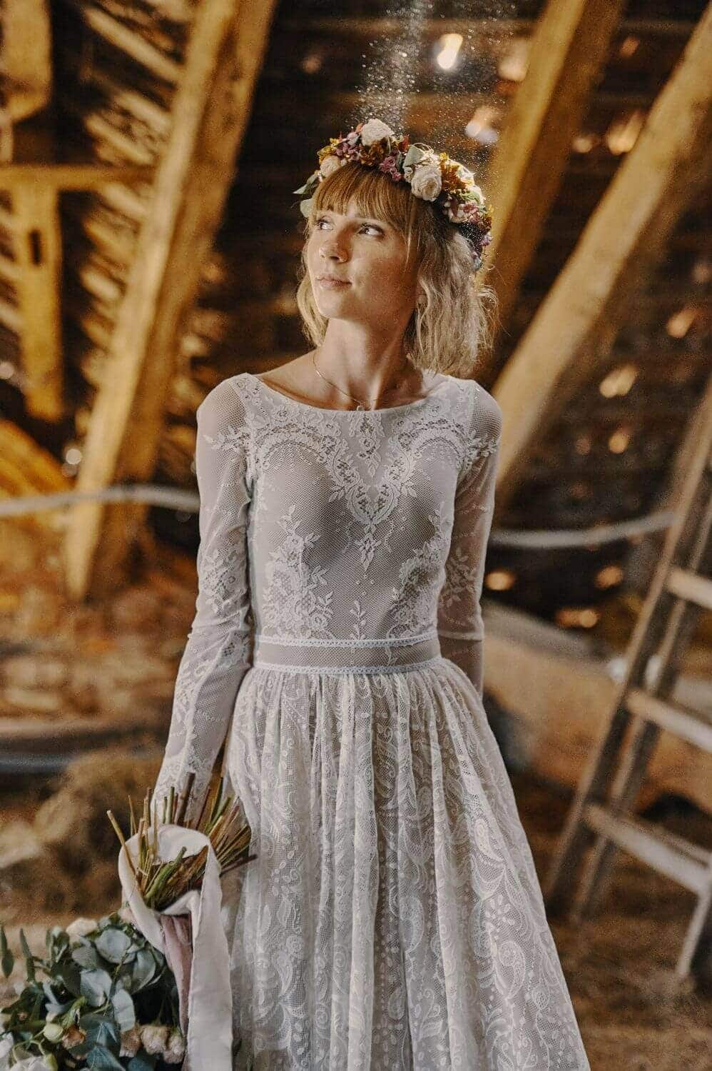 Uszyta ze sprawdzonych i przetestowanych przez nas materiałów. Używane przez nas koronki są mięciutkie, a dzięki swej lekkości cudownie układają się na sylwetce i pięknie wirują w tańcu. Ich elastyczność sprawia, że pracują z Twoim ciałem. Zapewniają komfort rosnącemu ciążowemu brzuszkowi. Praktycznie wszystkie nasze koronki są łatwe do prania w domowej pralce i niegniotące, dzięki czemu swoją suknię spokojnie możesz spakować do walizki i zabrać na romantyczną sesję poślubną.