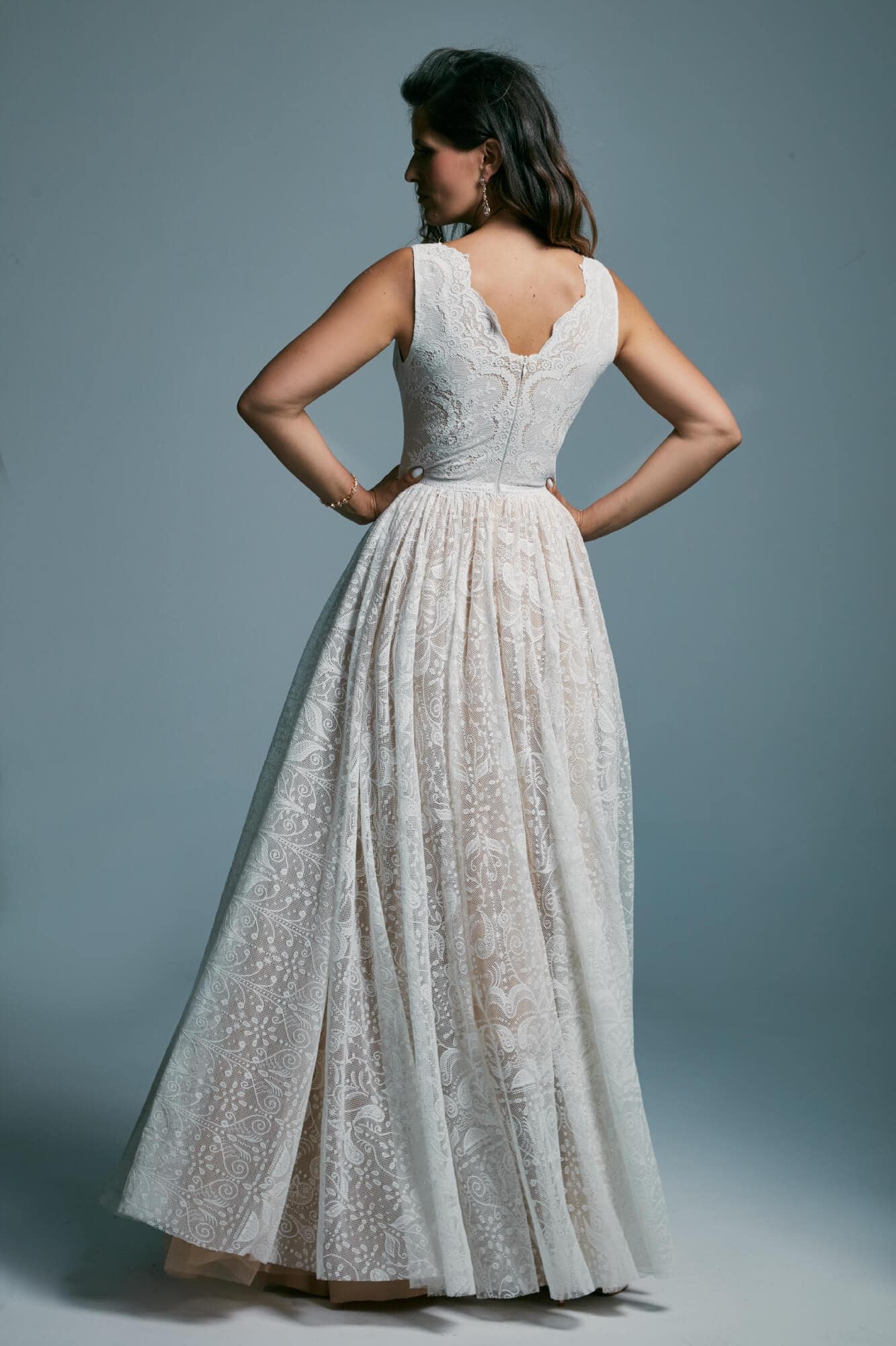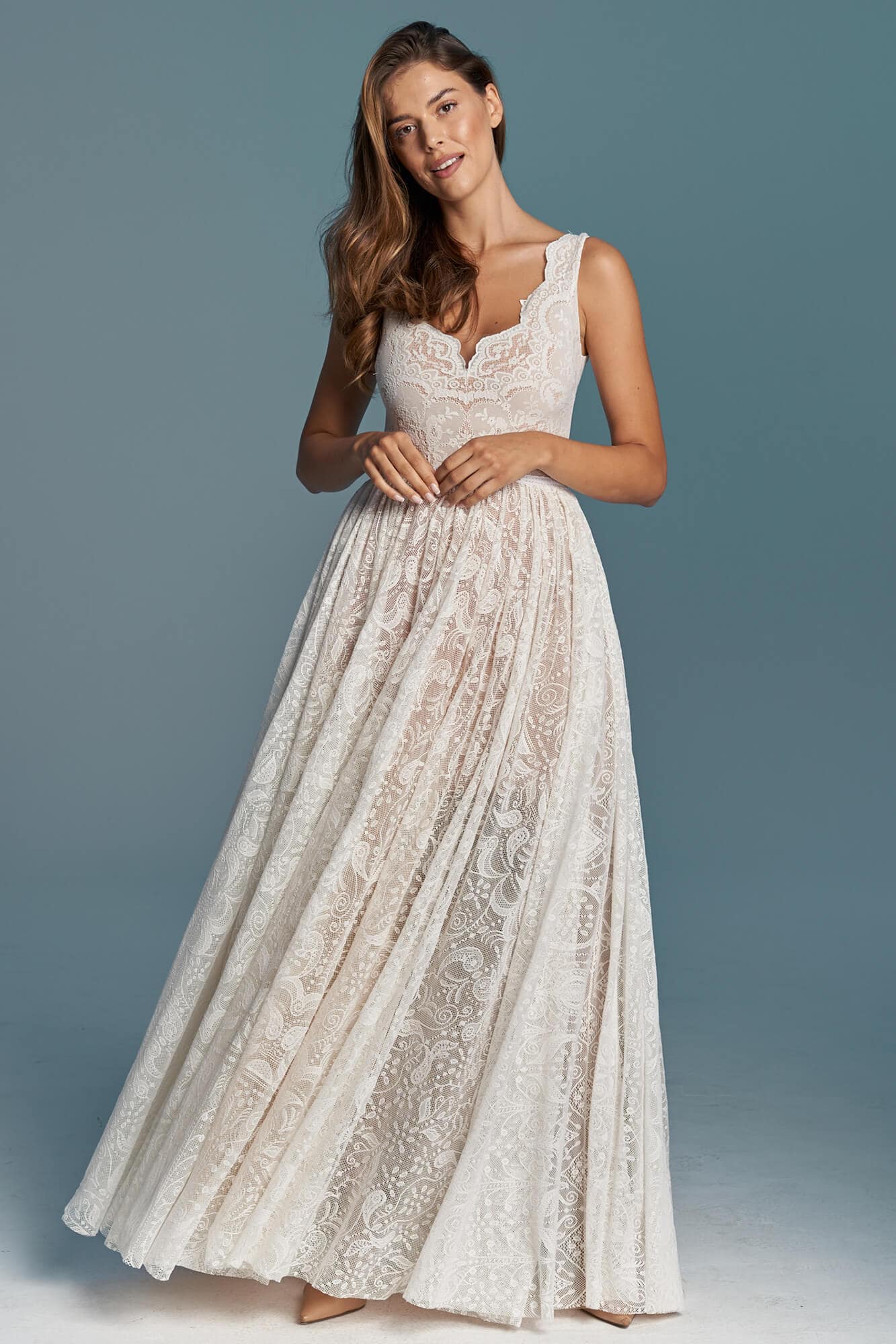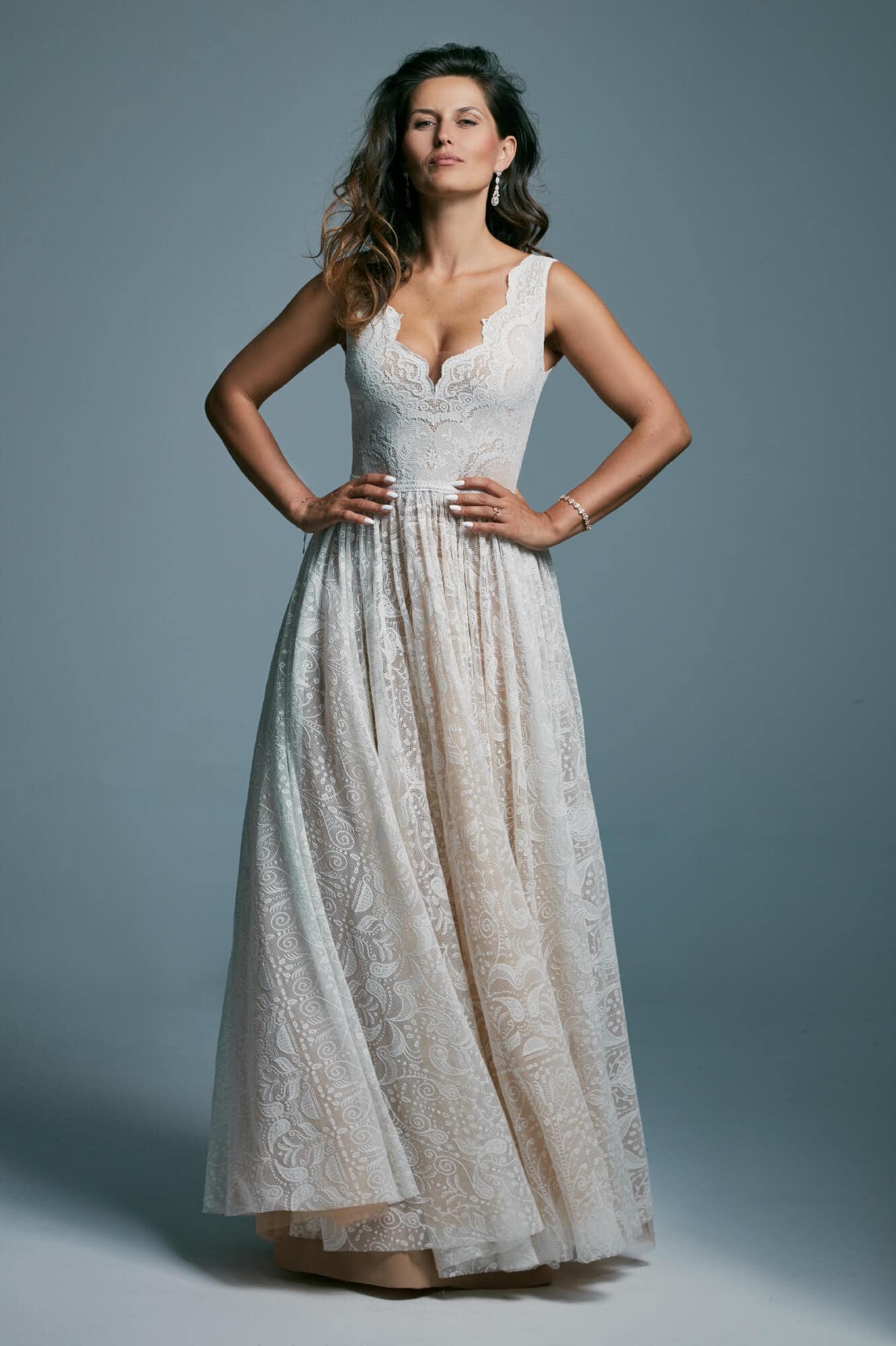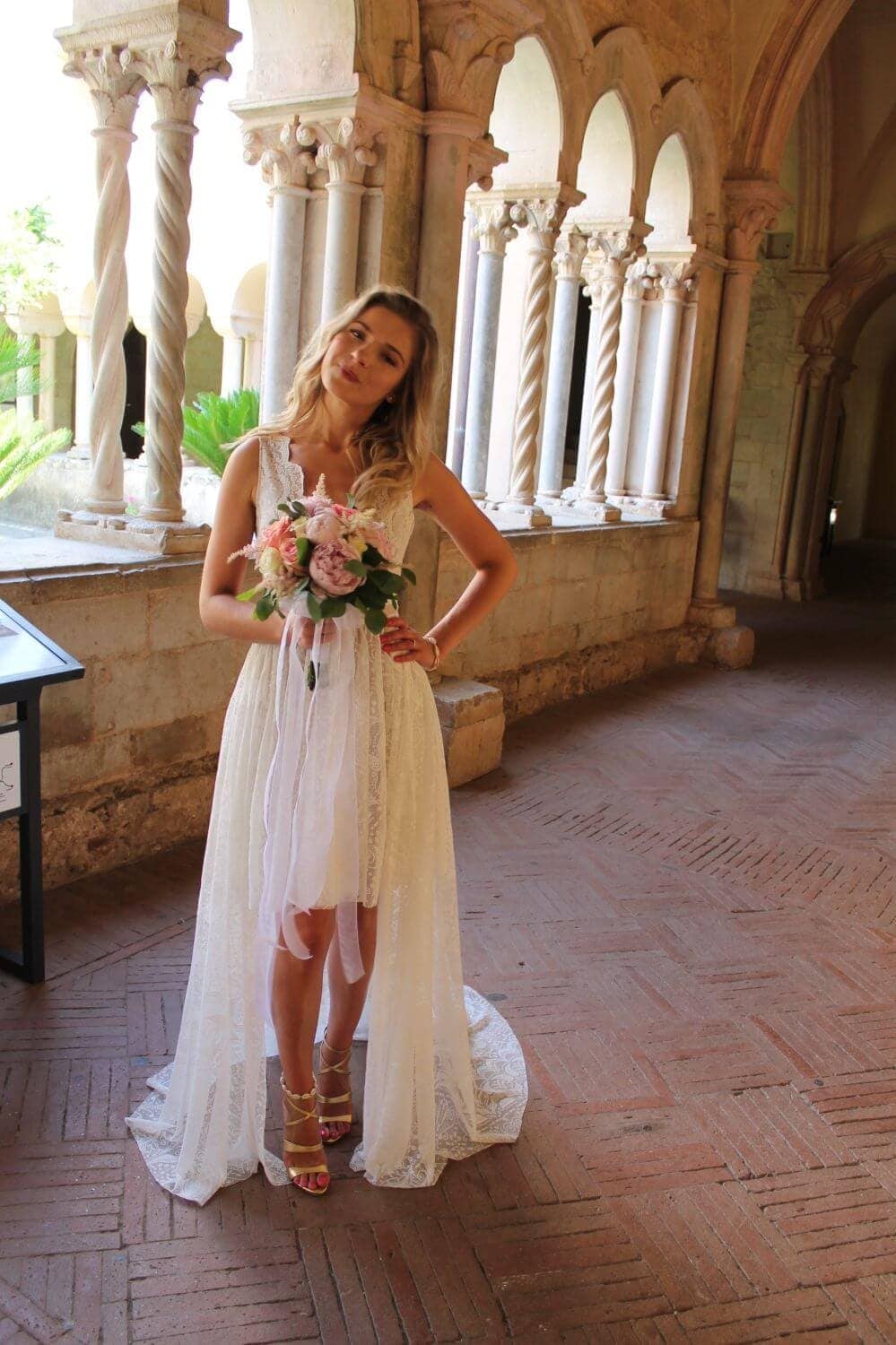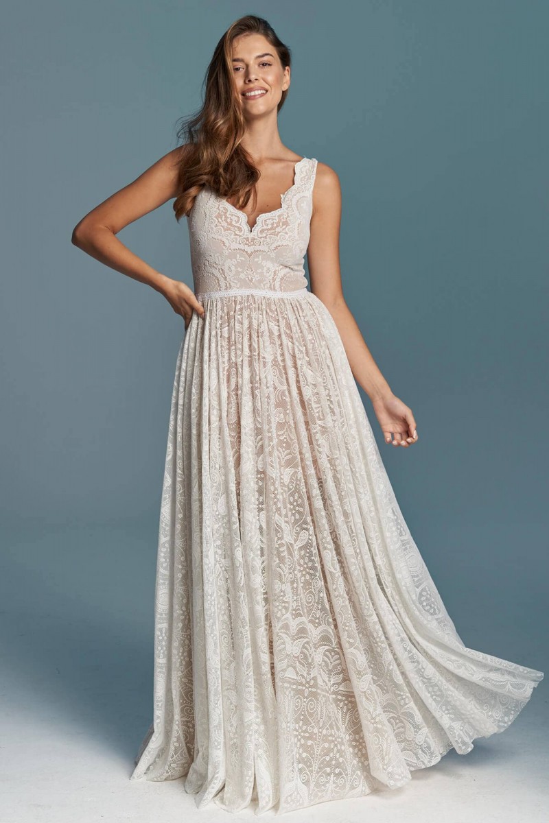 Uszyta ze sprawdzonych i przetestowanych przez nas materiałów. Używane przez nas koronki są mięciutkie, a dzięki swej lekkości cudownie układają się na sylwetce i pięknie wirują w tańcu. Ich elastyczność sprawia, że pracują z Twoim ciałem. Zapewniają komfort rosnącemu ciążowemu brzuszkowi. Praktycznie wszystkie nasze koronki są łatwe do prania w domowej pralce i niegniotące, dzięki czemu swoją suknię spokojnie możesz spakować do walizki i zabrać na romantyczną sesję poślubną.