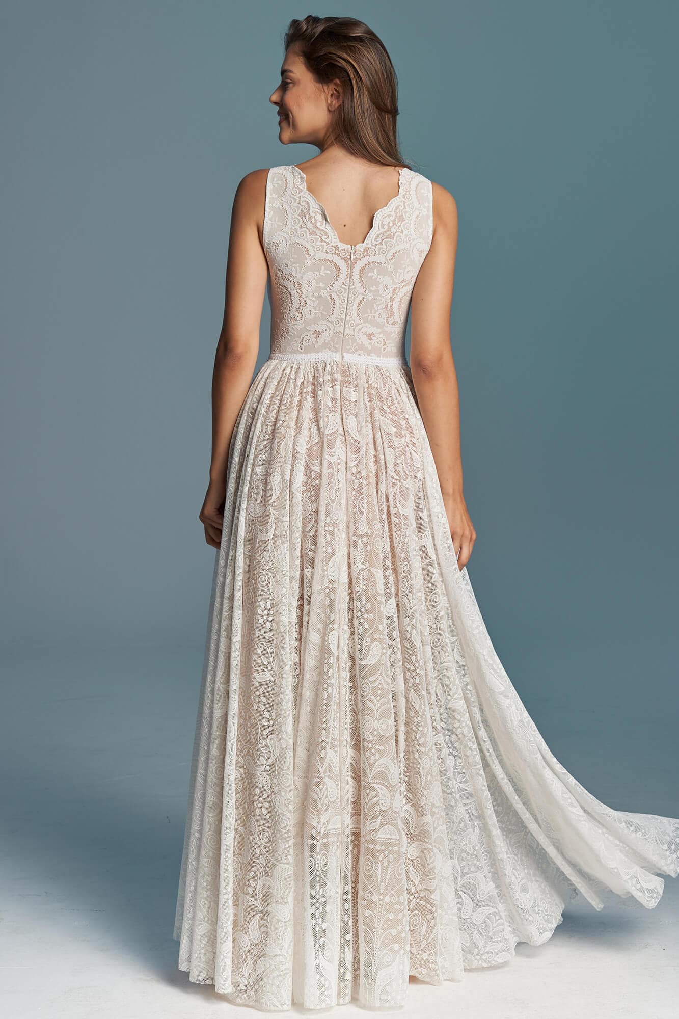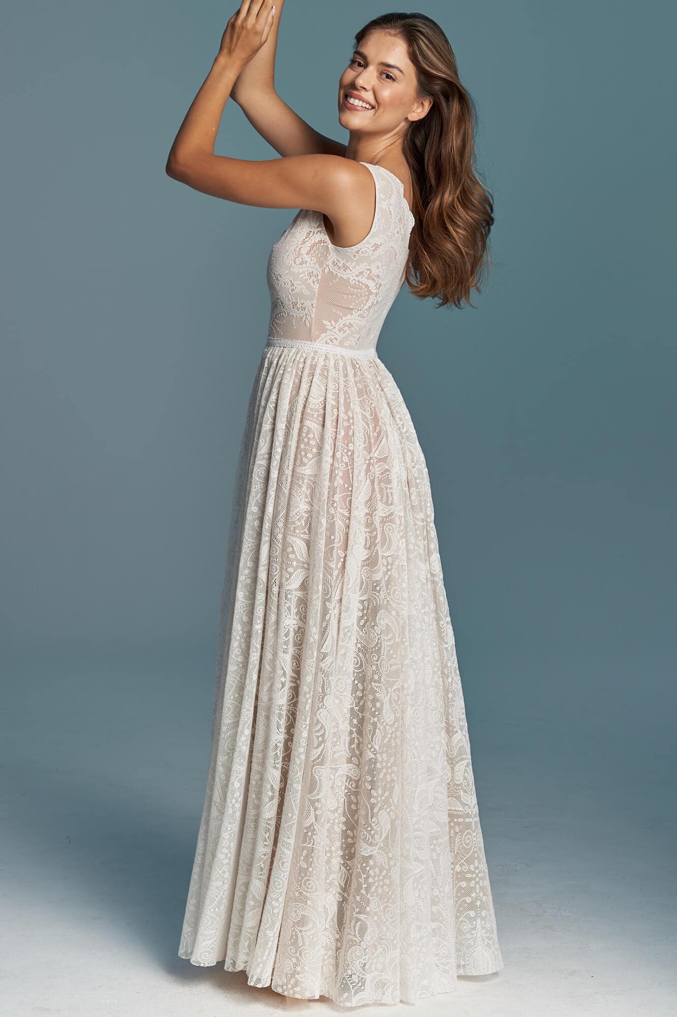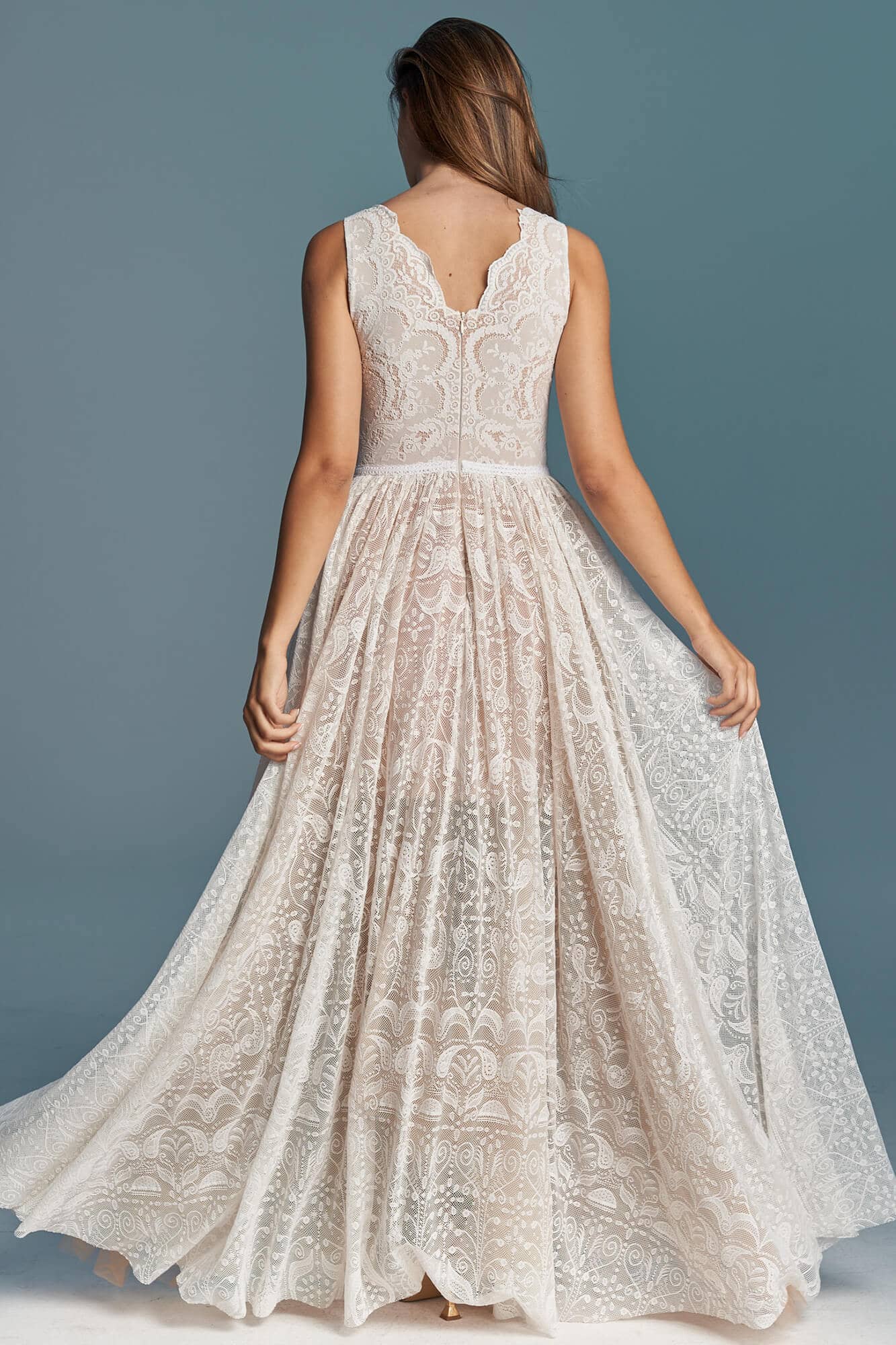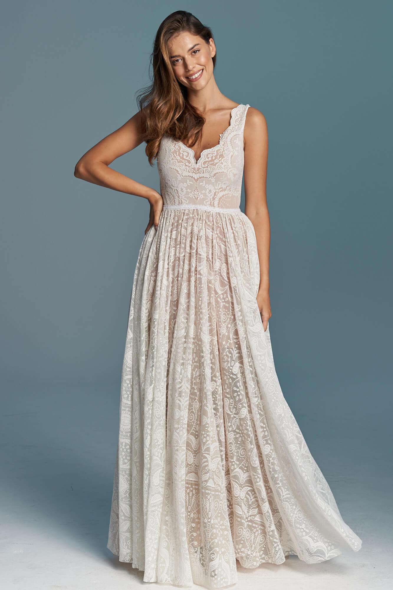 Uszyta ze sprawdzonych i przetestowanych przez nas materiałów. Używane przez nas koronki są mięciutkie, a dzięki swej lekkości cudownie układają się na sylwetce i pięknie wirują w tańcu. Ich elastyczność sprawia, że pracują z Twoim ciałem. Zapewniają komfort rosnącemu ciążowemu brzuszkowi. Praktycznie wszystkie nasze koronki są łatwe do prania w domowej pralce i niegniotące, dzięki czemu swoją suknię spokojnie możesz spakować do walizki i zabrać na romantyczną sesję poślubną.