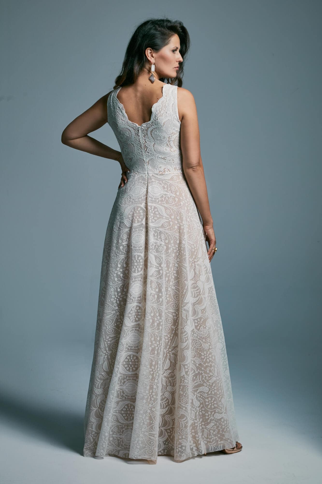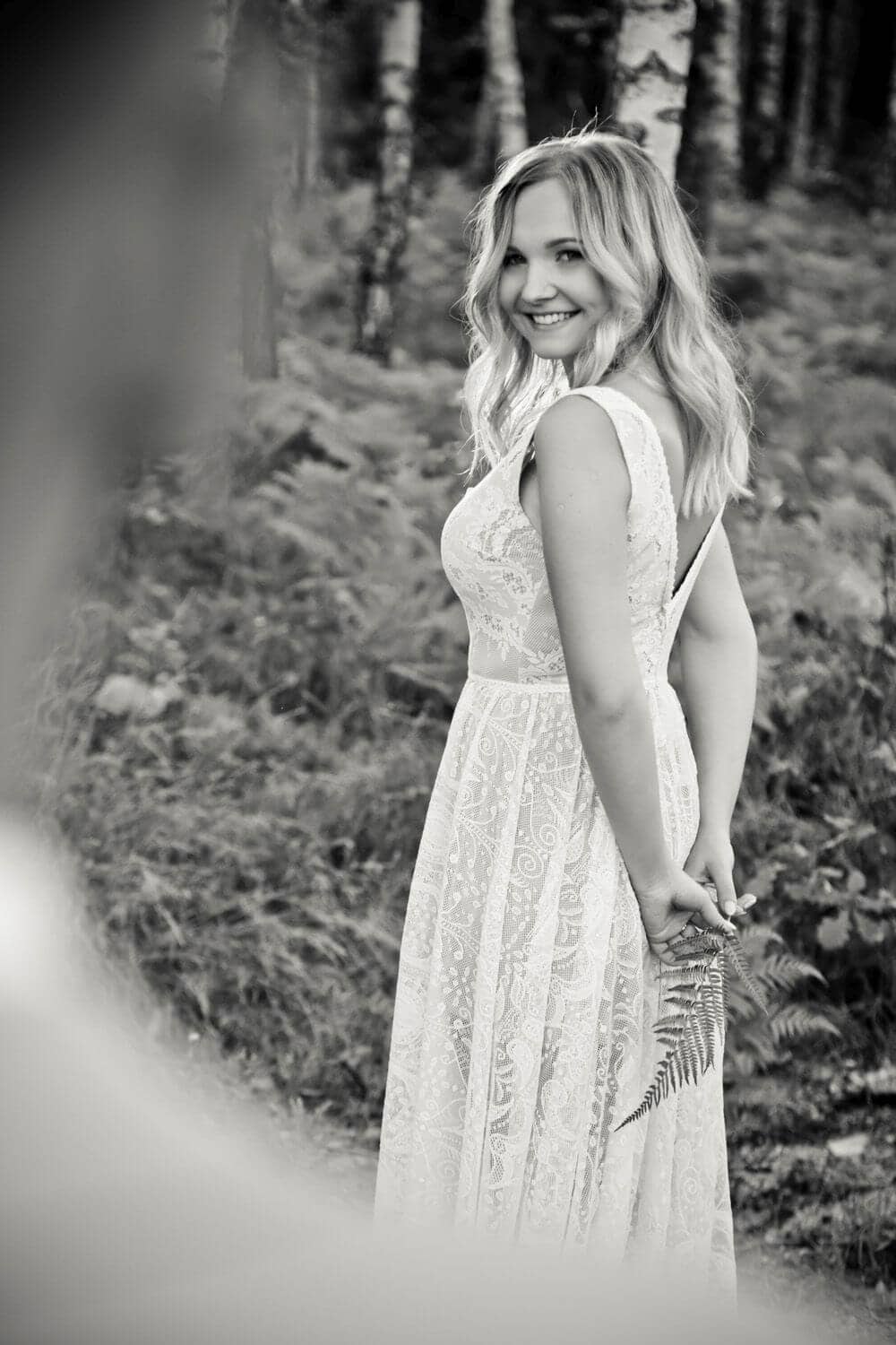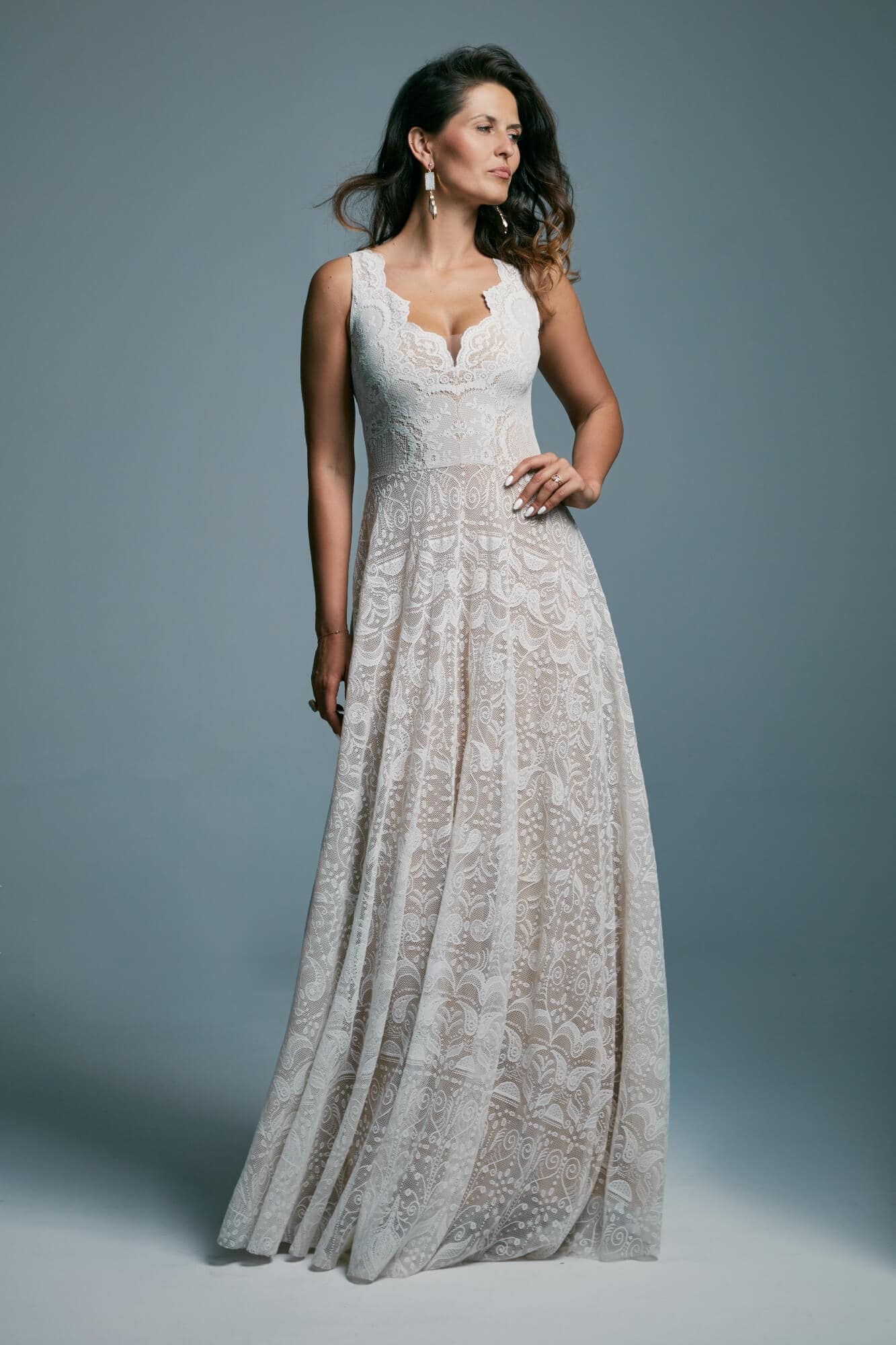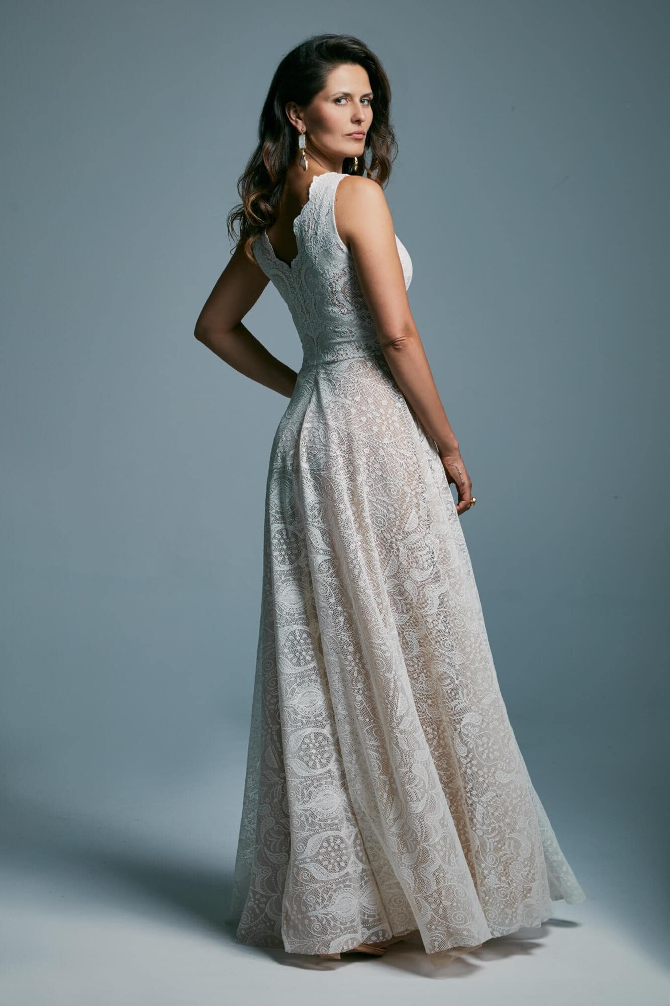 Uszyta ze sprawdzonych i przetestowanych przez nas materiałów. Używane przez nas koronki są mięciutkie, a dzięki swej lekkości cudownie układają się na sylwetce i pięknie wirują w tańcu. Ich elastyczność sprawia, że pracują z Twoim ciałem. Zapewniają komfort rosnącemu ciążowemu brzuszkowi. Praktycznie wszystkie nasze koronki są łatwe do prania w domowej pralce i niegniotące, dzięki czemu swoją suknię spokojnie możesz spakować do walizki i zabrać na romantyczną sesję poślubną.