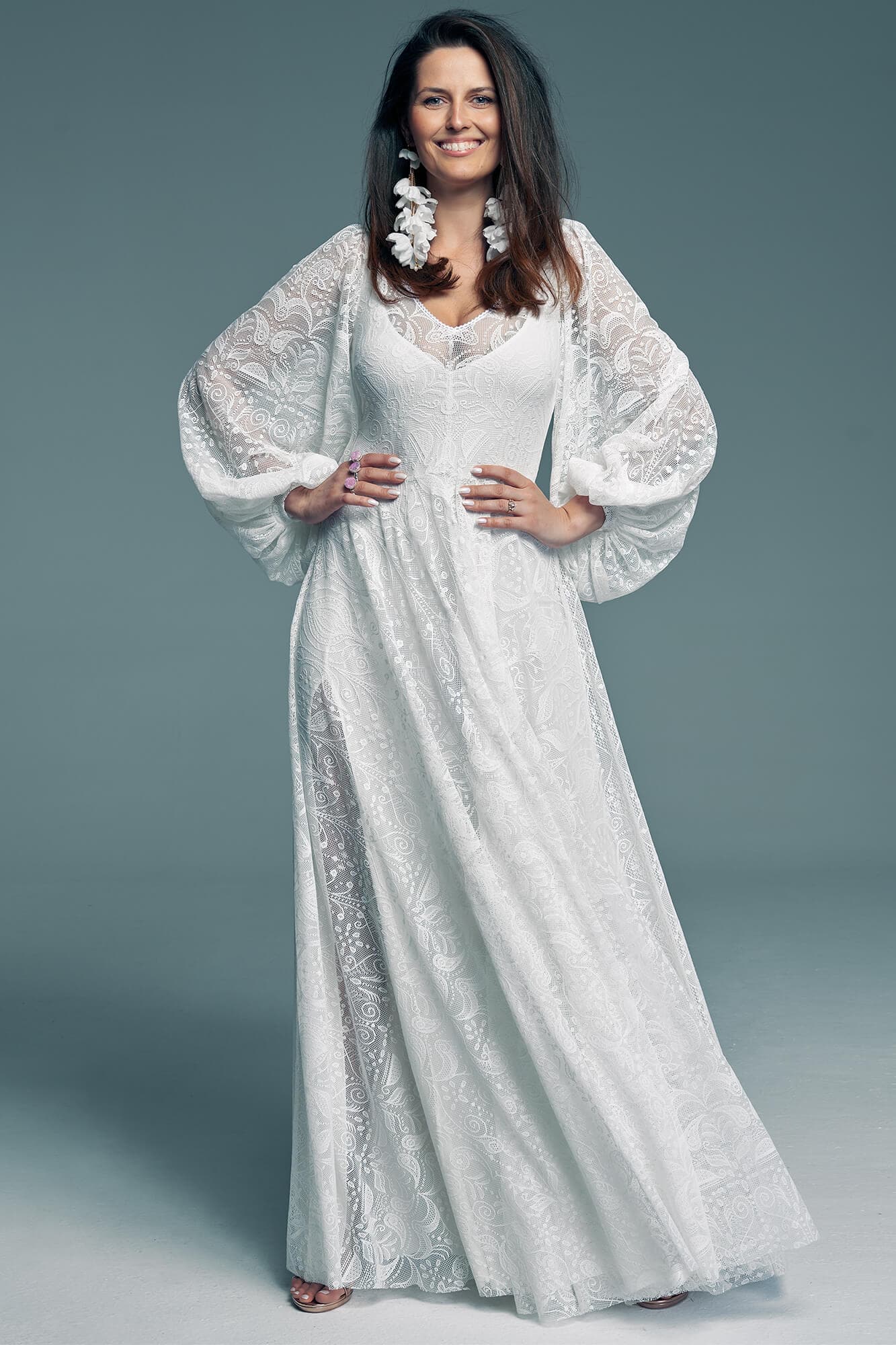 Uszyta ze sprawdzonych i przetestowanych przez nas materiałów. Używane przez nas koronki są mięciutkie, a dzięki swej lekkości cudownie układają się na sylwetce i pięknie wirują w tańcu. Ich elastyczność sprawia, że pracują z Twoim ciałem. Zapewniają komfort rosnącemu ciążowemu brzuszkowi. Praktycznie wszystkie nasze koronki są łatwe do prania w domowej pralce i niegniotące, dzięki czemu swoją suknię spokojnie możesz spakować do walizki i zabrać na romantyczną sesję poślubną.