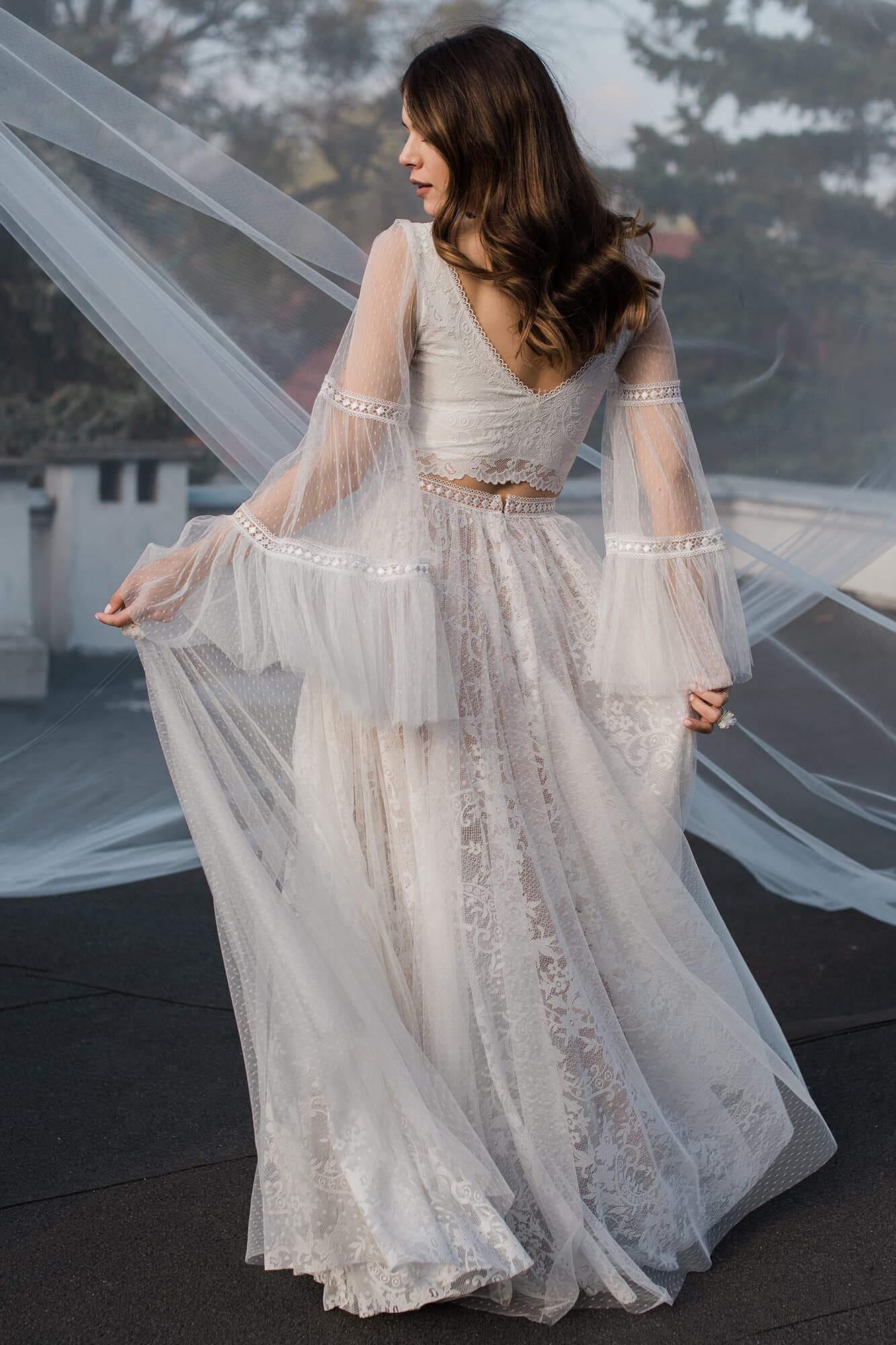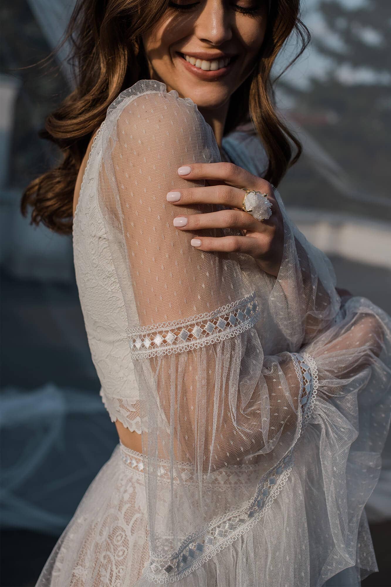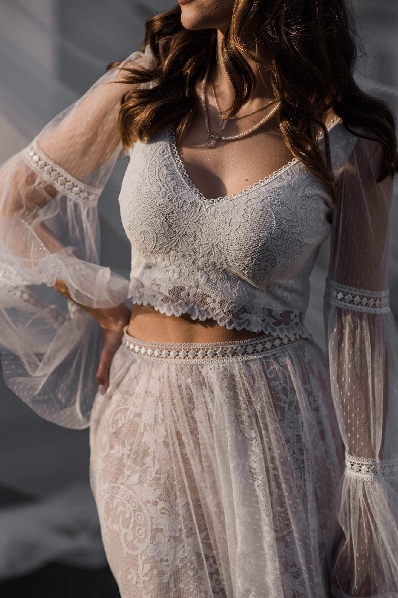 Twoja suknia zostanie uszyta z niesamowicie miękkiego, lekkiego i lejącego szyfonu, który będzie się poruszał nawet przy lekkim ruchu powietrza. Jeśli marzysz o klasycznej sukni ślubnej, ale przeraża Cię jej ciężar lub niewygodny gorset to jest to idealne rozwiązanie dla Ciebie! Ta suknia jest tak lekka, że możesz zapomnieć ją założyć! A podszewka tak elastyczna, że nie będziesz chciała jej zdjąć! Diabeł tkwi w szczegółach - zobacz subtelne wykończenia.