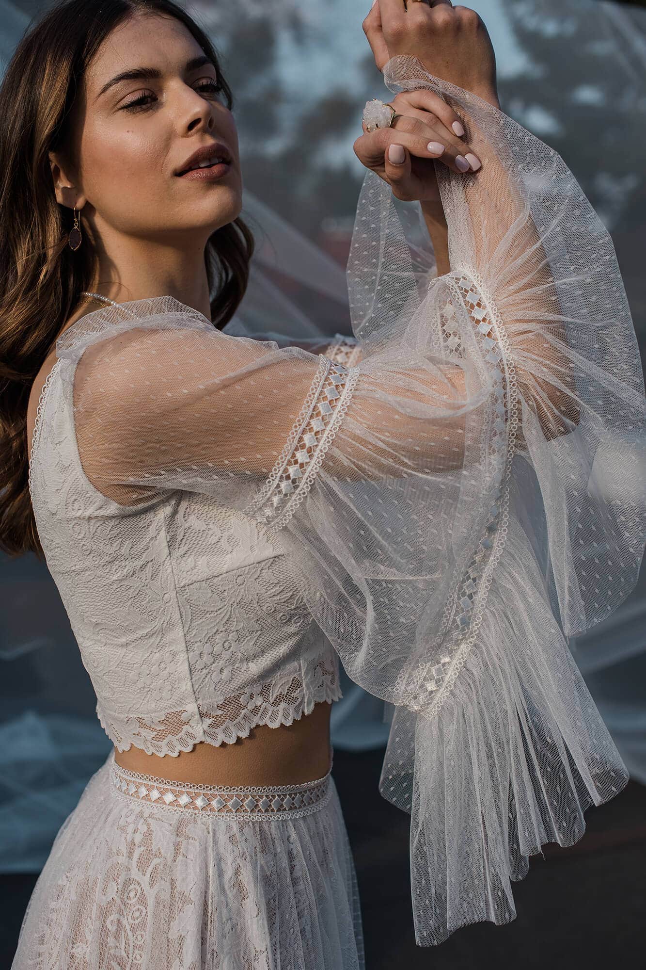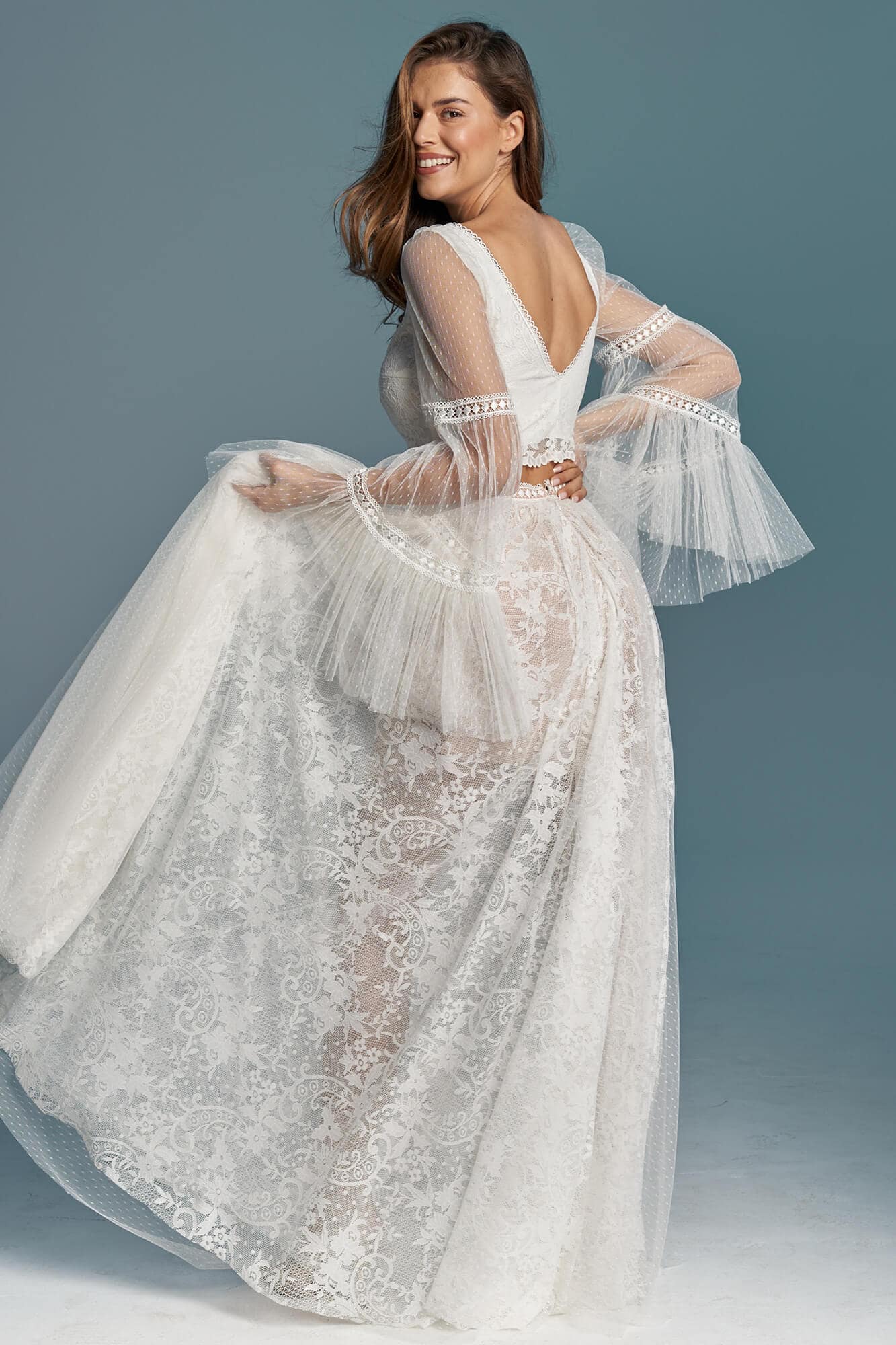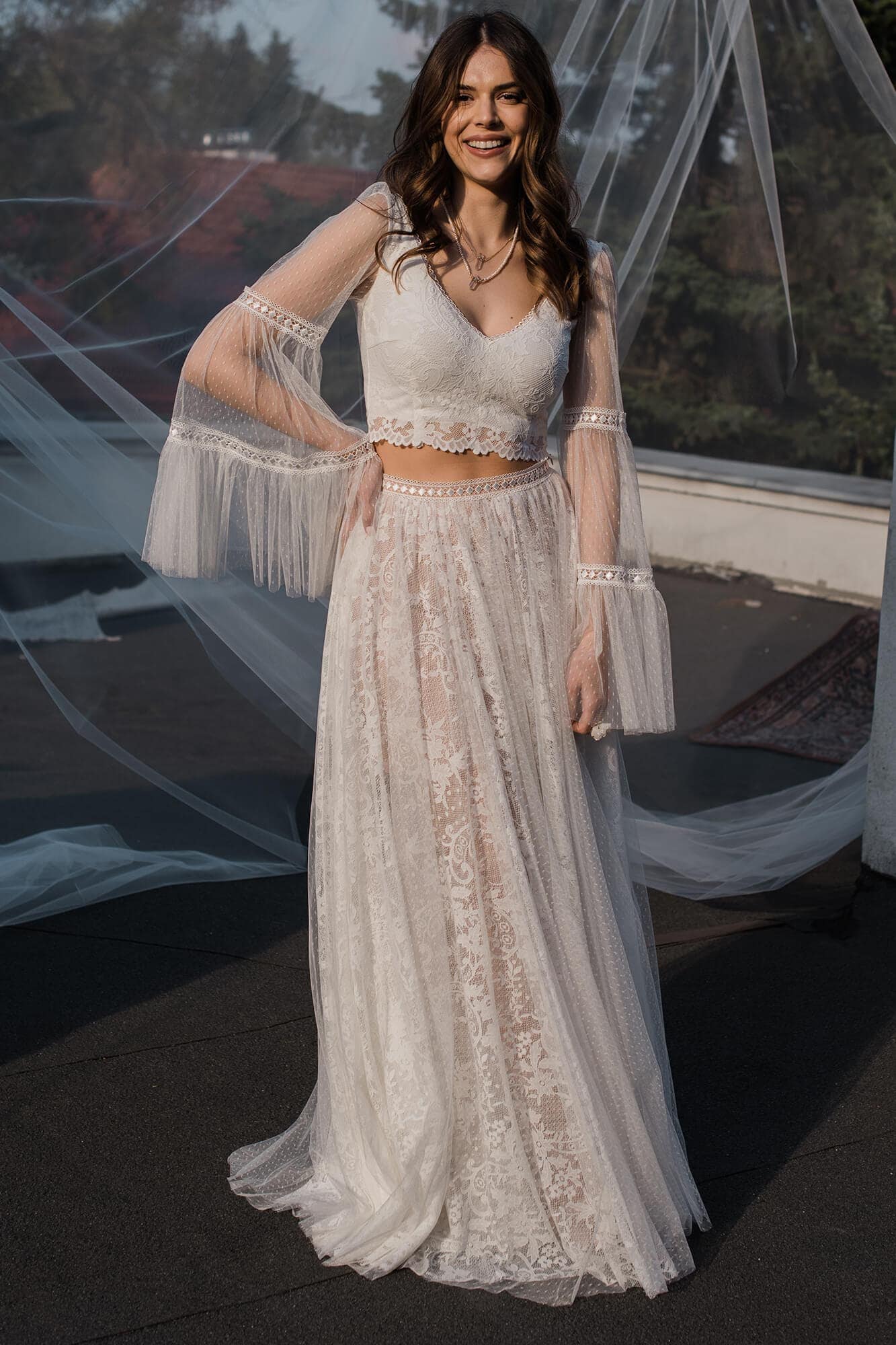 Twoja suknia zostanie uszyta z niesamowicie miękkiego, lekkiego i lejącego szyfonu, który będzie się poruszał nawet przy lekkim ruchu powietrza. Jeśli marzysz o klasycznej sukni ślubnej, ale przeraża Cię jej ciężar lub niewygodny gorset to jest to idealne rozwiązanie dla Ciebie! Ta suknia jest tak lekka, że możesz zapomnieć ją założyć! A podszewka tak elastyczna, że nie będziesz chciała jej zdjąć! Diabeł tkwi w szczegółach - zobacz subtelne wykończenia.