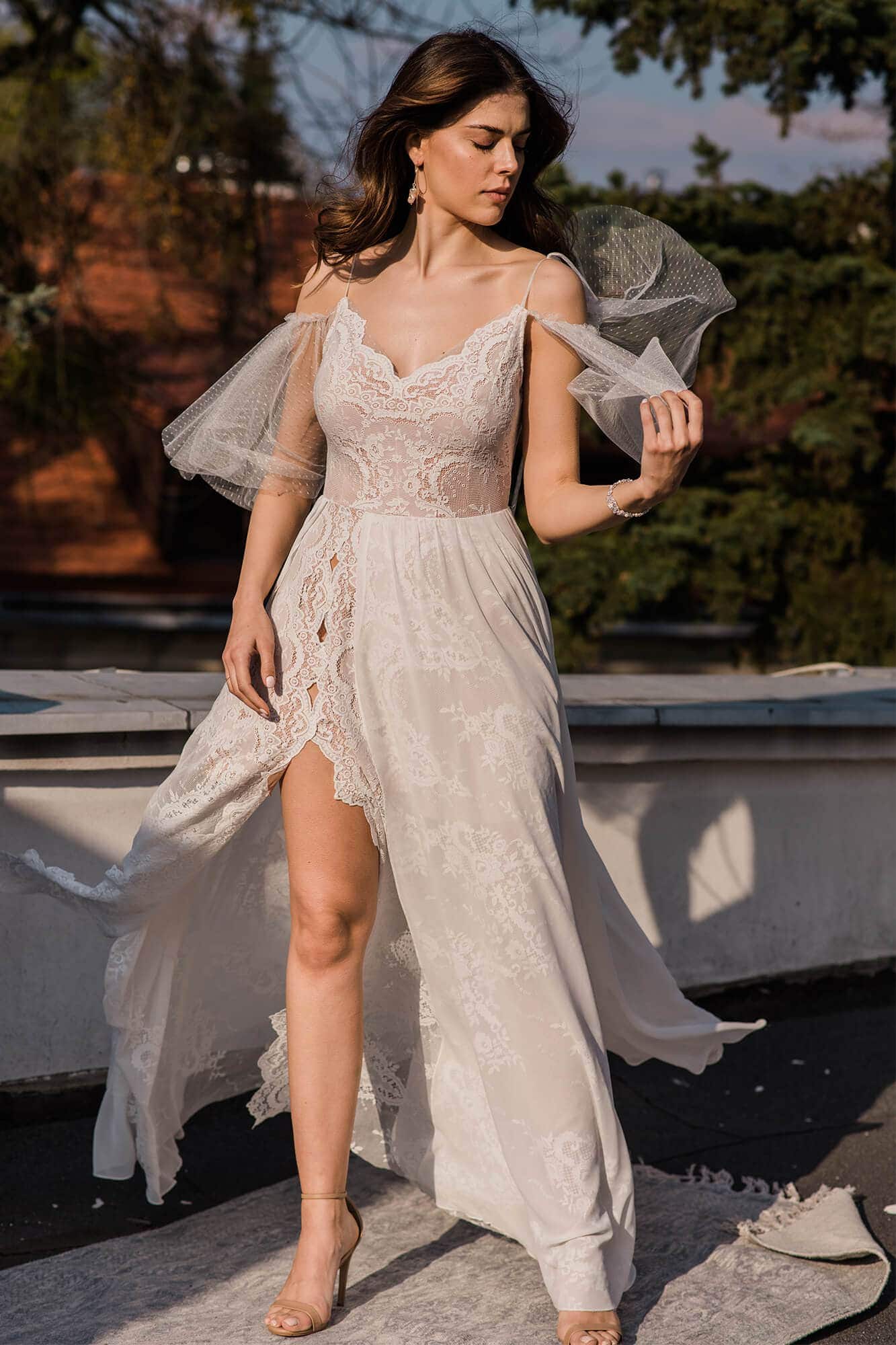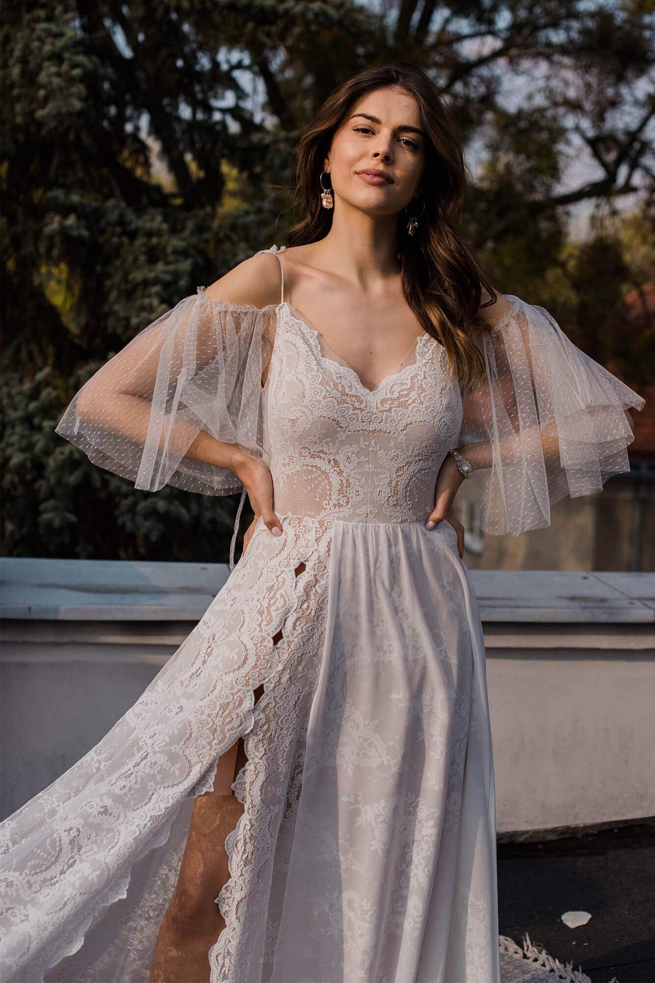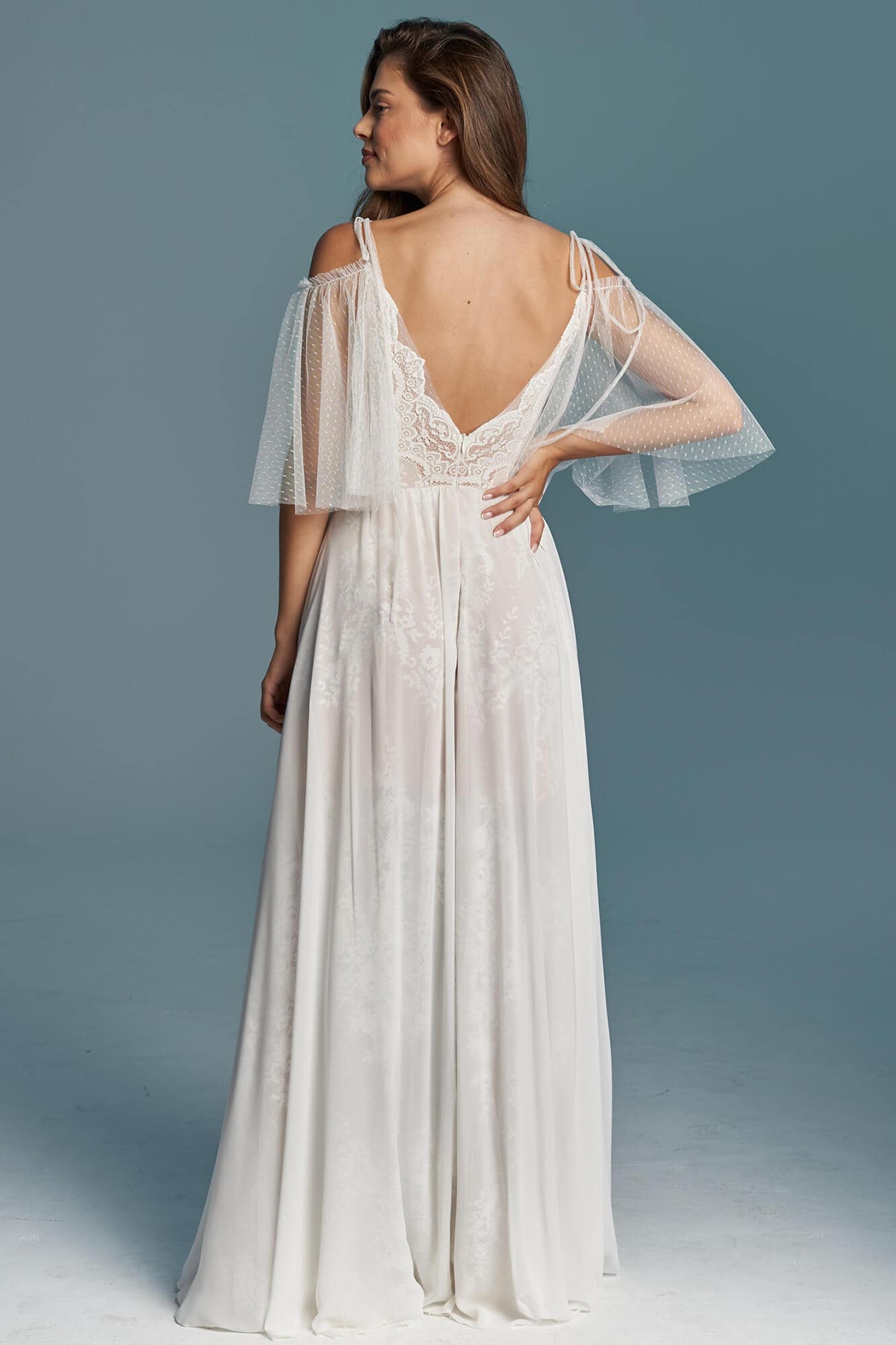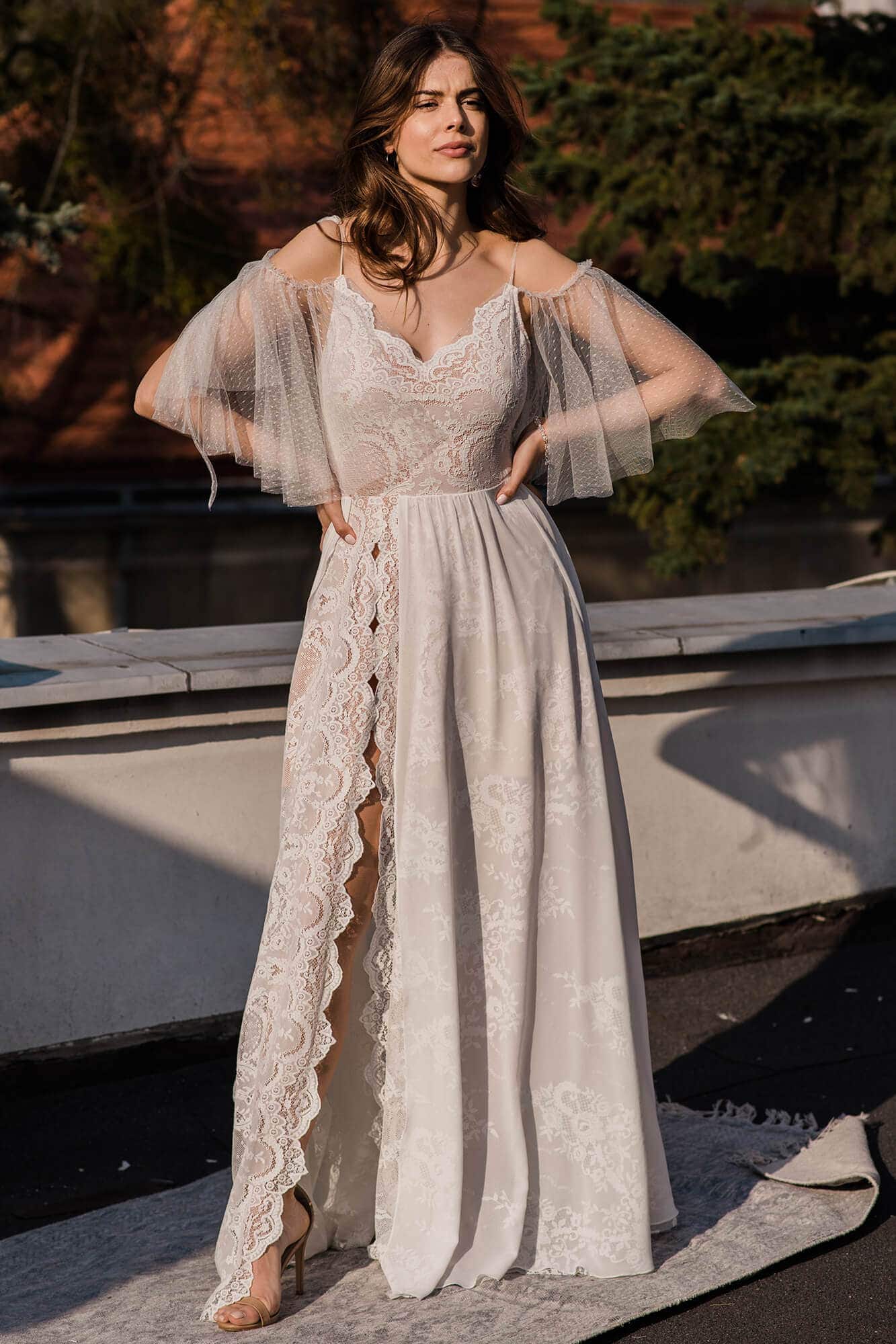 Twoja suknia zostanie uszyta z niesamowicie miękkiego, lekkiego i lejącego szyfonu, który będzie się poruszał nawet przy lekkim ruchu powietrza. Jeśli marzysz o klasycznej sukni ślubnej, ale przeraża Cię jej ciężar lub niewygodny gorset to jest to idealne rozwiązanie dla Ciebie! Ta suknia jest tak lekka, że możesz zapomnieć ją założyć! A podszewka tak elastyczna, że nie będziesz chciała jej zdjąć! Diabeł tkwi w szczegółach - zobacz subtelne wykończenia.