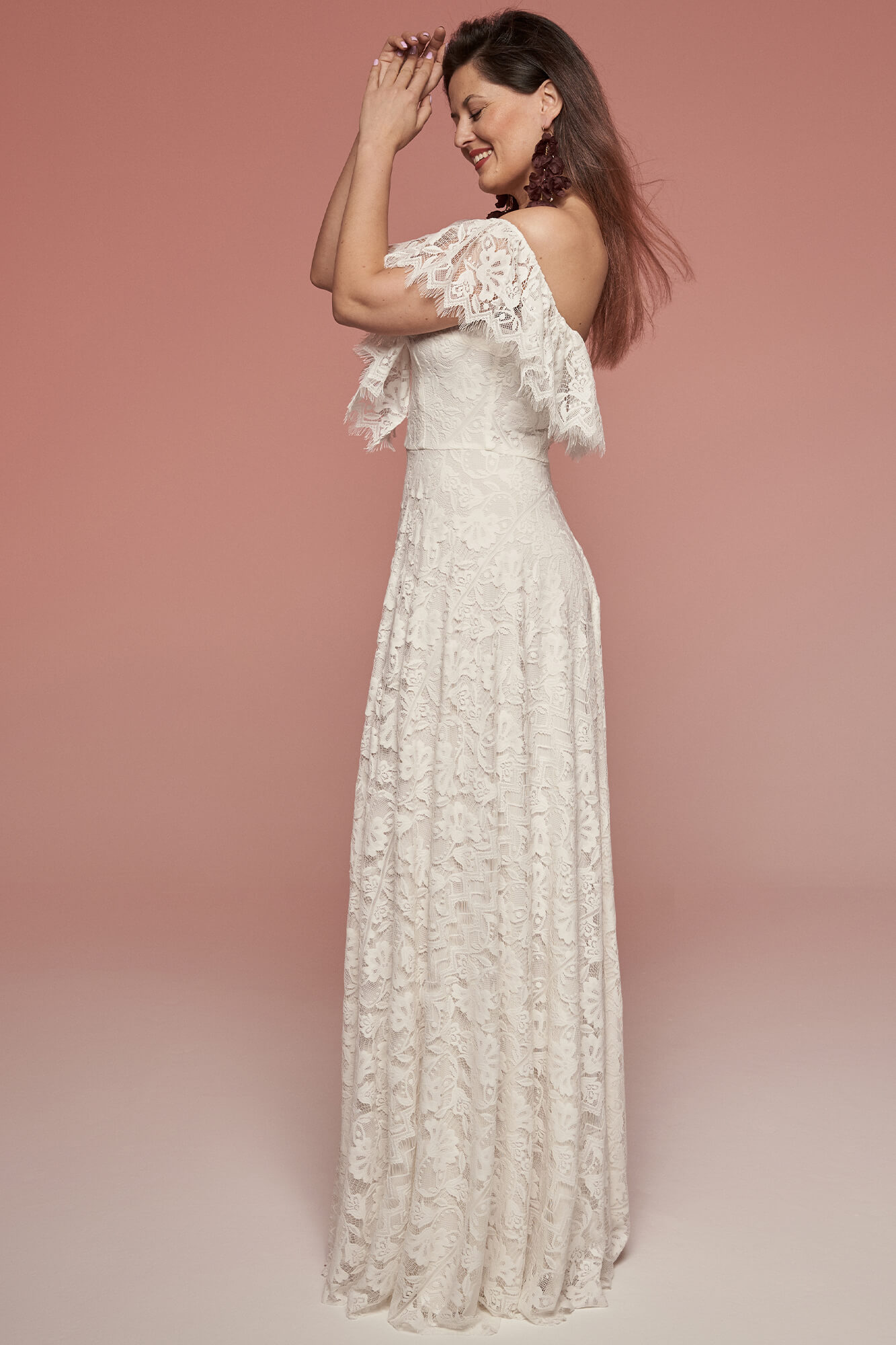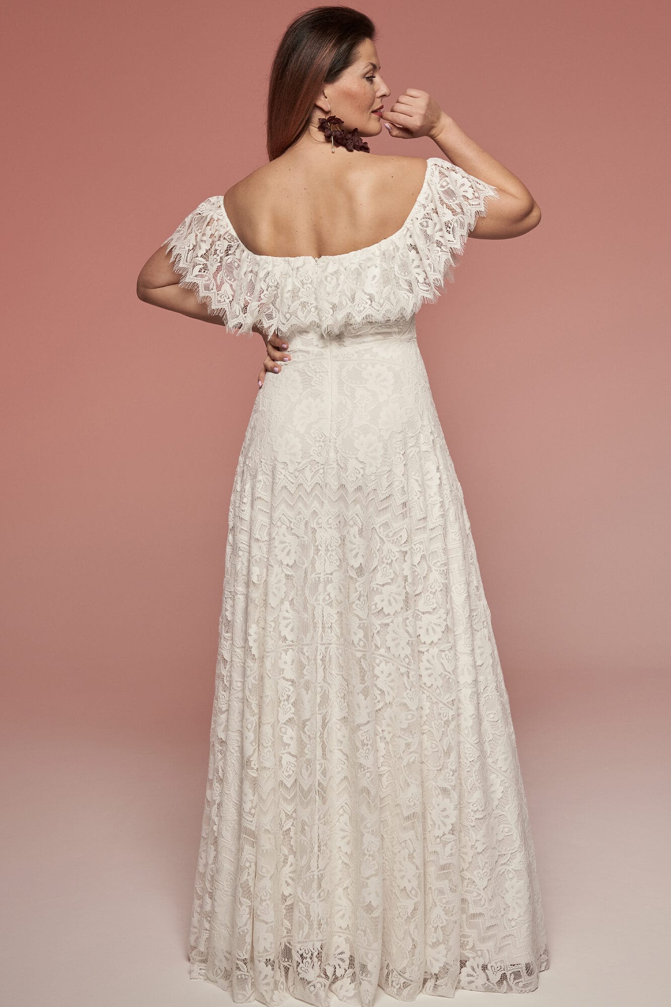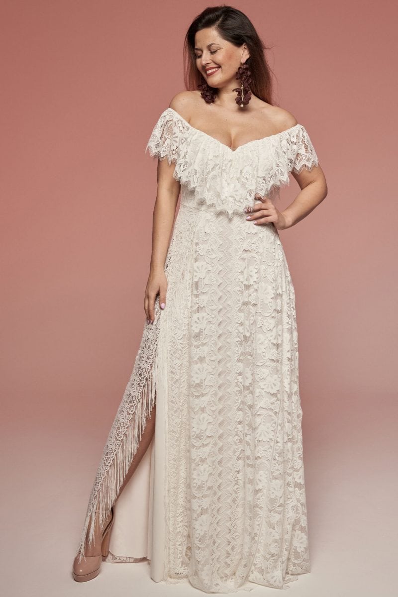Uszyta ze sprawdzonych i przetestowanych przez nas materiałów. Używane przez nas koronki są mięciutkie, a dzięki swej lekkości cudownie układają się na sylwetce i pięknie wirują w tańcu. Ich elastyczność sprawia, że pracują z Twoim ciałem. Zapewniają komfort rosnącemu ciążowemu brzuszkowi. Praktycznie wszystkie nasze koronki są łatwe do prania w domowej pralce i niegniotące, dzięki czemu swoją suknię spokojnie możesz spakować do walizki i zabrać na romantyczną sesję poślubną.