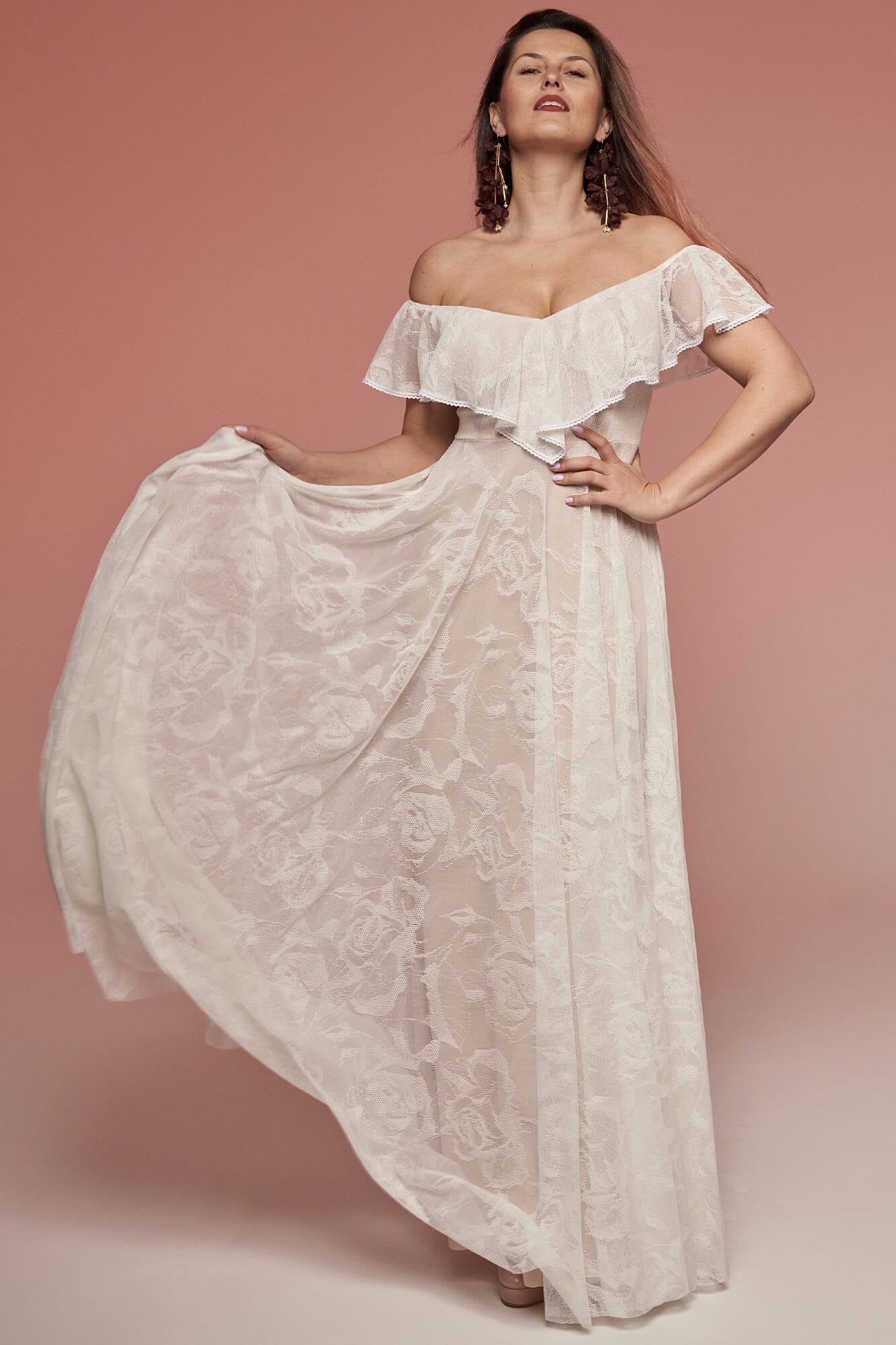 Uszyta ze sprawdzonych i przetestowanych przez nas materiałów. Używane przez nas koronki są mięciutkie, a dzięki swej lekkości cudownie układają się na sylwetce i pięknie wirują w tańcu. Ich elastyczność sprawia, że pracują z Twoim ciałem. Zapewniają komfort rosnącemu ciążowemu brzuszkowi. Praktycznie wszystkie nasze koronki są łatwe do prania w domowej pralce i niegniotące, dzięki czemu swoją suknię spokojnie możesz spakować do walizki i zabrać na romantyczną sesję poślubną.
