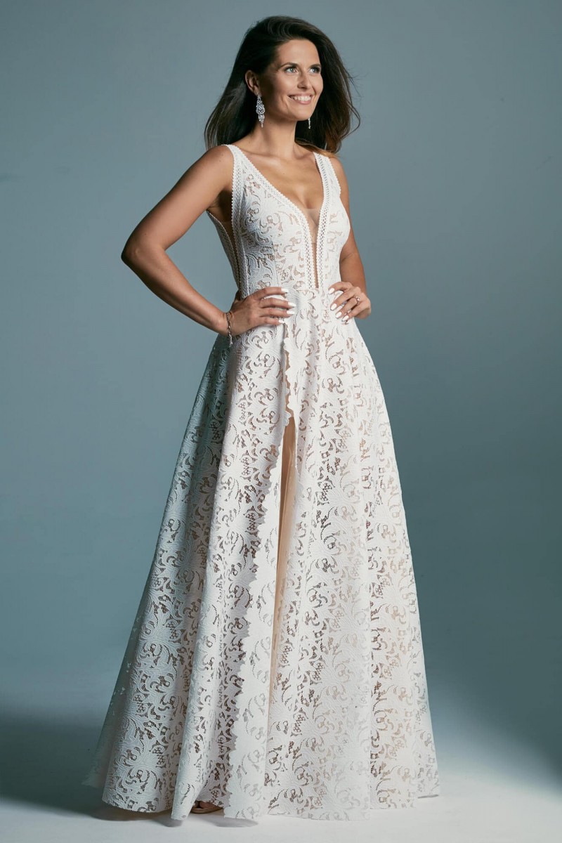 Uszyta ze sprawdzonych i przetestowanych przez nas materiałów. Używane przez nas koronki są mięciutkie, a dzięki swej lekkości cudownie układają się na sylwetce i pięknie wirują w tańcu. Ich elastyczność sprawia, że pracują z Twoim ciałem. Zapewniają komfort rosnącemu ciążowemu brzuszkowi. Praktycznie wszystkie nasze koronki są łatwe do prania w domowej pralce i niegniotące, dzięki czemu swoją suknię spokojnie możesz spakować do walizki i zabrać na romantyczną sesję poślubną.