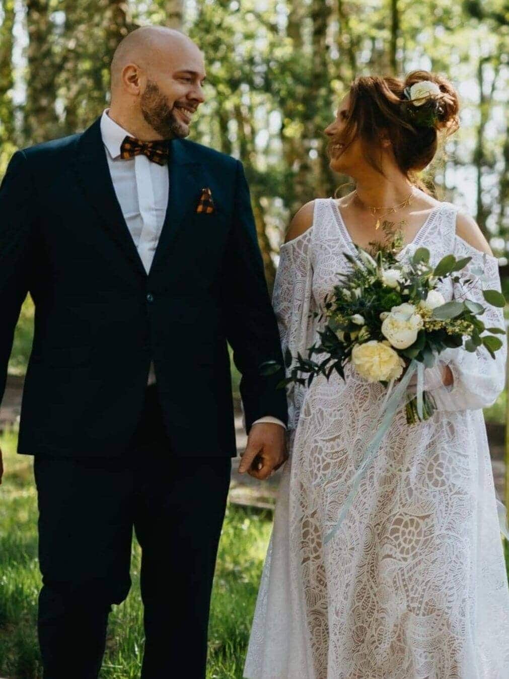 NataliaZ Projektantką, Martą Trojanowską spotkałam się w jej pracowni 12/4/2018, punkt 9:30! (Towarzyszyła mi moja świadkowa?) Marta, jak obiecała, tak uczyniła; suknia była gotowa tego samego dnia❤ ale od początku…zanim trafiłam do Suknie Boho, miałam epizod przymiarek w salonach. Kompletnie nie odnajdywałam się w ciężarze gatunkowym typowych, ślubnych sukni, choć pięknych dla oka, to nie z mojej bajki. Po założeniu jednej z nich, jedyne o czym marzyłam, to aby ją jak najszybciej zdjąć! Może dlatego zakup i decyzja o sukni nie sprawiała mi typowej dla Panny Młodej frajdy, do czasu…szukałam w internecie pod hasłami suknie rustykalne, SUKNIE BOHO i…bingo! Wchodzę; inny świat, ale moja bajka, lekkość, jakość, zmysłowość koronek! Baluckiego 20, to nie tylko adres pracowni, to miejsce z duszą i swoją historią, jaką?- zapytajcie! Na miejscu, czekają na Was różne modele sukni, prezentowanych na stronie, dodatkowo buciki oraz para wianków, biżuteria do przymiarki. (Jeżeli nie wiecie, co Wam pasuje, w czym się widzicie, możecie liczyć na kompleksową opiekę i doradztwo). Daję 5| za indywidualne podejście do klientki, za opiekę projektantki, jaką zostałam otoczona i poczucie wyjątkowości, z jakim wyszłam trzymając MOJĄ suknię. Kolejne| daję za jakość wykonania i materiałów, terminowość wykonania, szybki i fajny kontakt! Oczekiwałam minimalizmu, klasy i lekkości, ale nie wiedziałam, jak ugryźć temat, wyszłam nie tylko z suknią, ale i z sugestiami co do butów, uczesania i ozdób – kolejna|. Następna | za danie drugiego życia vintage sweterkowi w tempie ekspresowym, który założę, do kościoła; znacie tę tradycję, coś starego musi być? Mega| za możliwość zabrania niemowlaka? jestem młodą, karmiącą mamą. I na koniec, zastanawiacie się, czy Was stać? Marta znała mój budżet i spokojnie zmieściłam się z zapasem. Ale uwierzcie; taki dzień z full serwis wsparciem i doradztwem, z mojej perspektywy jest wart każdej ceny. Jeszcze raz dziękuję całemu zespołowi z Martą na czele, polecam z serca, a za mnie trzymajcie kciuki 17/5?!