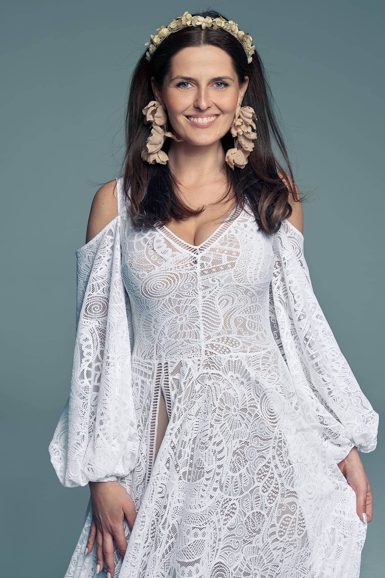 Uszyta ze sprawdzonych i przetestowanych przez nas materiałów. Używane przez nas koronki są mięciutkie, a dzięki swej lekkości cudownie układają się na sylwetce i pięknie wirują w tańcu. Ich elastyczność sprawia, że pracują z Twoim ciałem. Zapewniają komfort rosnącemu ciążowemu brzuszkowi. Praktycznie wszystkie nasze koronki są łatwe do prania w domowej pralce i niegniotące, dzięki czemu swoją suknię spokojnie możesz spakować do walizki i zabrać na romantyczną sesję poślubną.
