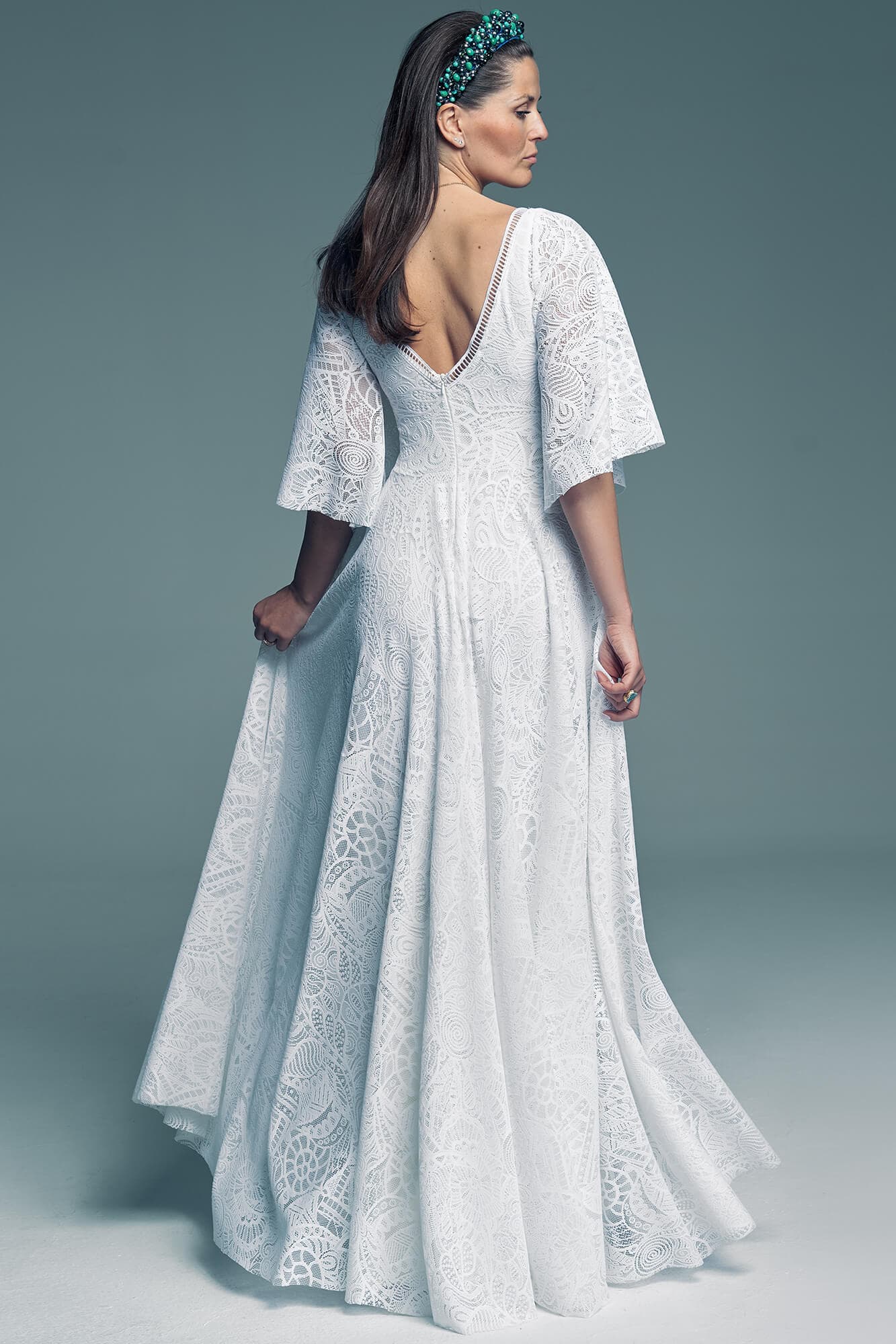 Uszyta ze sprawdzonych i przetestowanych przez nas materiałów. Używane przez nas koronki są mięciutkie, a dzięki swej lekkości cudownie układają się na sylwetce i pięknie wirują w tańcu. Ich elastyczność sprawia, że pracują z Twoim ciałem. Zapewniają komfort rosnącemu ciążowemu brzuszkowi. Praktycznie wszystkie nasze koronki są łatwe do prania w domowej pralce i niegniotące, dzięki czemu swoją suknię spokojnie możesz spakować do walizki i zabrać na romantyczną sesję poślubną.