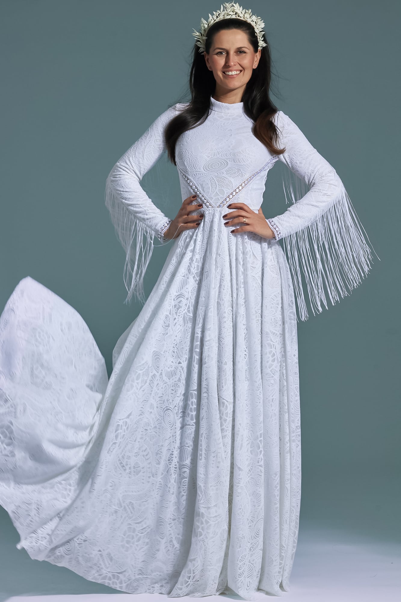 Uszyta ze sprawdzonych i przetestowanych przez nas materiałów. Używane przez nas koronki są mięciutkie, a dzięki swej lekkości cudownie układają się na sylwetce i pięknie wirują w tańcu. Ich elastyczność sprawia, że pracują z Twoim ciałem. Zapewniają komfort rosnącemu ciążowemu brzuszkowi. Praktycznie wszystkie nasze koronki są łatwe do prania w domowej pralce i niegniotące, dzięki czemu swoją suknię spokojnie możesz spakować do walizki i zabrać na romantyczną sesję poślubną.