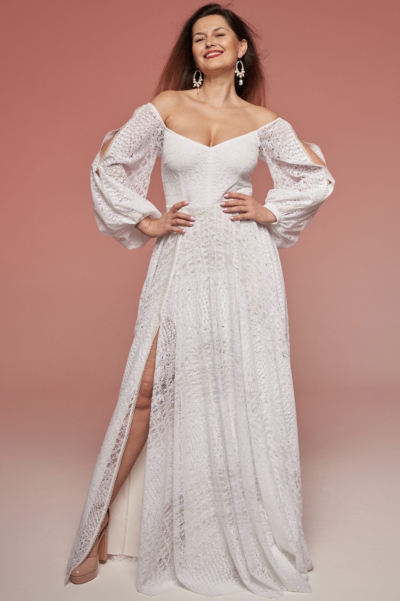 Twoją wymarzoną suknię uszyjemy w jeden dzień – rano mierzymy i dobieramy fason, kolor i wykończenia, po południu masz krótką przymiarkę techniczną (łączymy na Tobie elementy), a na koniec skracamy suknię i odbierasz gotową kreację tego samego dnia! Dla nas każda sylwetka jest „łatwa” – czy jesteś wysoka, czy niska, drobna czy masz pełne kształty, masz obfity biust czy ledwie widoczny, asymetrię ciała czy niepełnosprawności – uszyjemy suknię na Twoją figurę i na Twoją miarę!