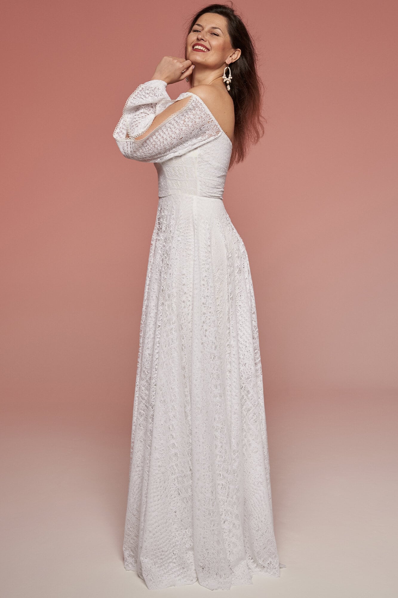 Uszyta ze sprawdzonych i przetestowanych przez nas materiałów. Używane przez nas koronki są mięciutkie, a dzięki swej lekkości cudownie układają się na sylwetce i pięknie wirują w tańcu. Ich elastyczność sprawia, że pracują z Twoim ciałem. Zapewniają komfort rosnącemu ciążowemu brzuszkowi. Praktycznie wszystkie nasze koronki są łatwe do prania w domowej pralce i niegniotące, dzięki czemu swoją suknię spokojnie możesz spakować do walizki i zabrać na romantyczną sesję poślubną.