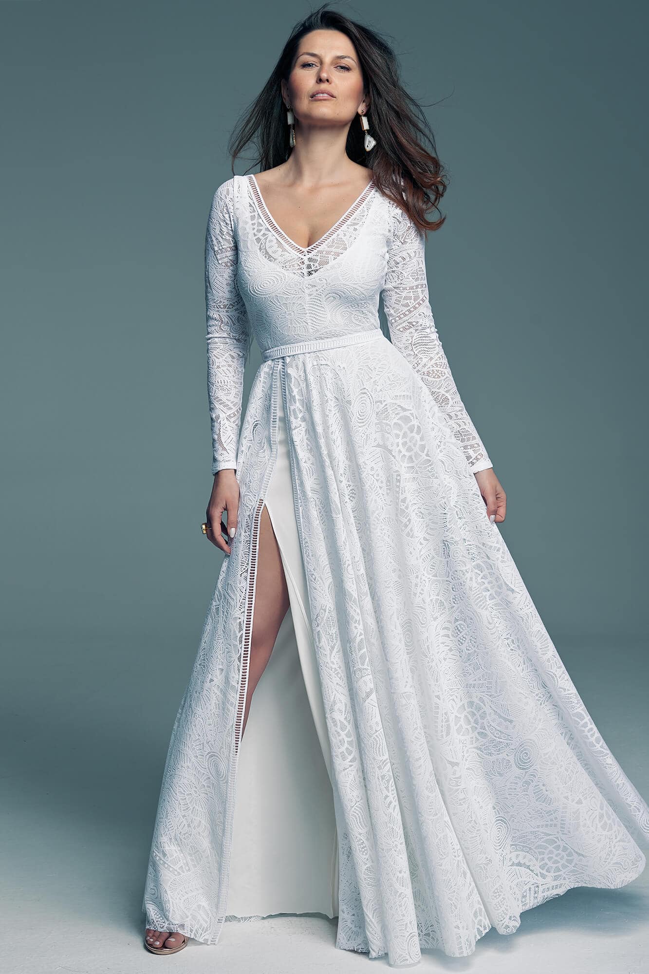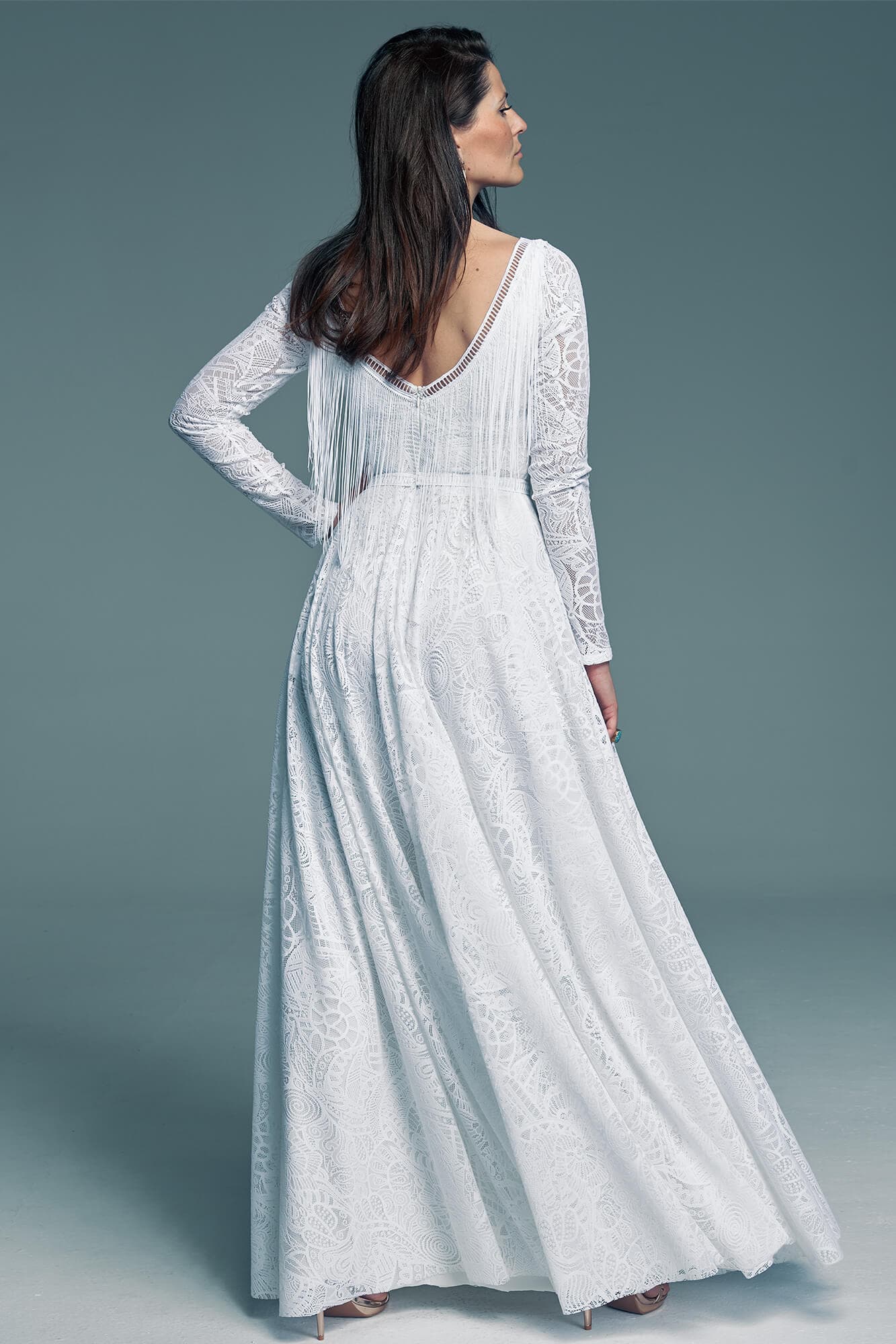 Uszyta ze sprawdzonych i przetestowanych przez nas materiałów. Używane przez nas koronki są mięciutkie, a dzięki swej lekkości cudownie układają się na sylwetce i pięknie wirują w tańcu. Ich elastyczność sprawia, że pracują z Twoim ciałem. Zapewniają komfort rosnącemu ciążowemu brzuszkowi. Praktycznie wszystkie nasze koronki są łatwe do prania w domowej pralce i niegniotące, dzięki czemu swoją suknię spokojnie możesz spakować do walizki i zabrać na romantyczną sesję poślubną.