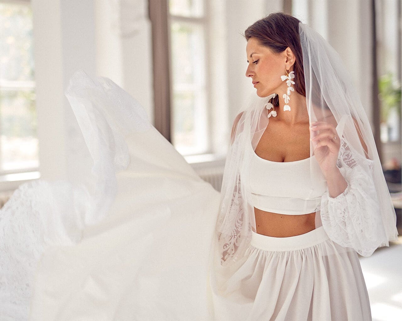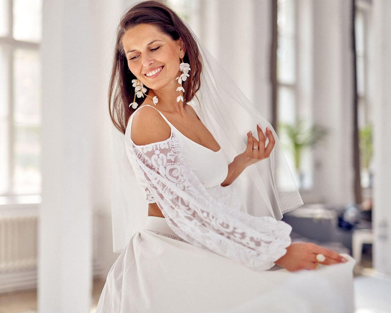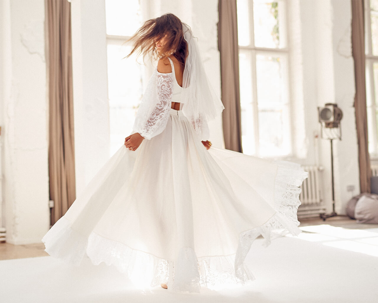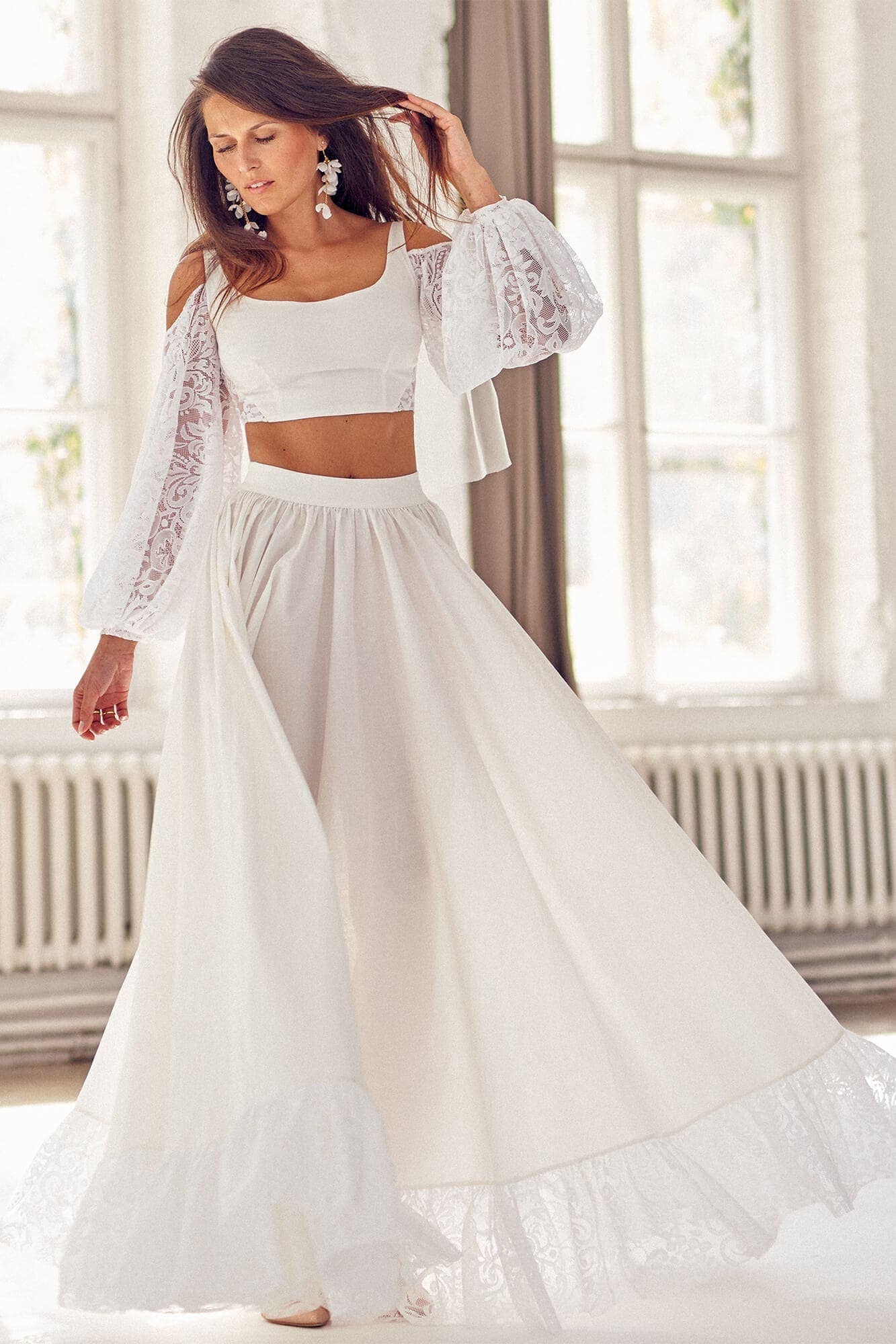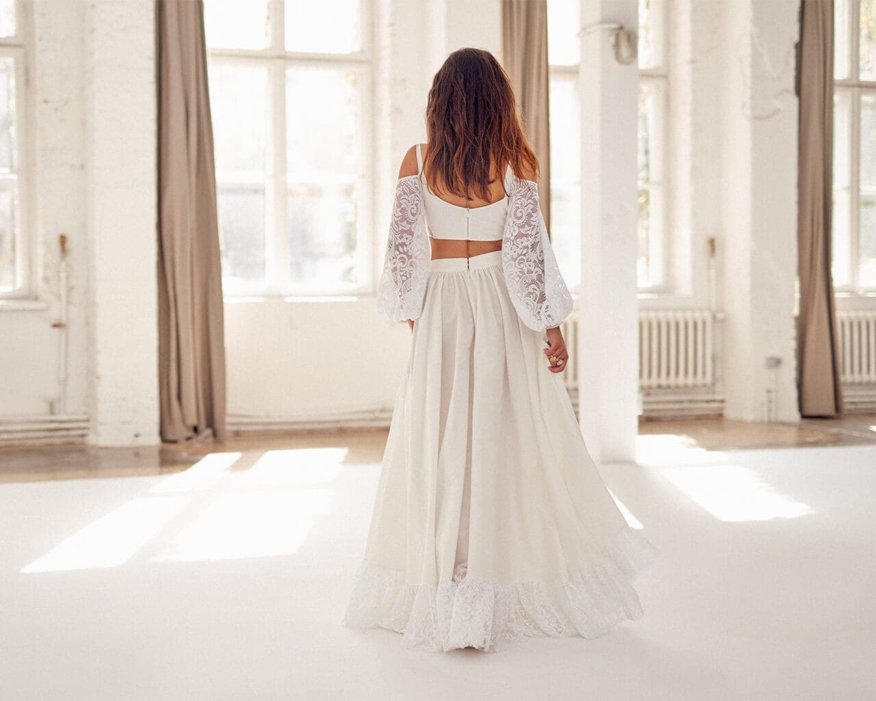 Twoją suknię uszyjemy ze sprawdzonych i przetestowanych przez nas materiałów. W tej sukni dominuje lekka i oddychająca bawełna, jedynie wstawki są z elastycznej koronki. Tkanina ta wprawdzie nie jest tak elastyczna jak nasze koronki i wymaga prasowania, ale jest naturalna i wyjątkowo przyjazna twojej skórze. A jeśli zdecydujesz, by po ślubie przerobić swoją suknię tak, byś mogła ją nosić na co dzień, to z łatwością ją zafarbujesz w profesjonalnej farbiarni.