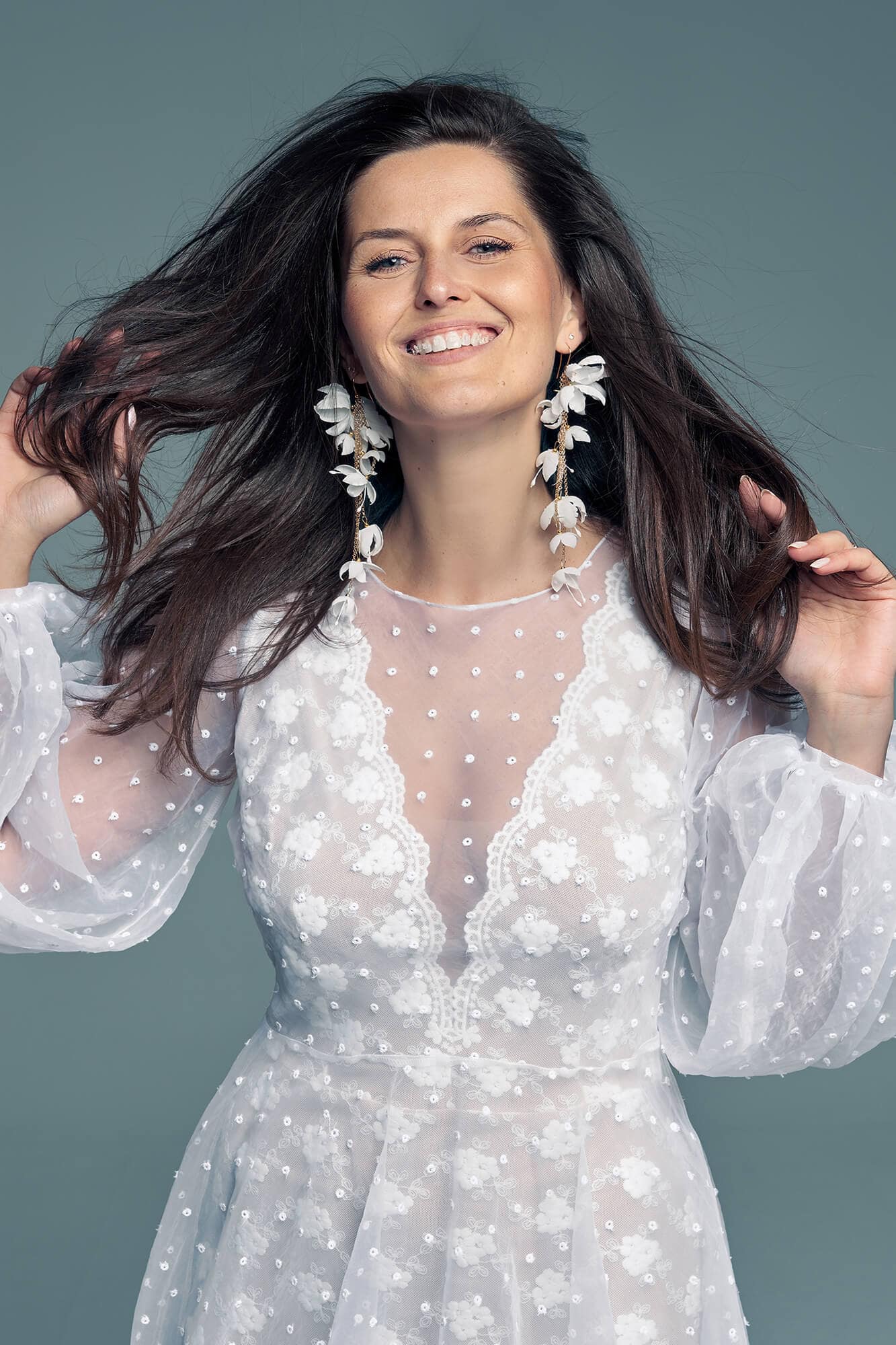 Mimo, że mam do Marty naprawdę spory kawałek drogi to nie żałuję ani chwili z tego dnia. Sam przyjazd i pobyt w Pracowni Marty był świetny – Agata i Marta przyjęły nas jak dobre koleżanki i tak też przebiegał cały proces przymiarek i szycia. Myślałam, że przy tej ilości wzorów i dowolności w projektowaniu sukni (każdy element może być zmieniony) będzie mi ciężko wybrać tę jedyną suknię ale dzięki temu jaką wiedzą i doświadczeniem dysponują dziewczyny wybór był naprawdę przyjemny i szybki 🙂 moja suknia to mix kilku innych sukni. Powstała tak naprawdę nowa sukienka, stworzona tylko dla mnie. Szyta idealnie na miarę. Jestem zachwycona i cieszę się, że zdecydowałam się na szycie u Marty. Suknia jest zjawiskowa, a co najlepsze mogę ją wykorzystać na jakąś inną okazję. Sama Koronka jest miękka, elastyczna. Nie bałam się, że coś się rozerwie, zepsuje. Czułam się w niej jak w drugiej skórze. Nie ograniczała moich ruchów i była po prostu idealna. Naprawdę polecam ❤️|