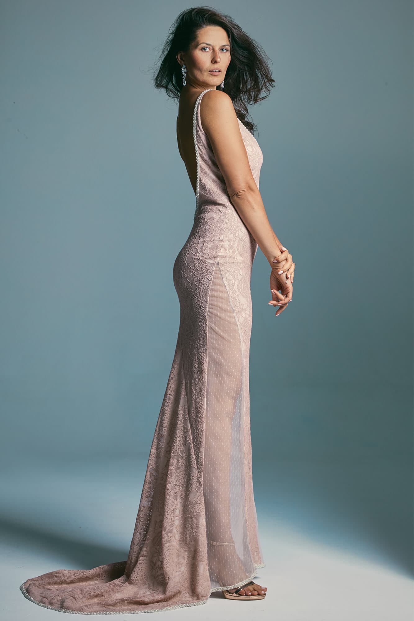 Uszyta ze sprawdzonych i przetestowanych przez nas materiałów. Używane przez nas koronki są mięciutkie, a dzięki swej lekkości cudownie układają się na sylwetce i pięknie wirują w tańcu. Ich elastyczność sprawia, że pracują z Twoim ciałem. Zapewniają komfort rosnącemu ciążowemu brzuszkowi. Praktycznie wszystkie nasze koronki są łatwe do prania w domowej pralce i niegniotące, dzięki czemu swoją suknię spokojnie możesz spakować do walizki i zabrać na romantyczną sesję poślubną.