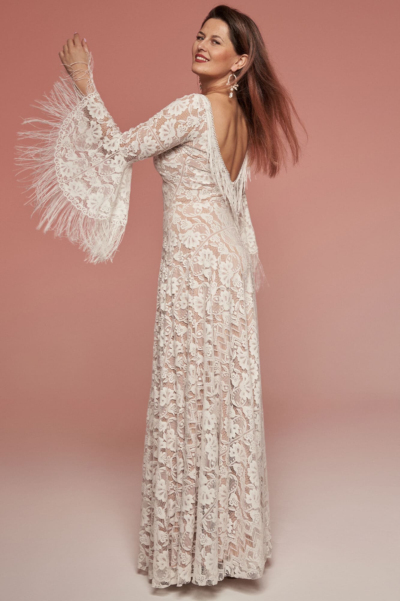 Uszyta ze sprawdzonych i przetestowanych przez nas materiałów. Używane przez nas koronki są mięciutkie, a dzięki swej lekkości cudownie układają się na sylwetce i pięknie wirują w tańcu. Ich elastyczność sprawia, że pracują z Twoim ciałem. Zapewniają komfort rosnącemu ciążowemu brzuszkowi. Praktycznie wszystkie nasze koronki są łatwe do prania w domowej pralce i niegniotące, dzięki czemu swoją suknię spokojnie możesz spakować do walizki i zabrać na romantyczną sesję poślubną.