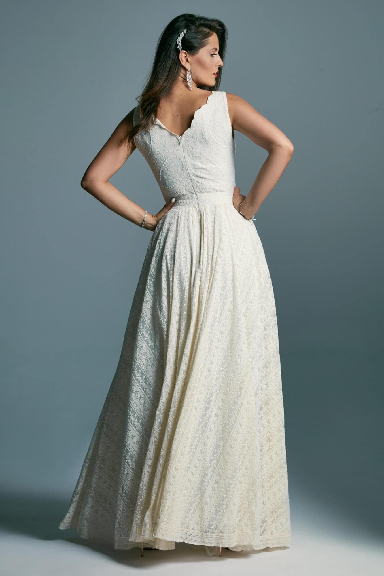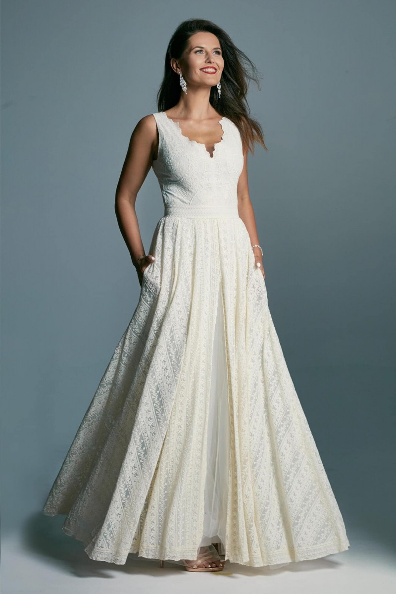 Niebanalne połączenie klasycznej koronki z nowoczesnymi akcentami sprawia, że suknia ta jest idealnym wyborem dla kobiet poszukujących wyjątkowej elegancji. Możliwość modyfikacji po ślubie, dzięki łatwości zafarbowania koronek na dowolny kolor, oraz skrócenie długości, sprawiają, że ta suknia może towarzyszyć Ci również w innych wyjątkowych momentach życia.
