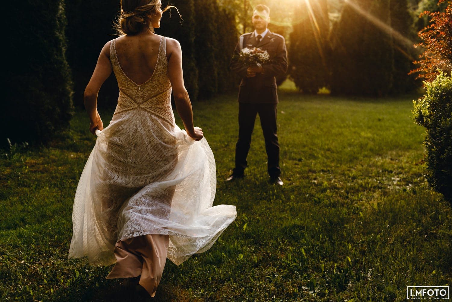 Ekskluzywna Suknia Ślubna – Bogactwo Koronek i Złotych Akcentów