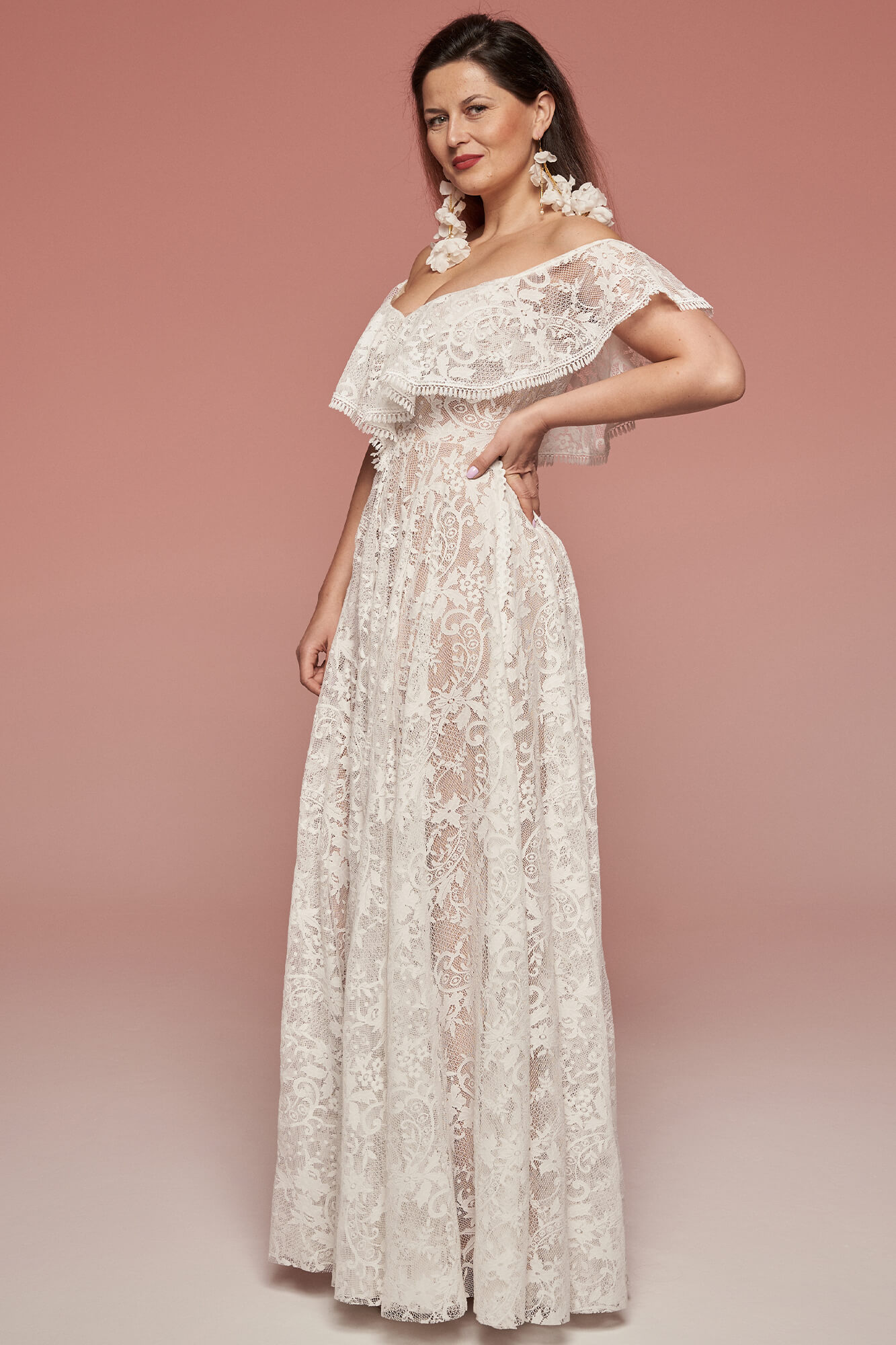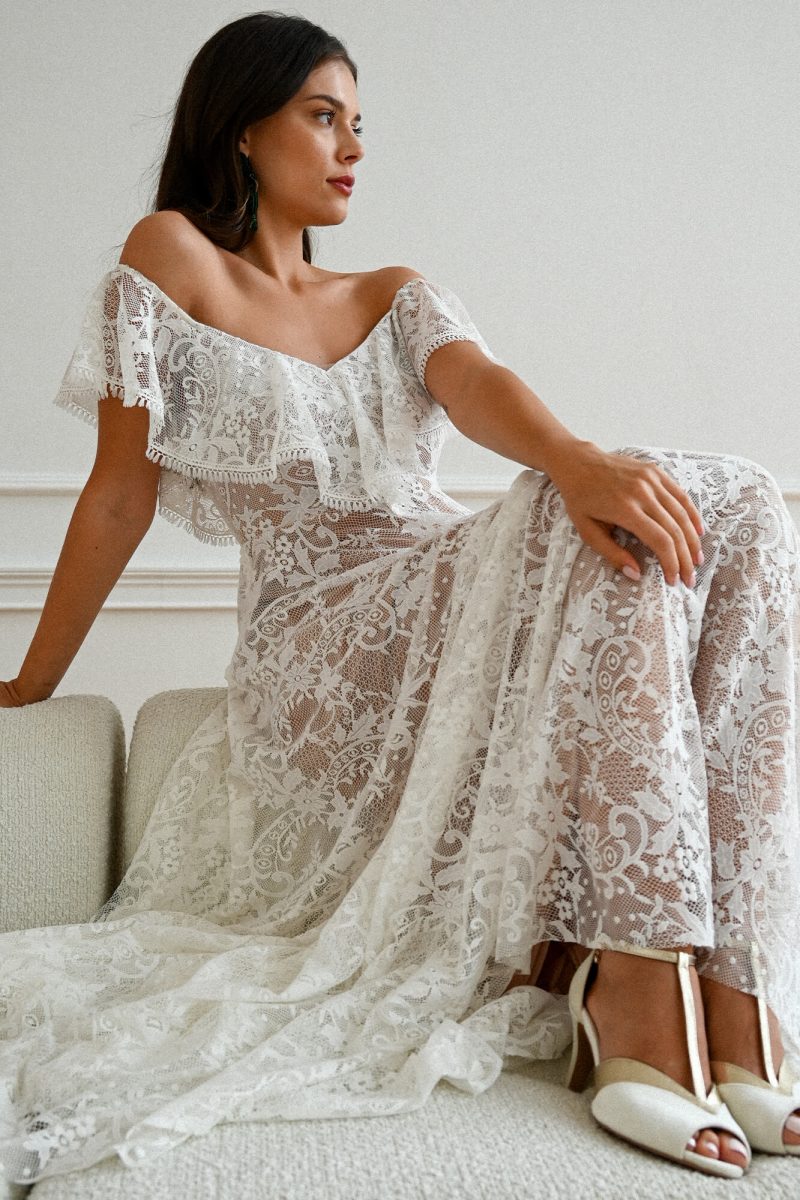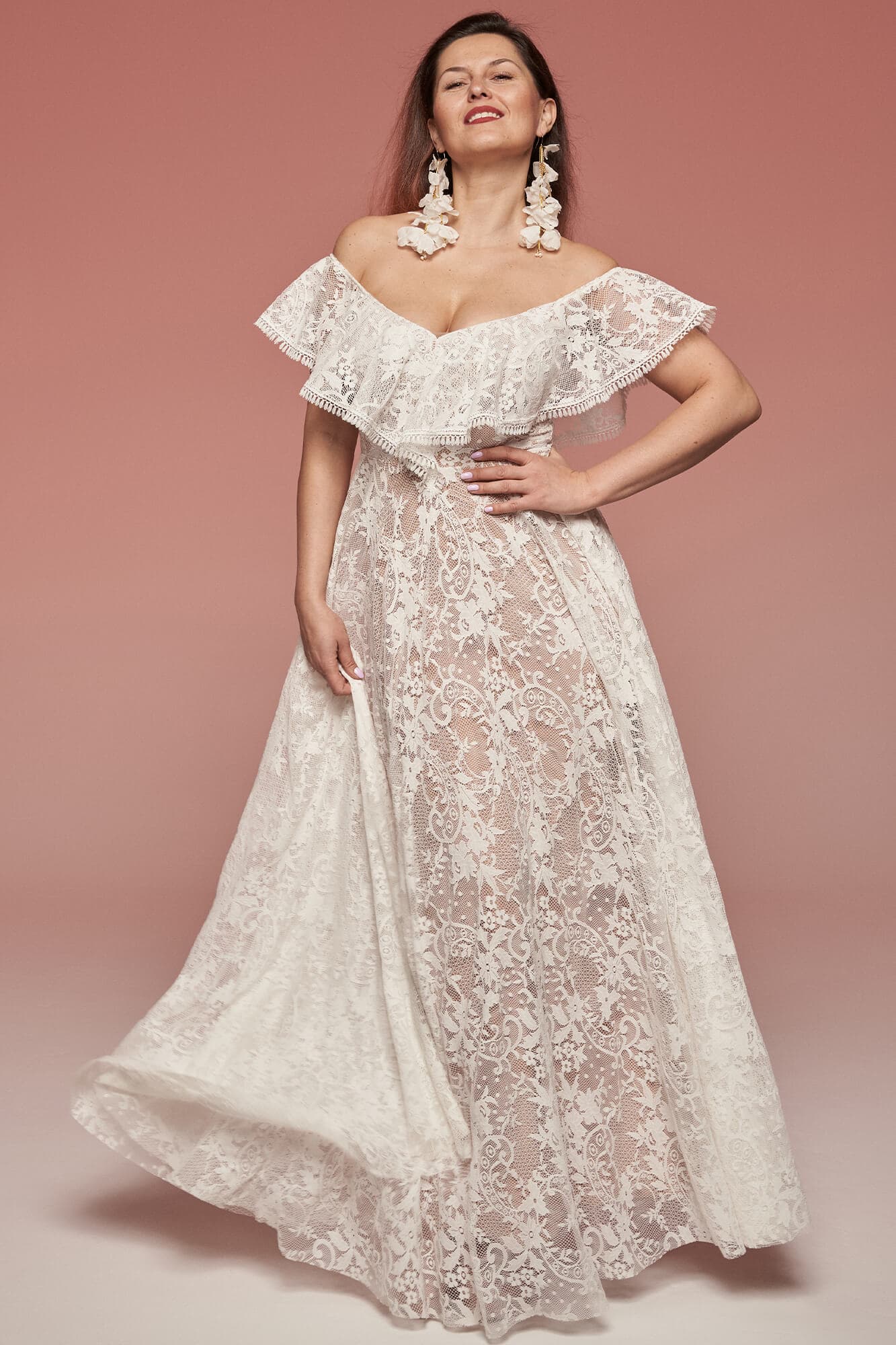 Uszyta ze sprawdzonych i przetestowanych przez nas materiałów. Używane przez nas koronki są mięciutkie, a dzięki swej lekkości cudownie układają się na sylwetce i pięknie wirują w tańcu. Ich elastyczność sprawia, że pracują z Twoim ciałem. Zapewniają komfort rosnącemu ciążowemu brzuszkowi. Praktycznie wszystkie nasze koronki są łatwe do prania w domowej pralce i niegniotące, dzięki czemu swoją suknię spokojnie możesz spakować do walizki i zabrać na romantyczną sesję poślubną.