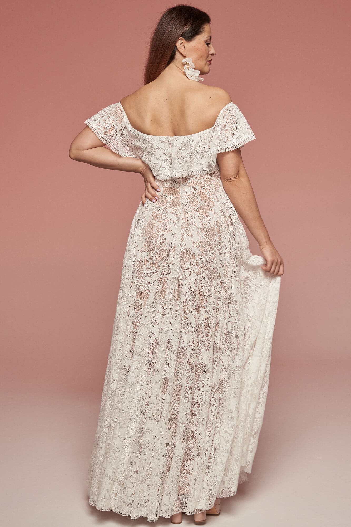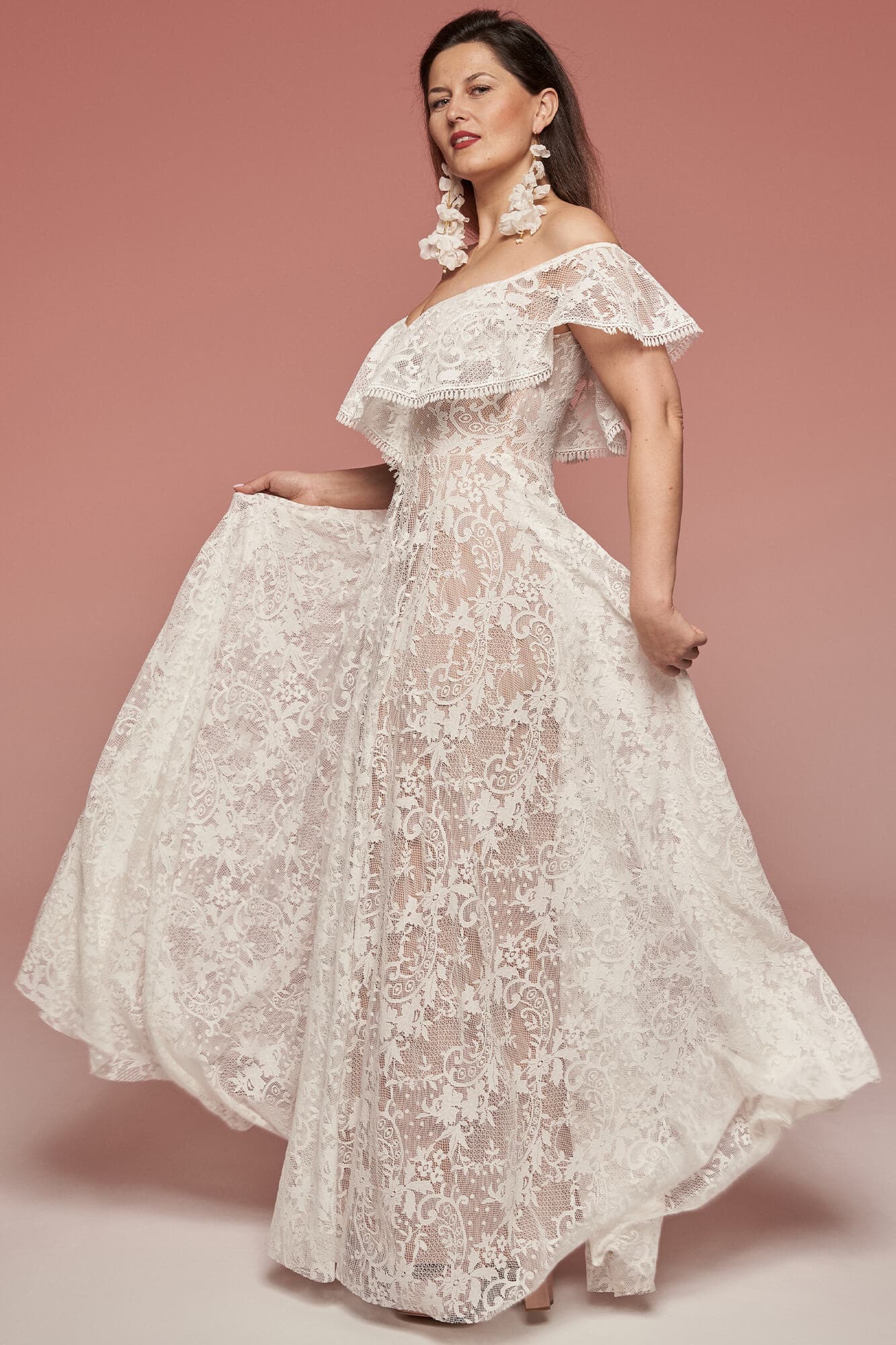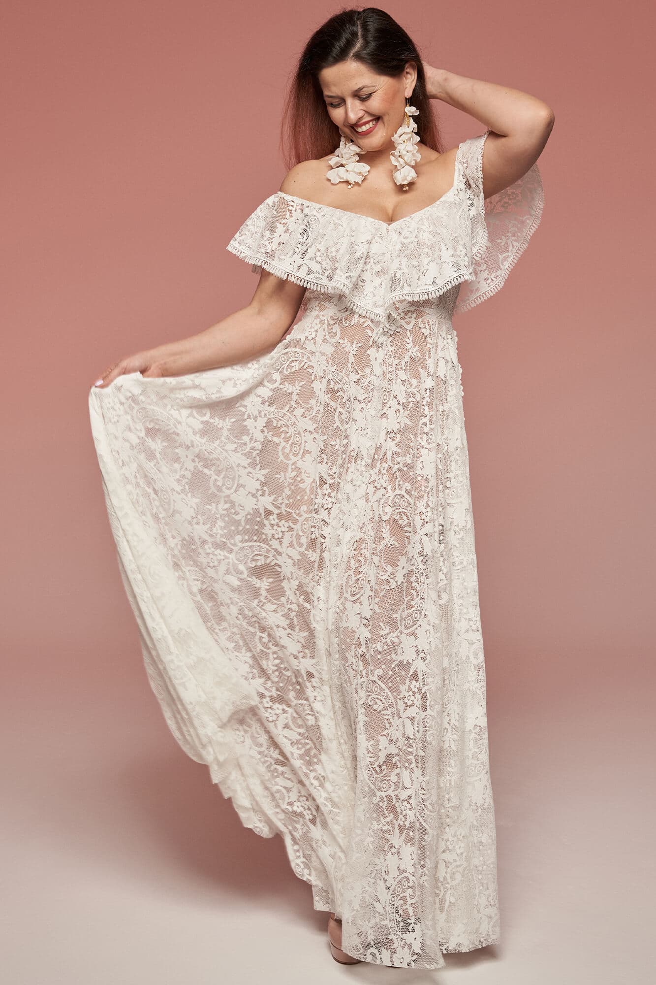 Uszyta ze sprawdzonych i przetestowanych przez nas materiałów. Używane przez nas koronki są mięciutkie, a dzięki swej lekkości cudownie układają się na sylwetce i pięknie wirują w tańcu. Ich elastyczność sprawia, że pracują z Twoim ciałem. Zapewniają komfort rosnącemu ciążowemu brzuszkowi. Praktycznie wszystkie nasze koronki są łatwe do prania w domowej pralce i niegniotące, dzięki czemu swoją suknię spokojnie możesz spakować do walizki i zabrać na romantyczną sesję poślubną.